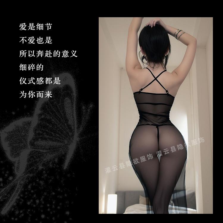 Compre Lingerie Sexy, Uniforme Puro Desejo, Saia Sexy de Malha Transparente, Saia Longa Estilo Abstinência, Seios Pequenos Parecem Maiores, Vestido Longo com Suspensório no atacado no Joom.pro