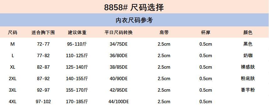 M(34/75DE), L(36/80DE), XL(38/85DE), 2XL(40/90DE), 3XL(42/95DE), 4XL(44/100DE)