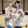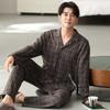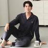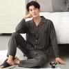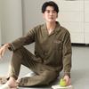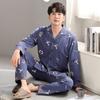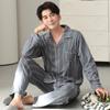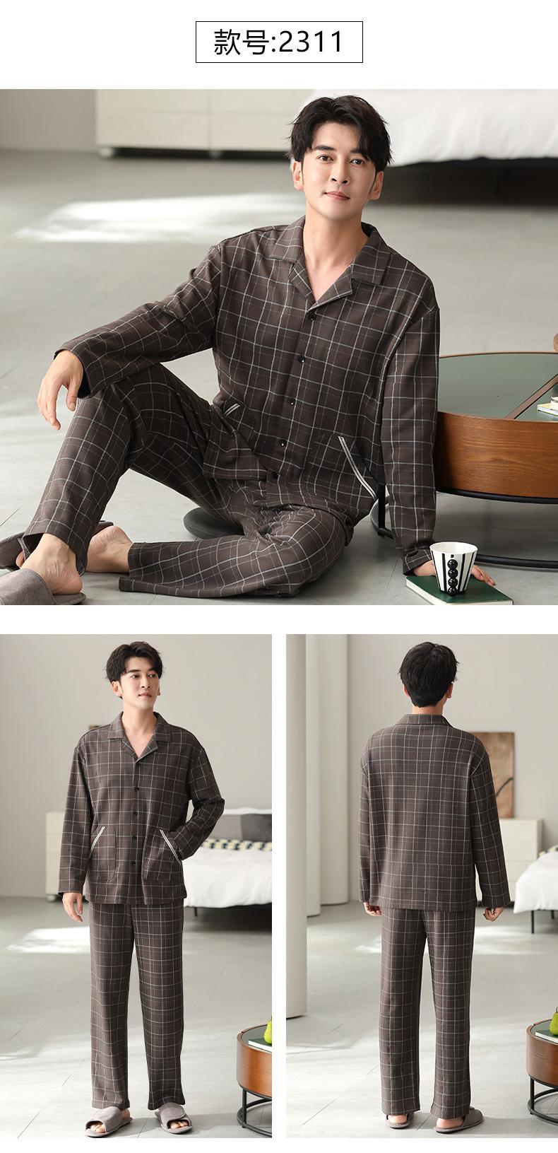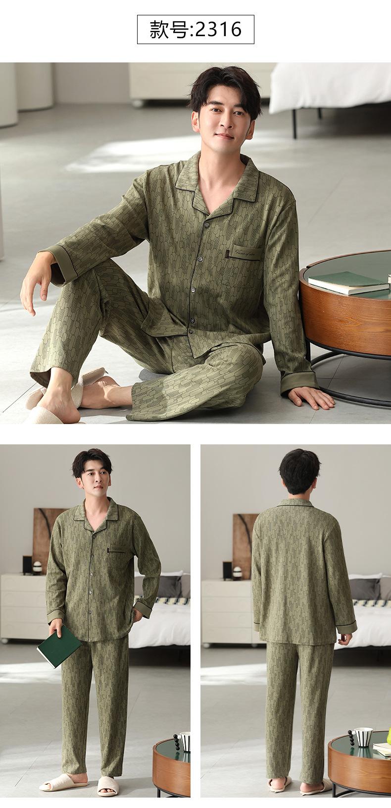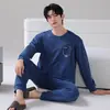 Pijama Masculina Primavera e Outono Algodão Puro Manga Longa 2025 Novo Estilo Pai Tamanho Plus Conjunto Roupa de Casa Masculina