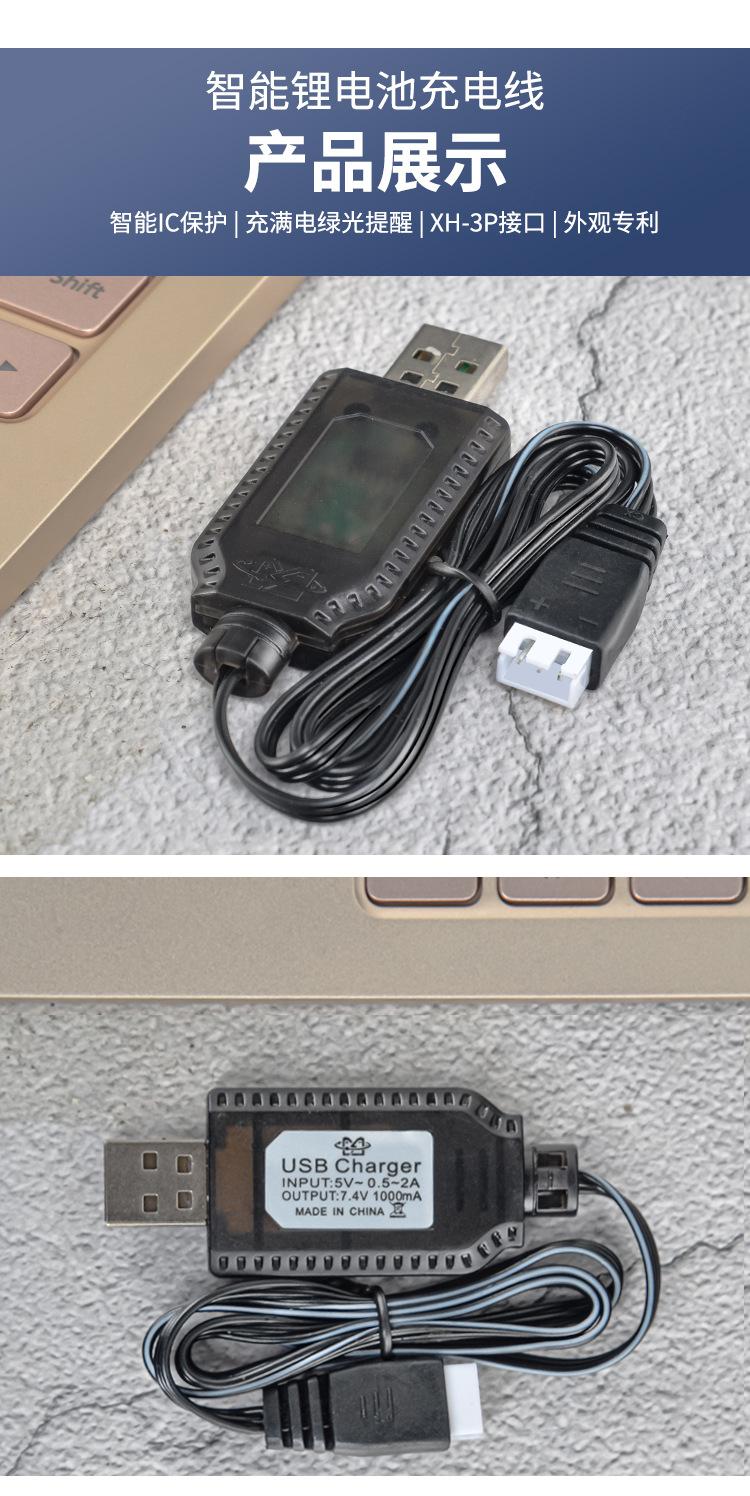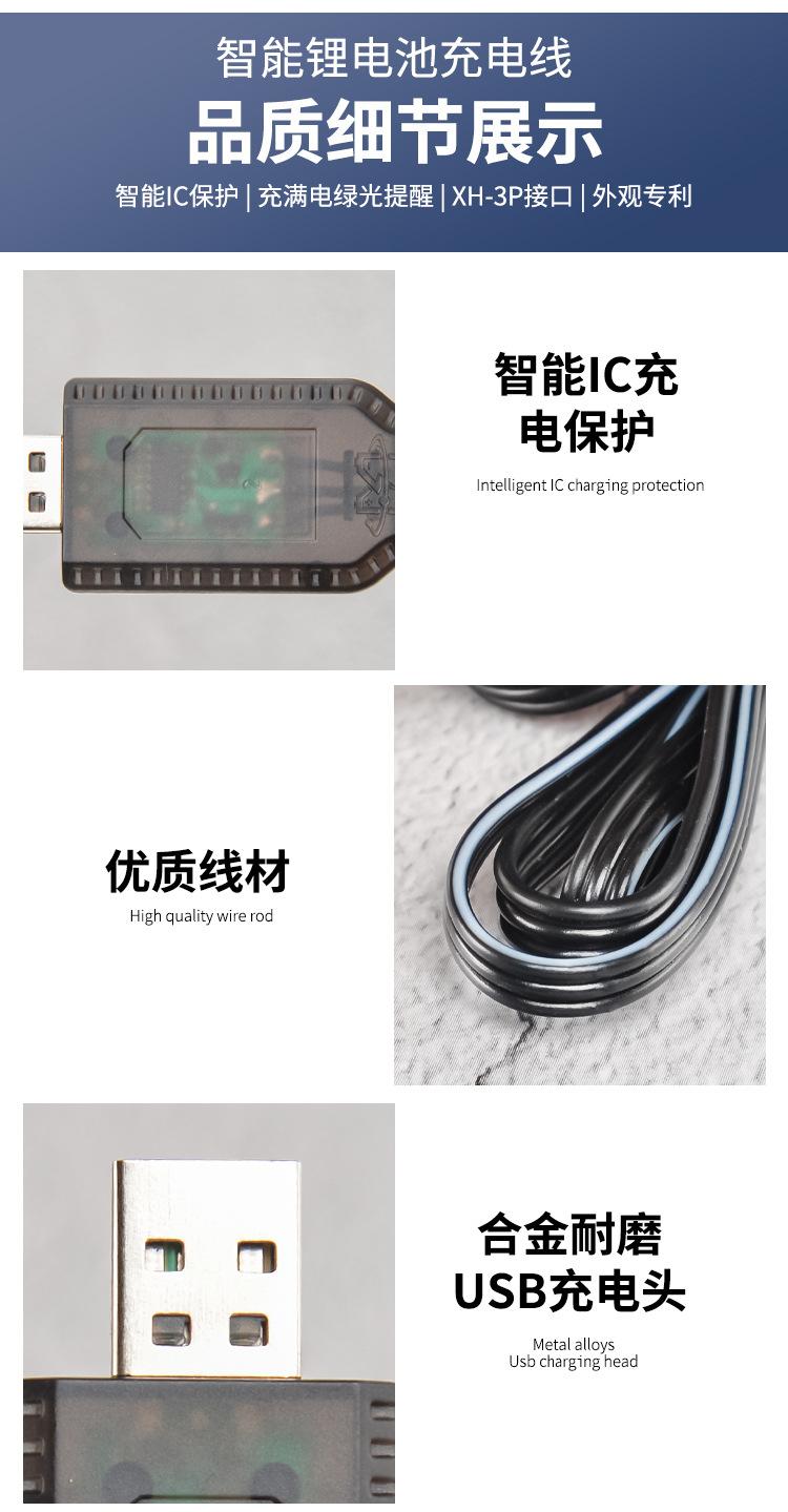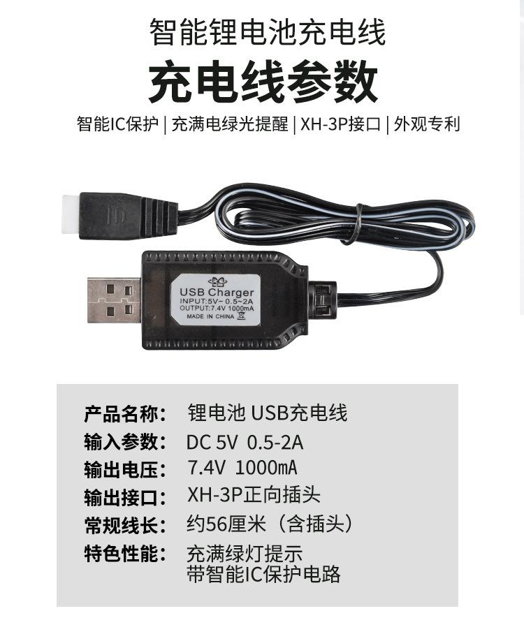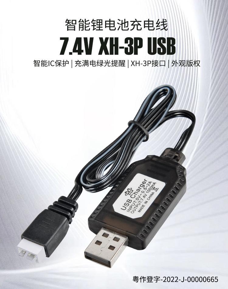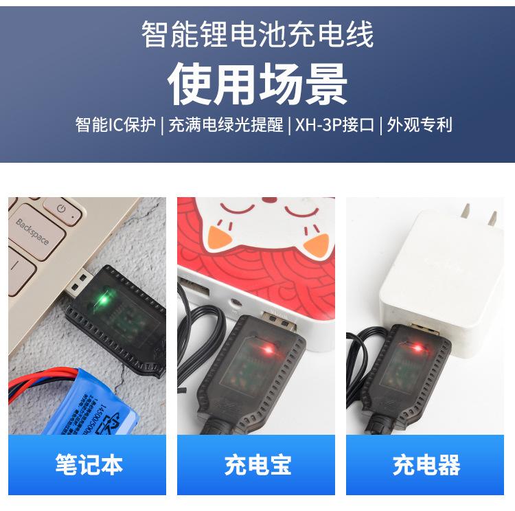Carregador de Bateria de Lítio 7.4V Xh-3P Cabo de Carregamento com Proteção Acessórios para Aeronaves de Brinquedo Cabo de Dados USB