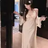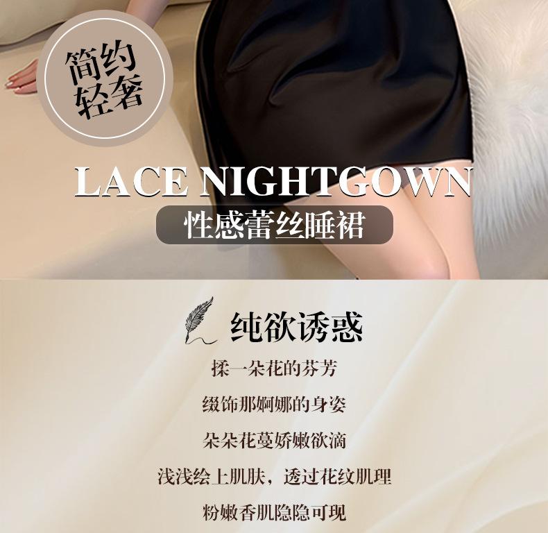 Pijama Sexy Francesa Feminina Verão Camisola de Renda Cetim Puro Desejo Vestido Longo com Bojos Camisola Roupa de Casa Feminina