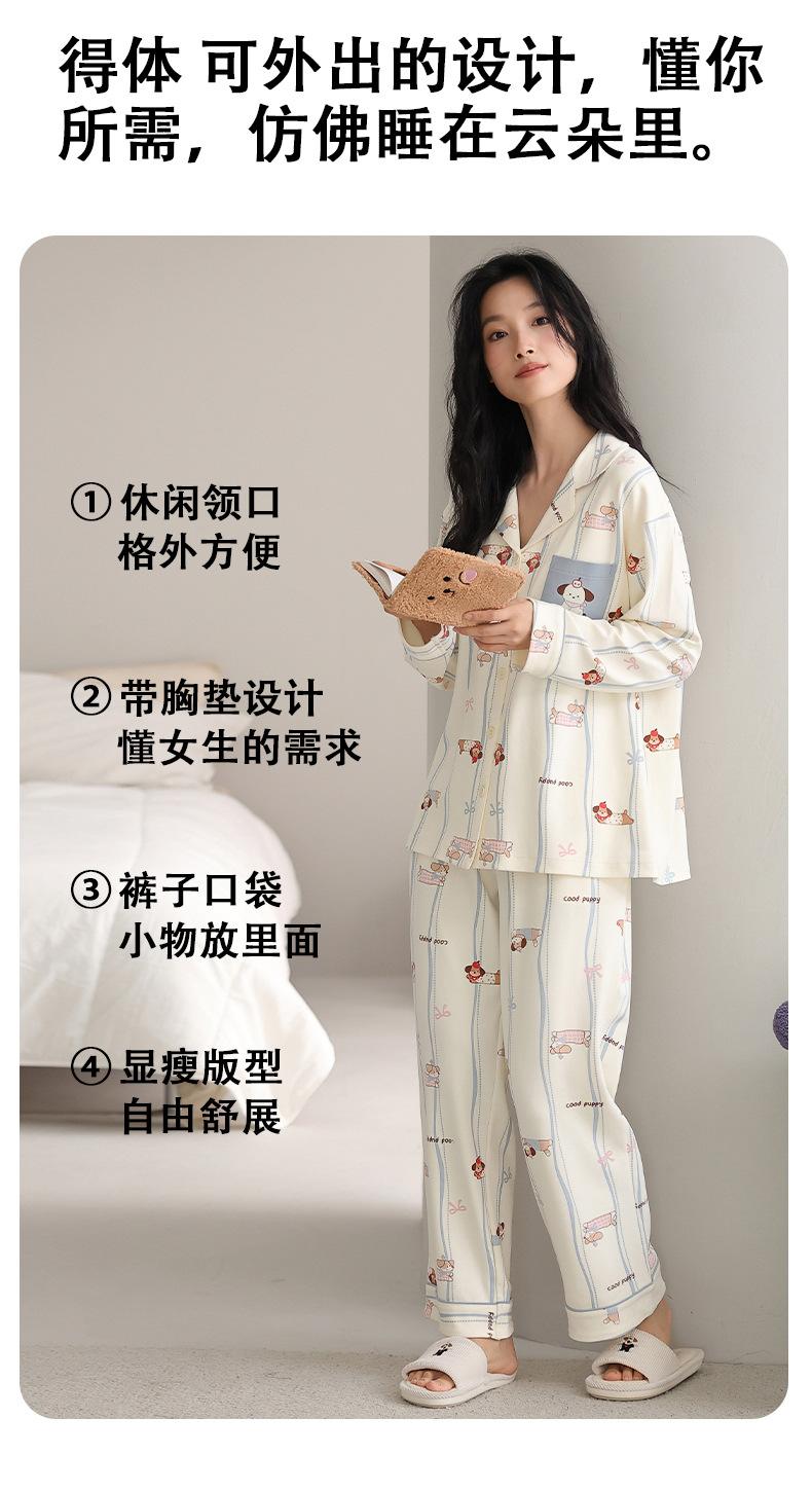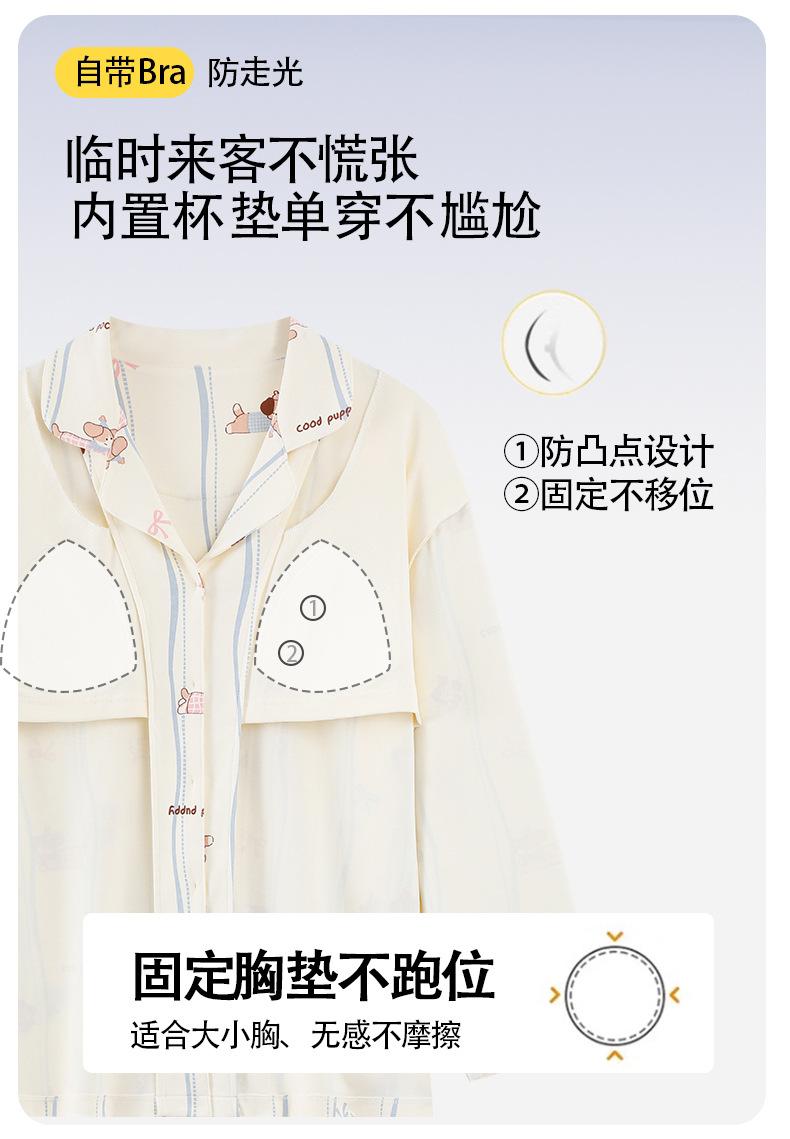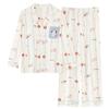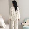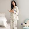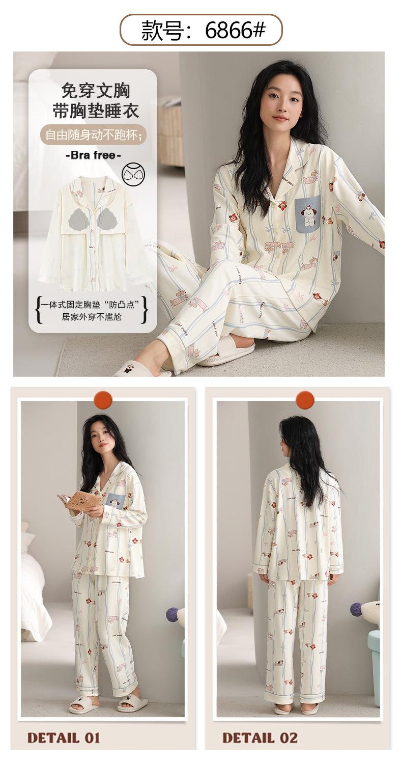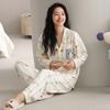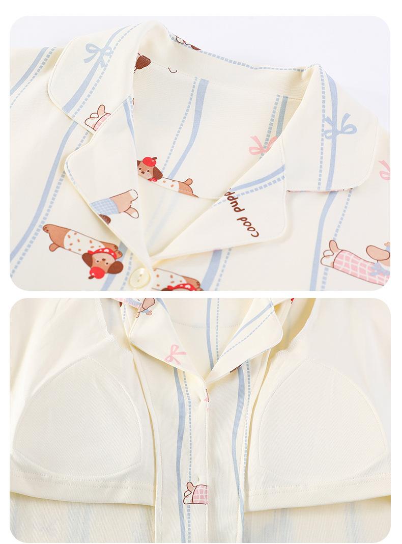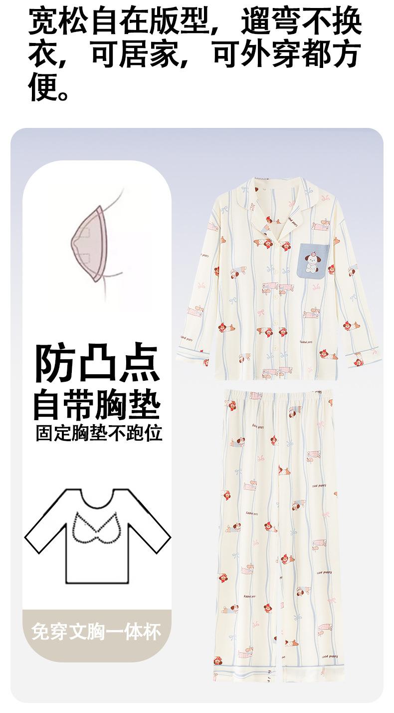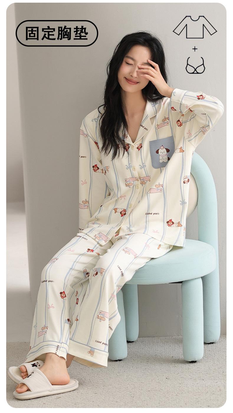 Pijama Feminino Manga Longa Calça Longa Outono com Bojo Gola Dobrável Cardigã Não Precisa Usar Sutiã Doce Listrado Desenho Animado Roupa de Dormir