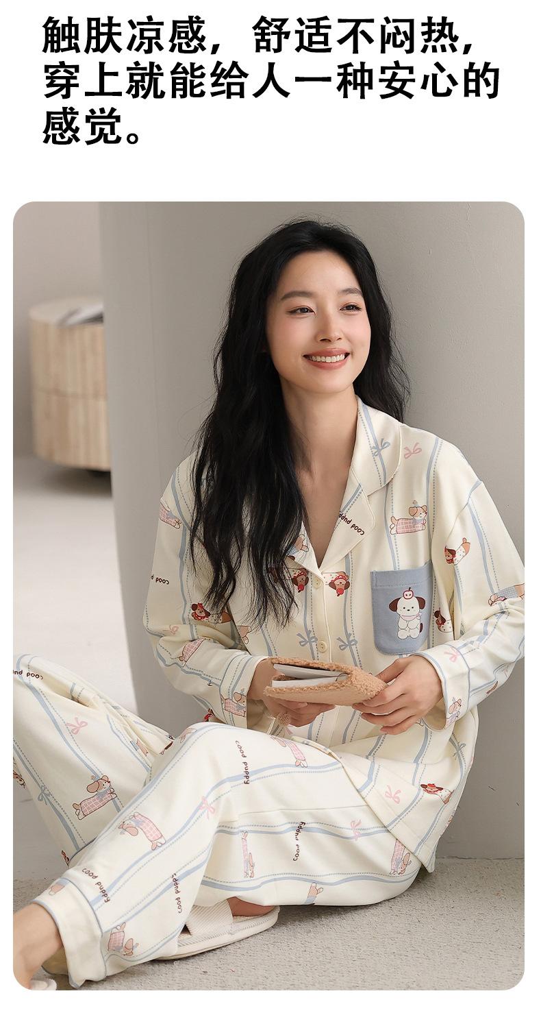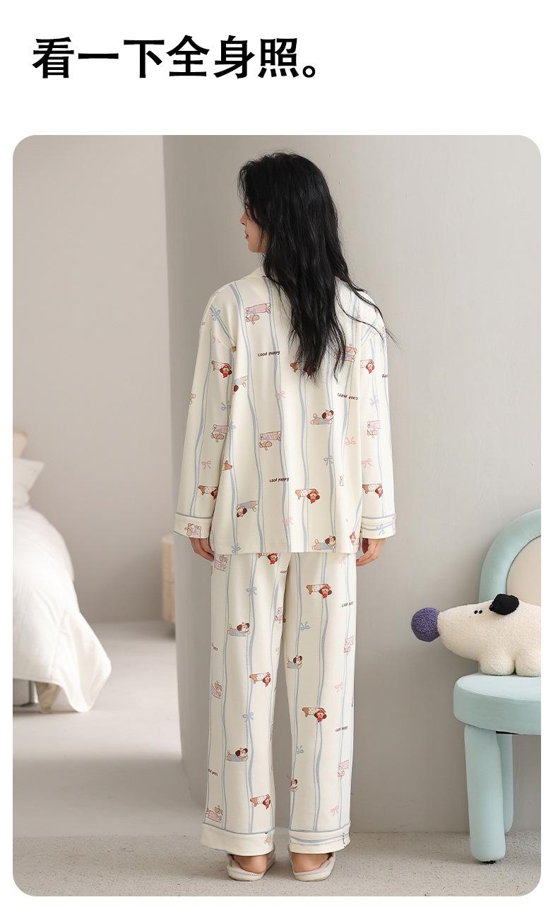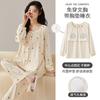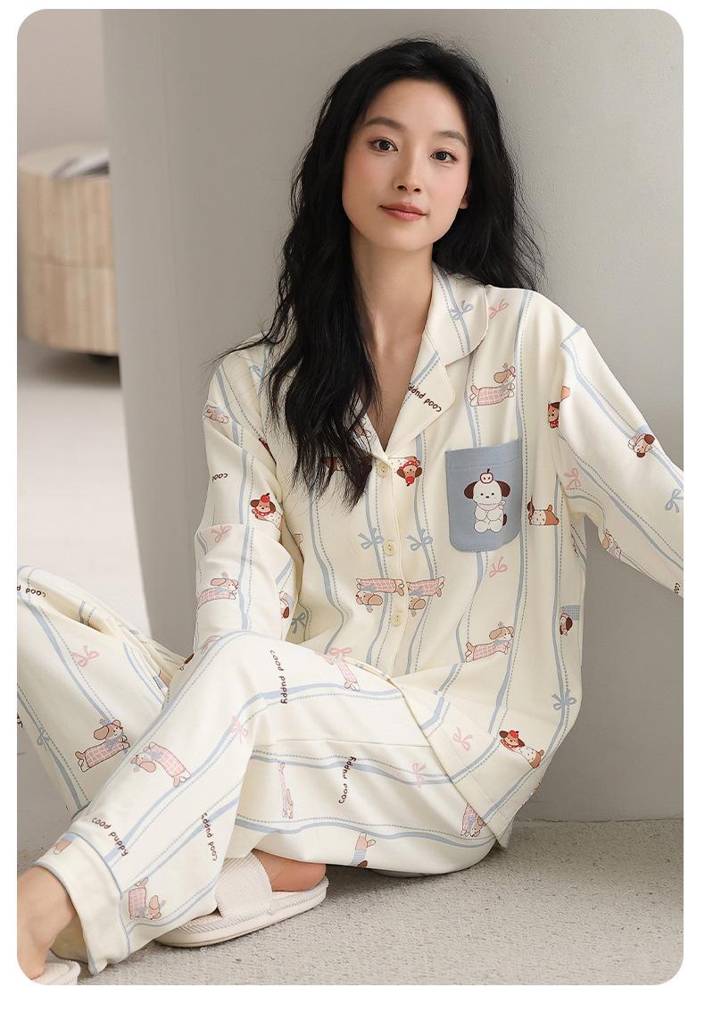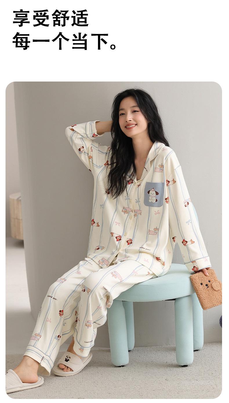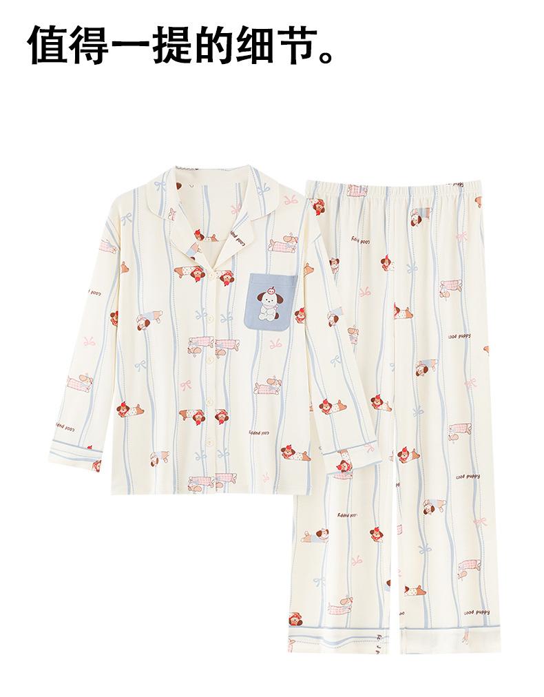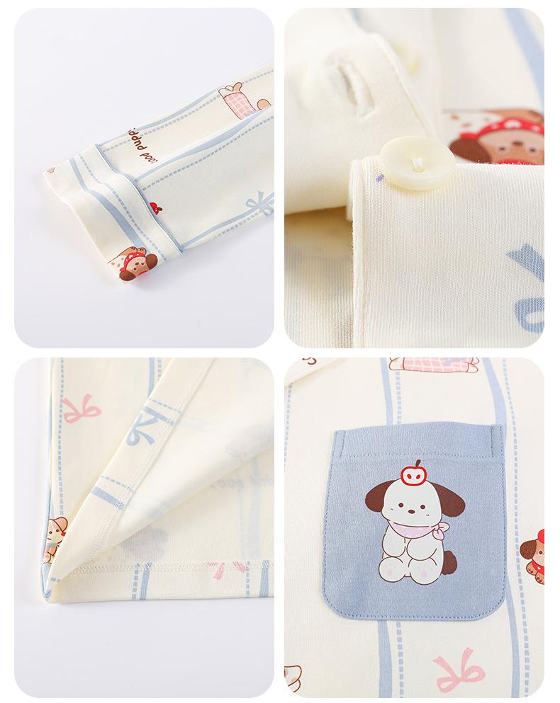 Pijama Feminino Manga Longa Calça Longa Outono com Bojo Gola Dobrável Cardigã Não Precisa Usar Sutiã Doce Listrado Desenho Animado Roupa de Dormir