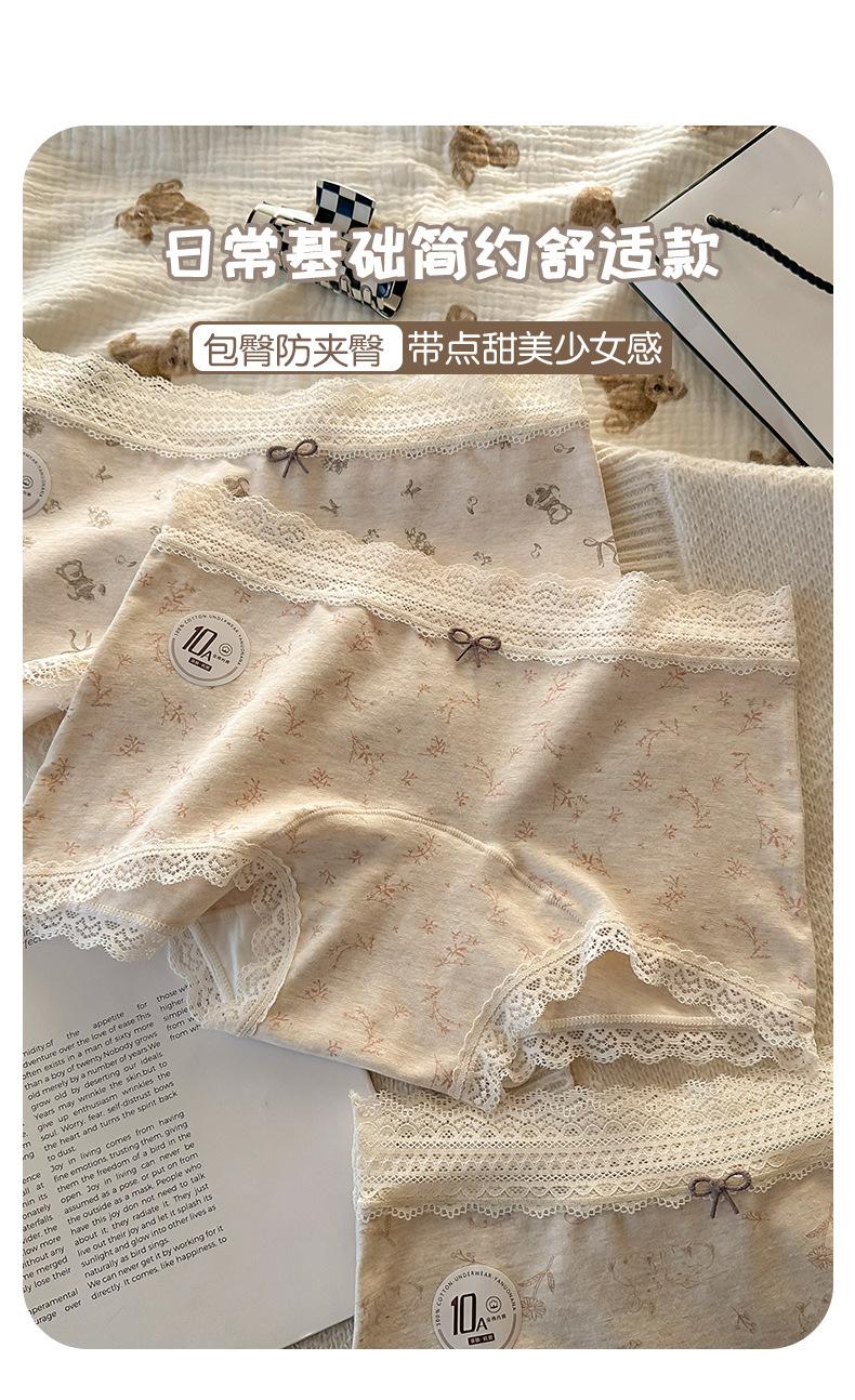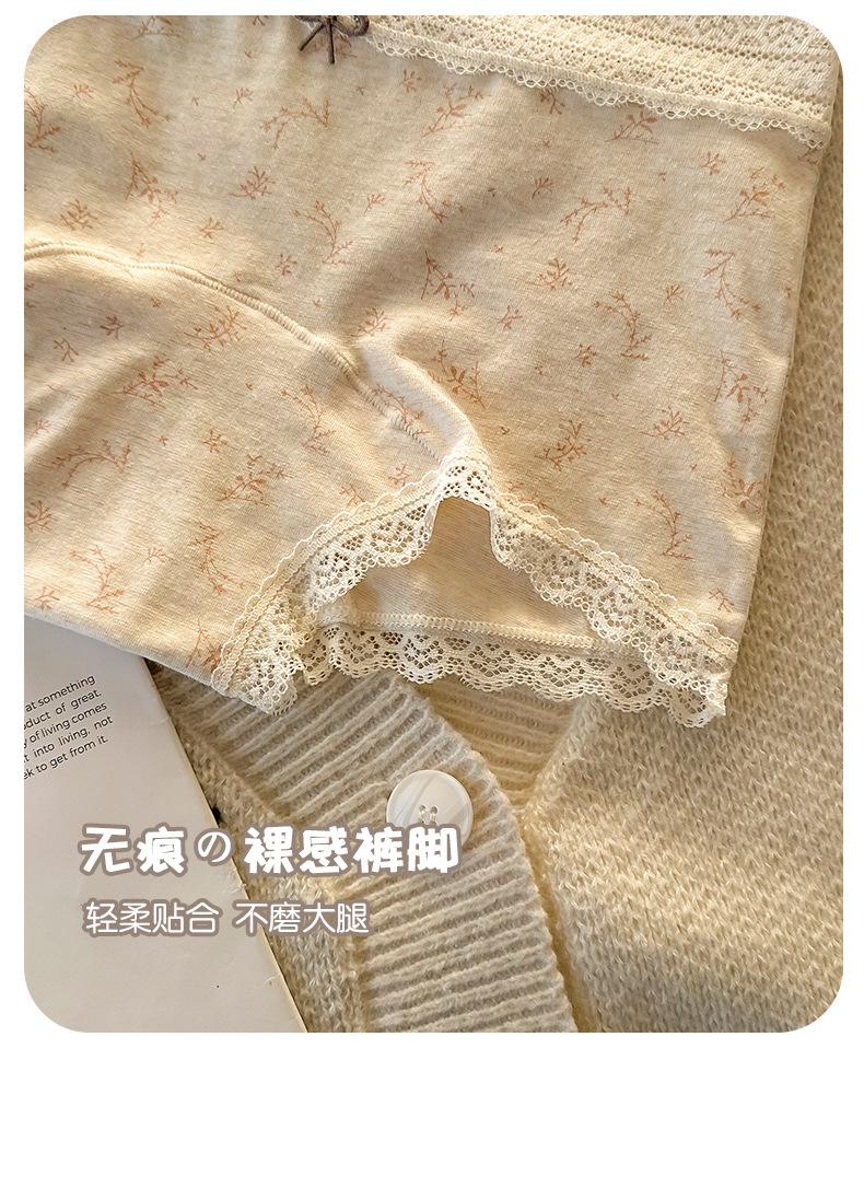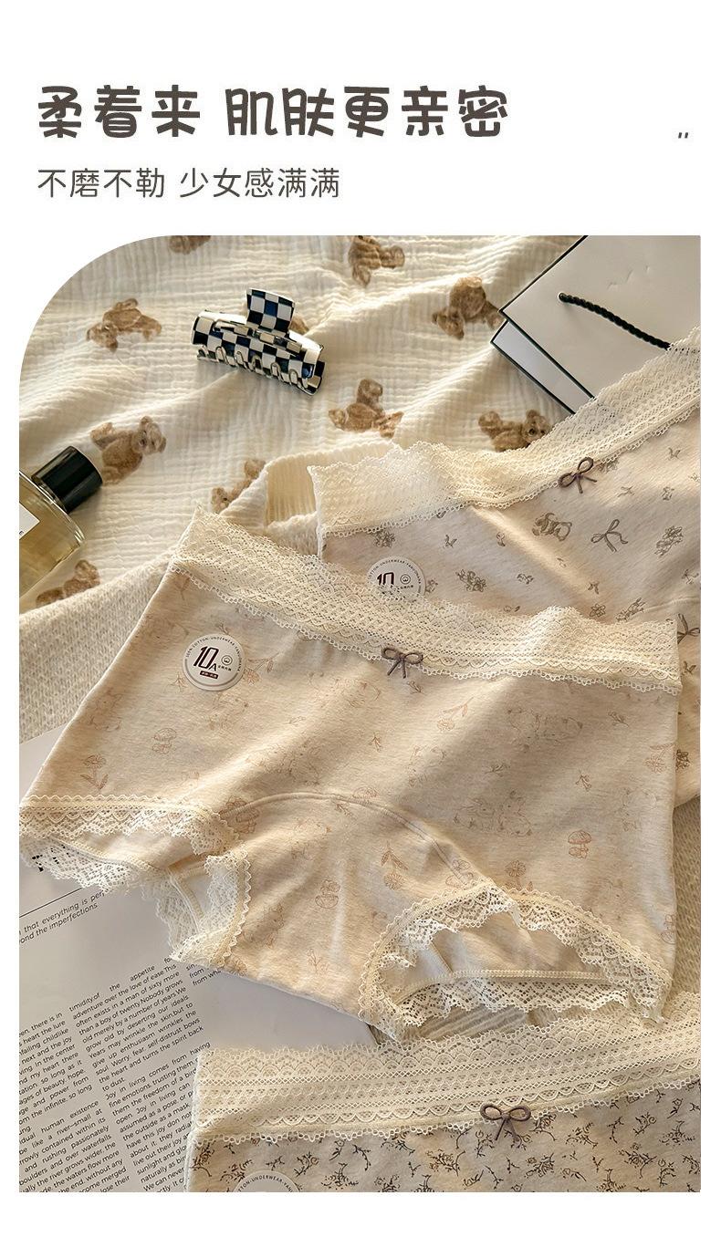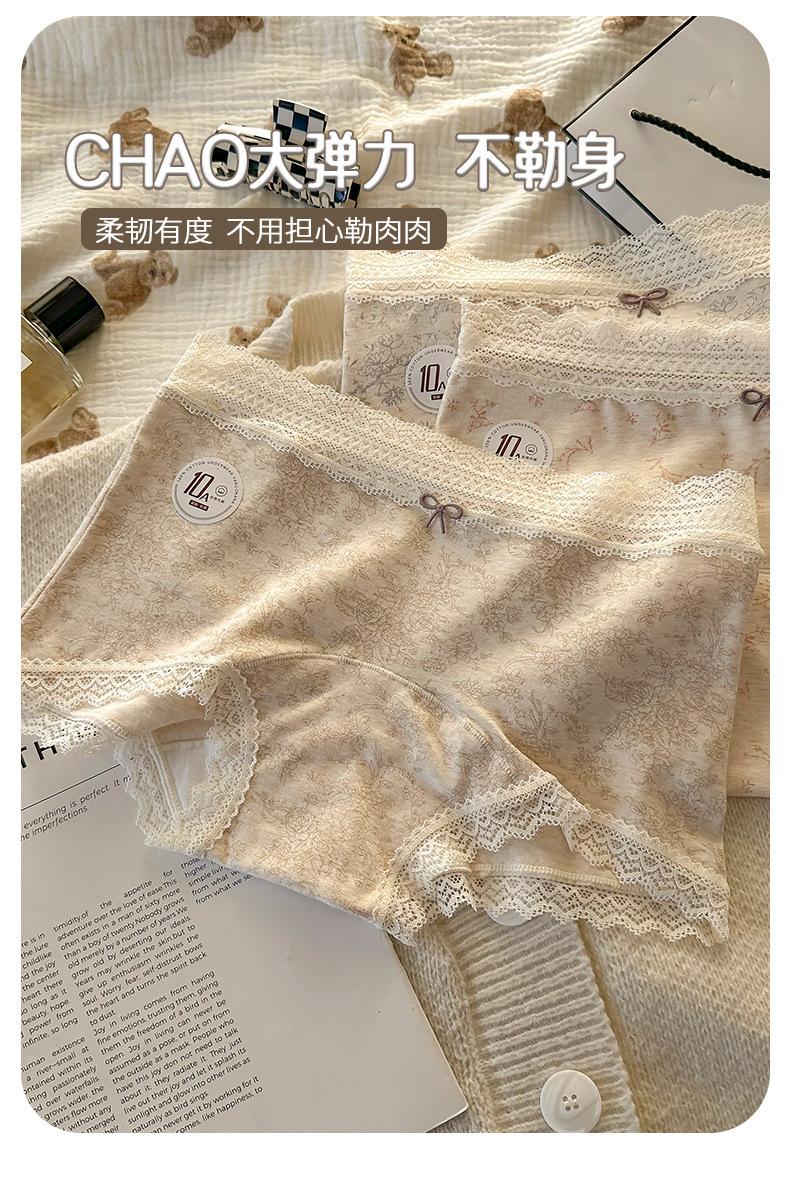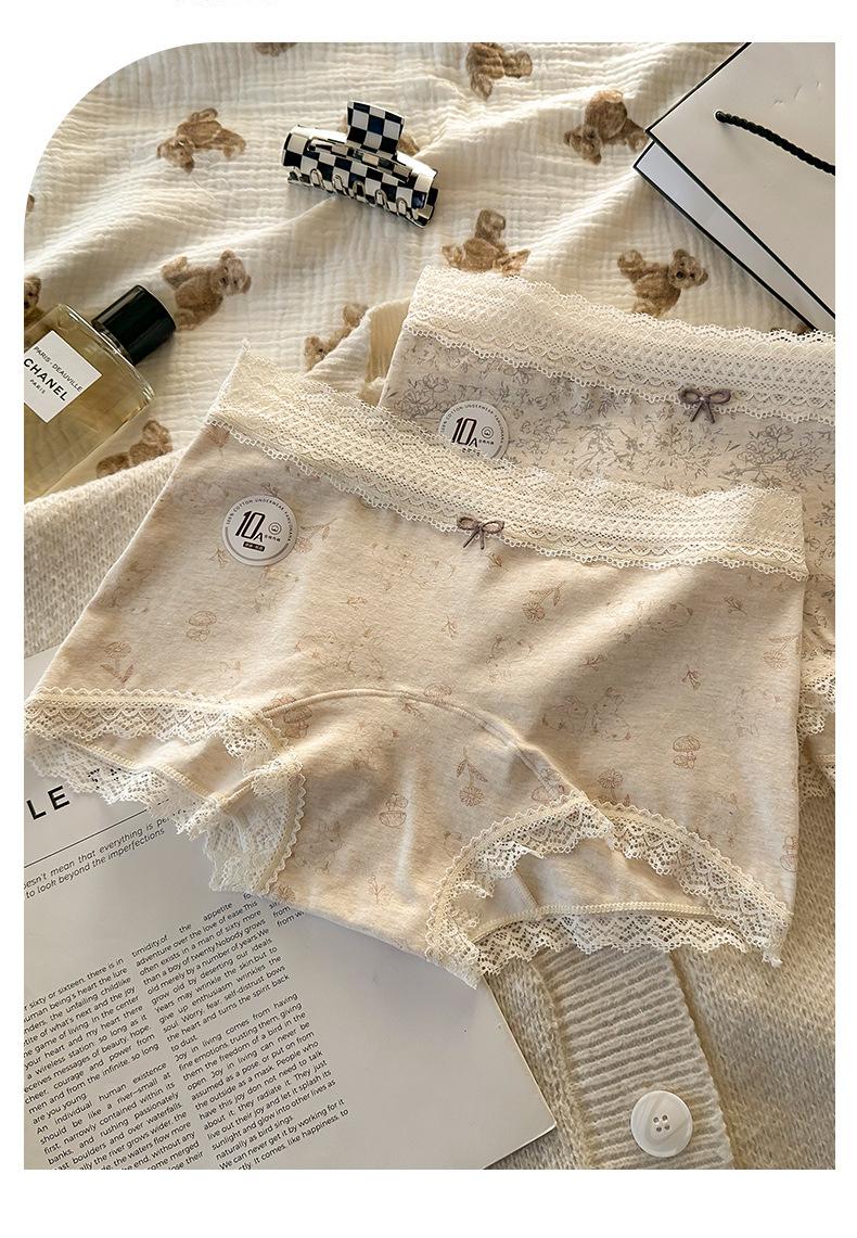 Algodão Cor Natural Algodão Puro Calcinhas Femininas Acabamento em Renda Calcinhas Cavas Retas Que Cobrem o Quadril Doce Pequeno Floral Crotch Estendido e Alargado