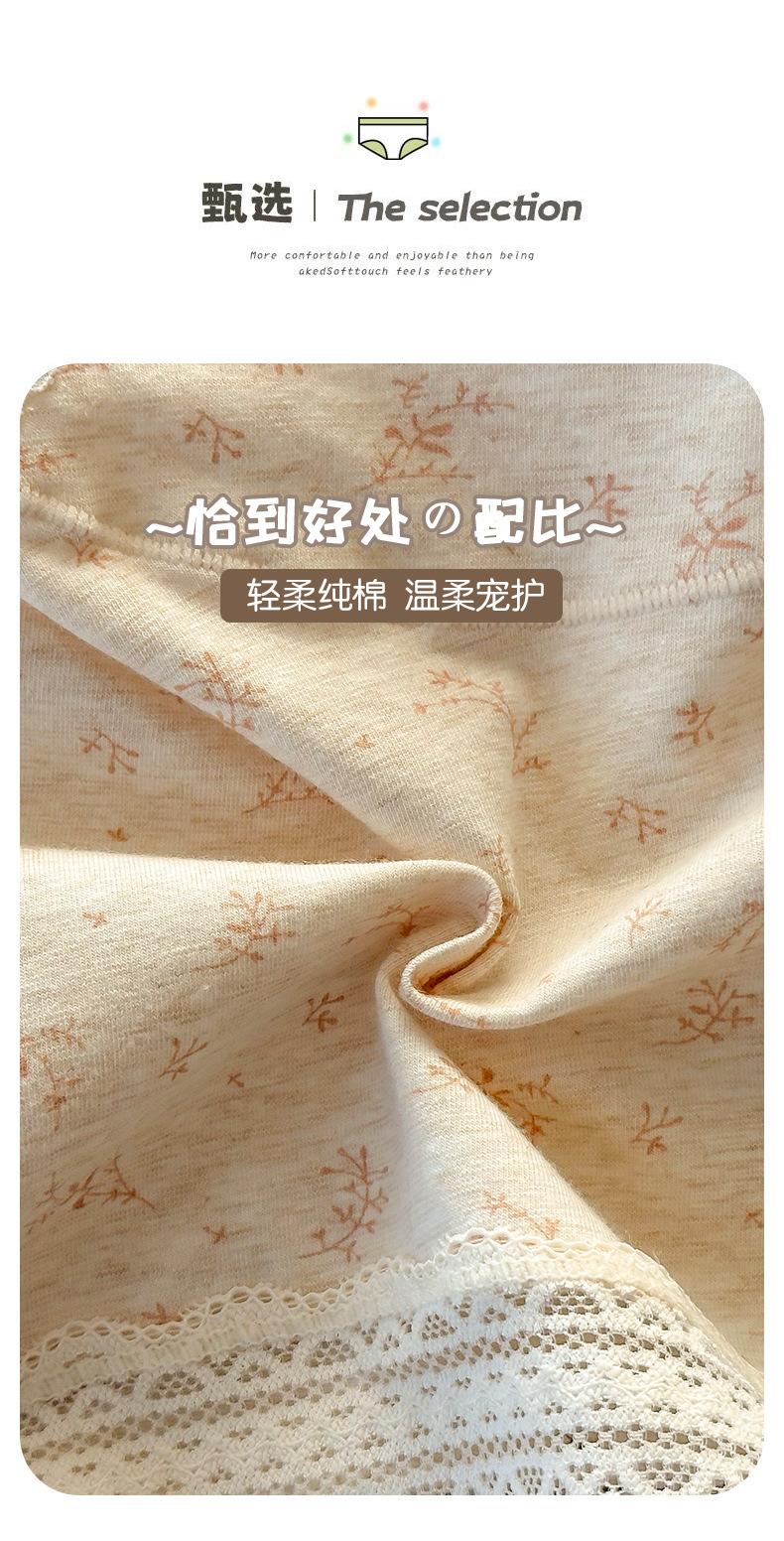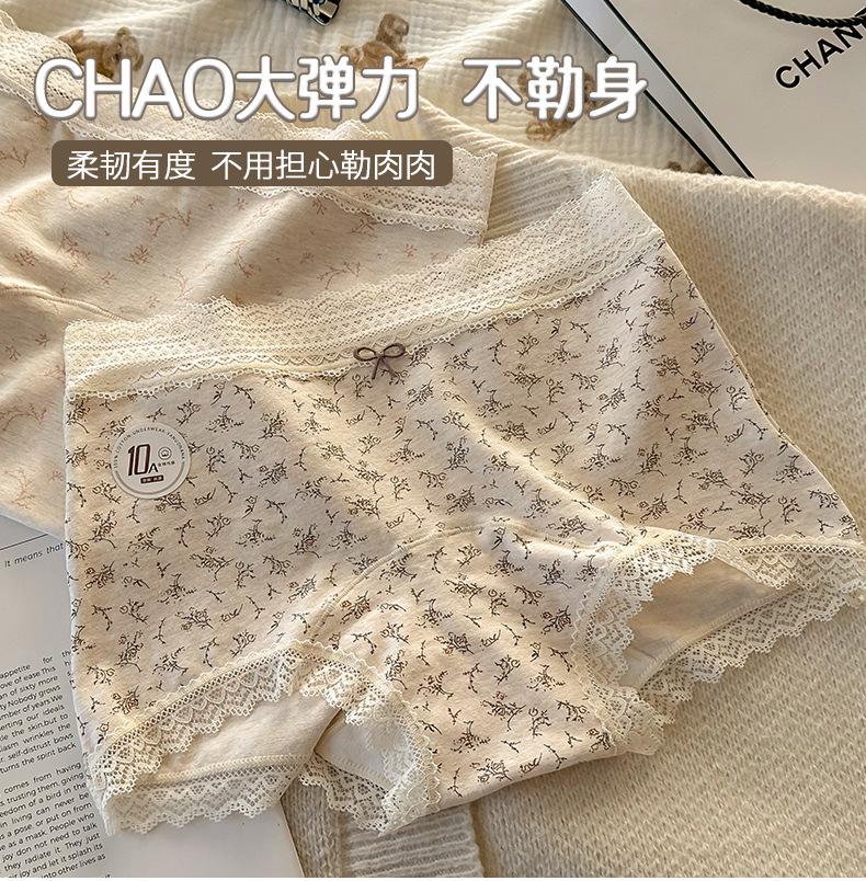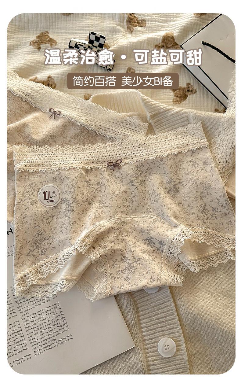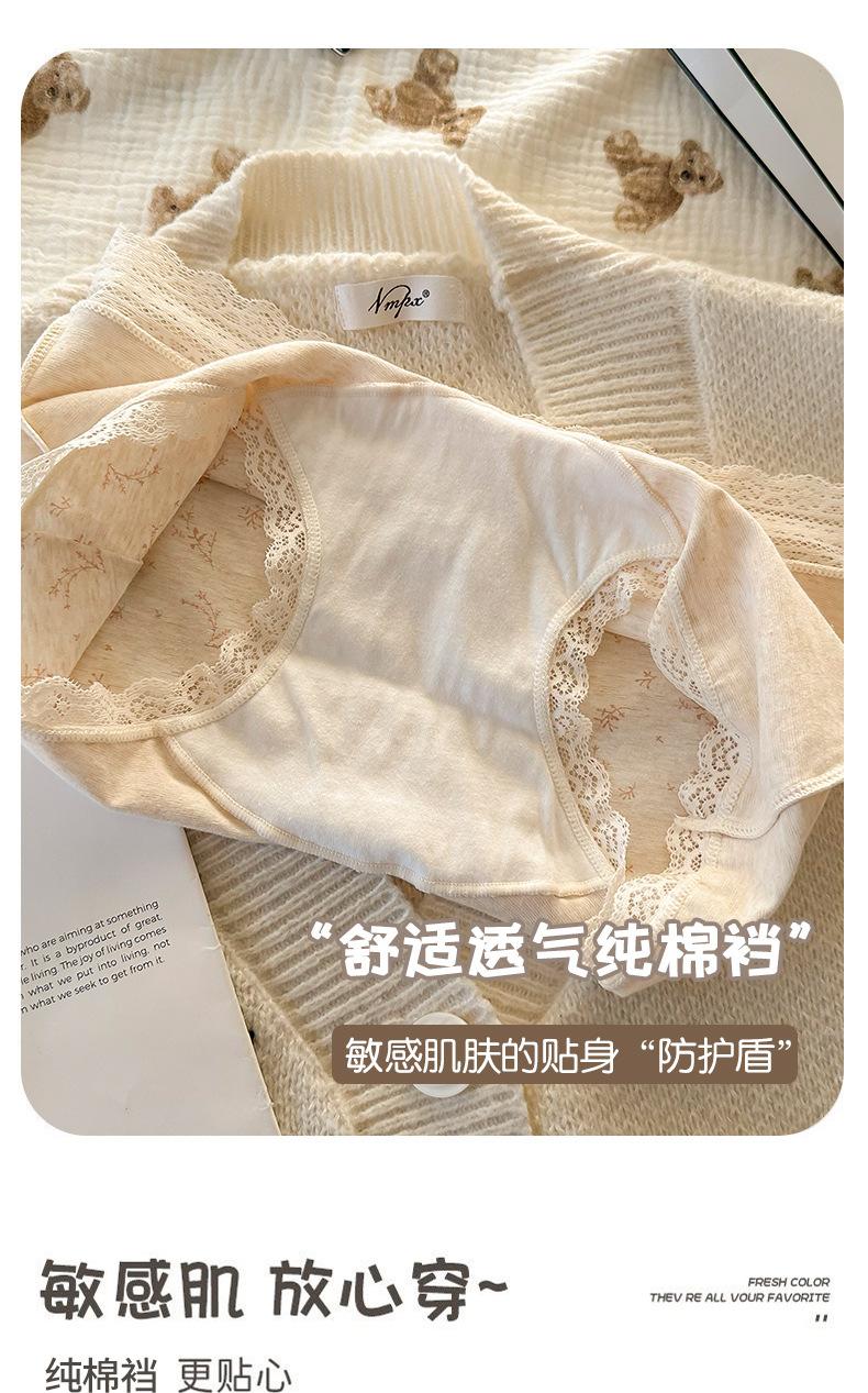 Algodão Cor Natural Algodão Puro Calcinhas Femininas Acabamento em Renda Calcinhas Cavas Retas Que Cobrem o Quadril Doce Pequeno Floral Crotch Estendido e Alargado
