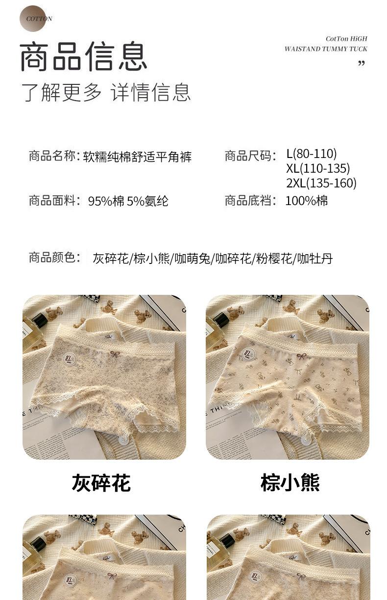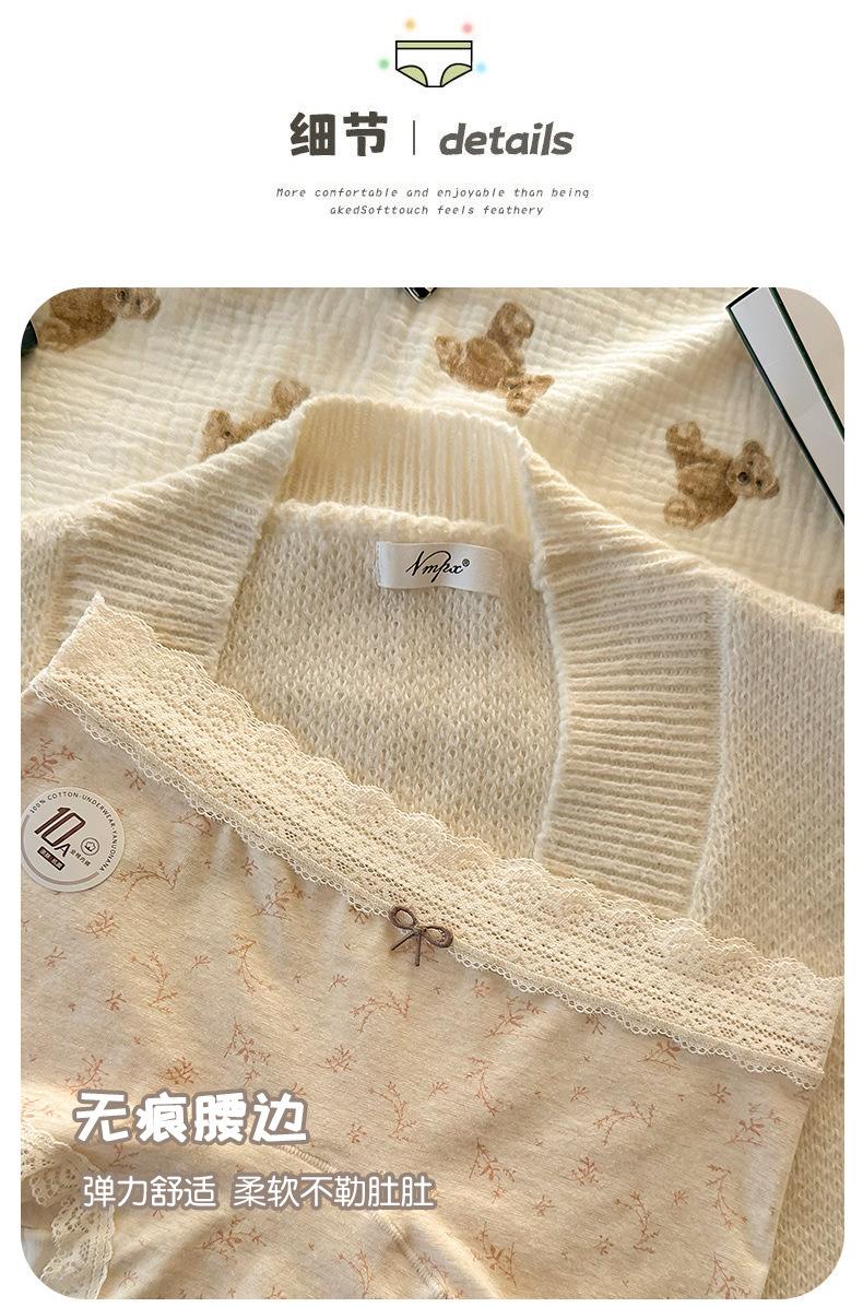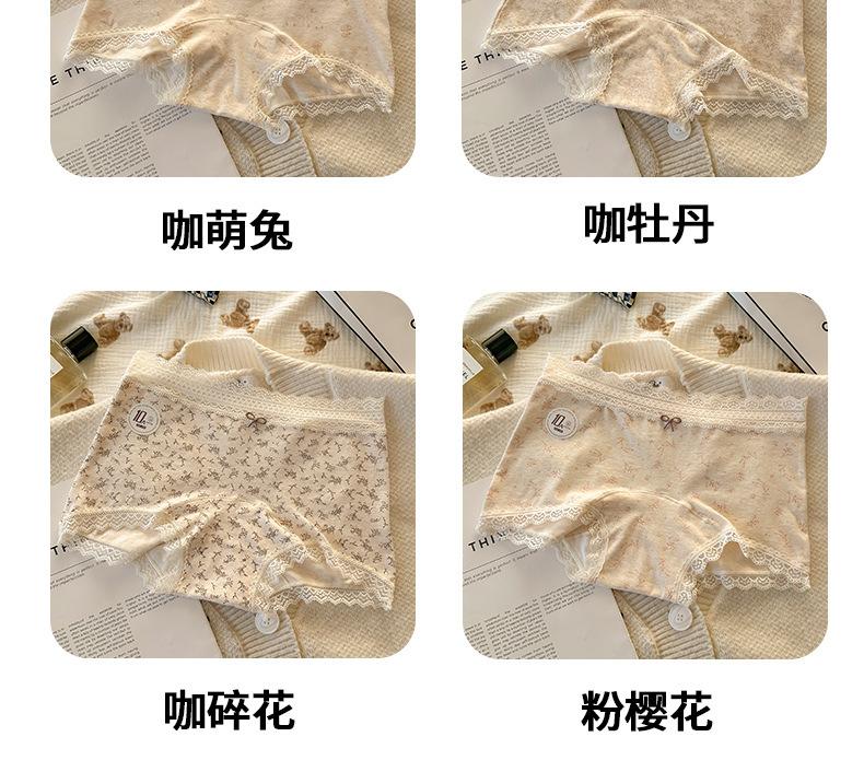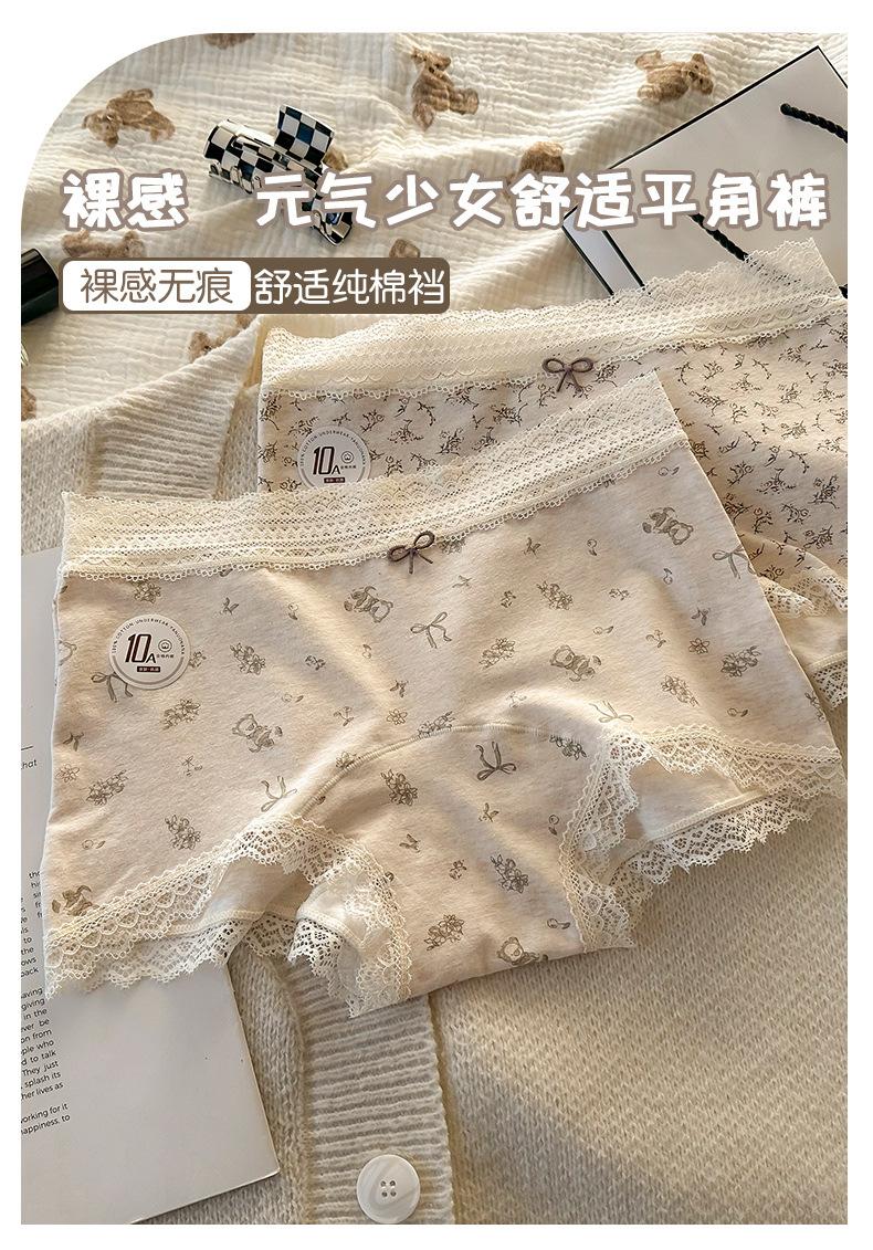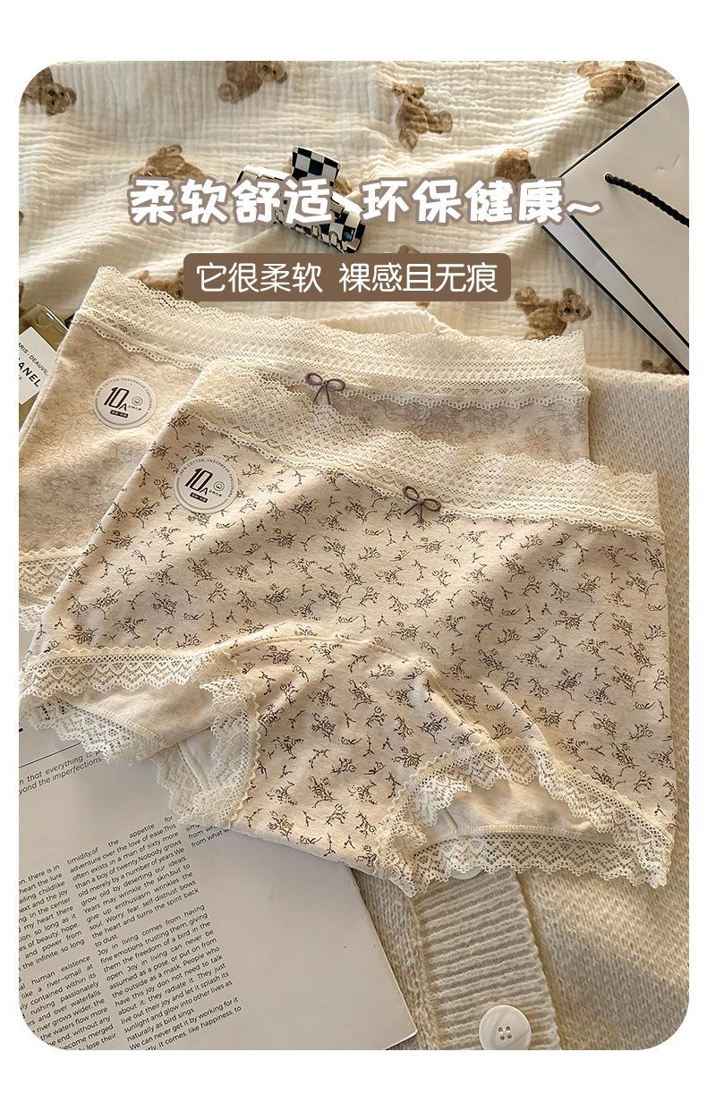 Algodão Cor Natural Algodão Puro Calcinhas Femininas Acabamento em Renda Calcinhas Cavas Retas Que Cobrem o Quadril Doce Pequeno Floral Crotch Estendido e Alargado