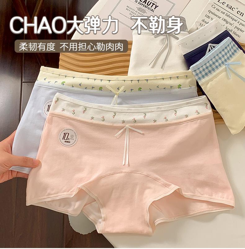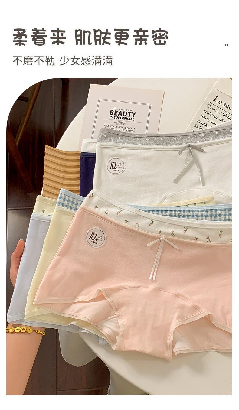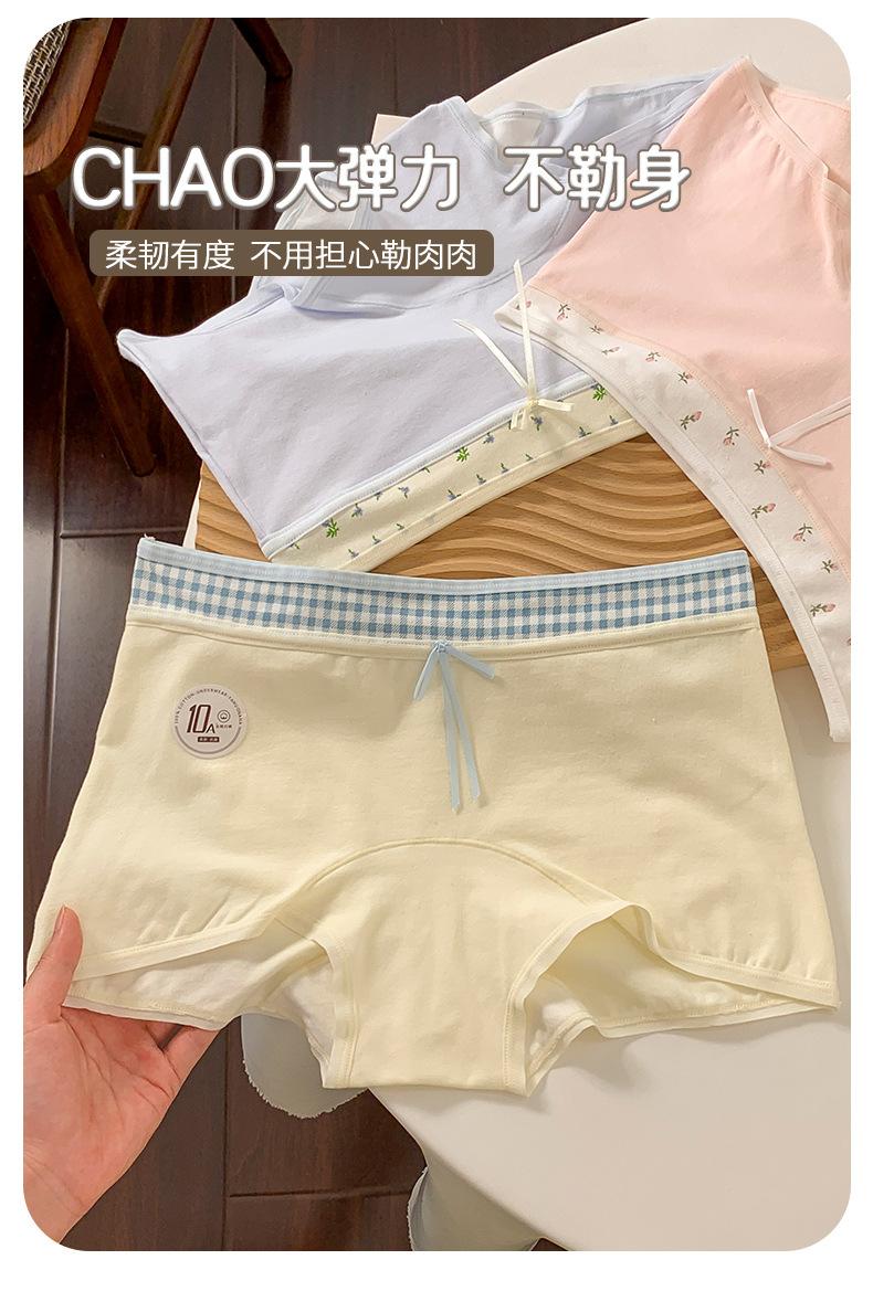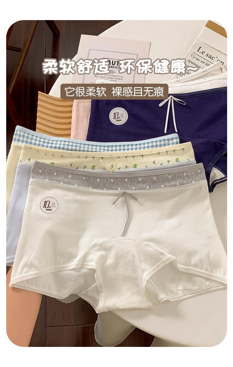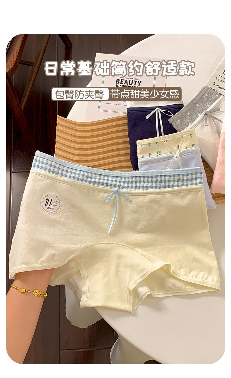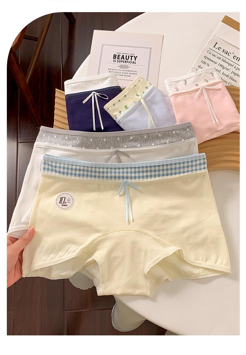 Calcinhas Doces Plus Size Cintura Média-Alta Algodão Puro Cuecas Boxer Pequenas Reforço Estendido Algodão Antibacteriano 10A Bloco de Cores Hipster Roupa Íntima Feminina