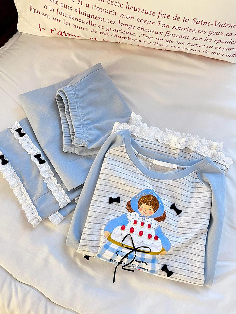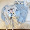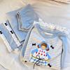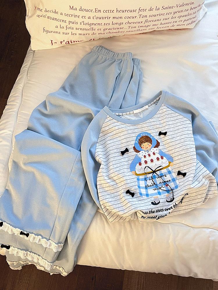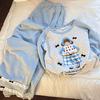 Pijama de Menina Estilo Doce de Nicho Coreano Bolo Listrado Outono Novo Tamanho Grande Conjunto de Roupa de Casa Pode Ser Usado Fora
