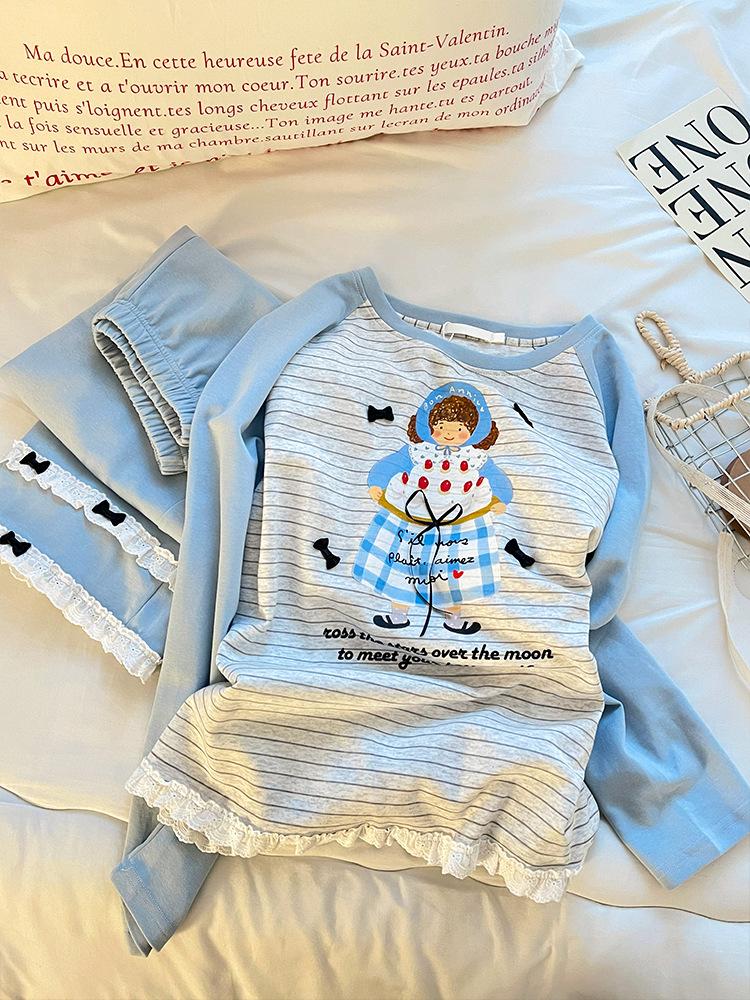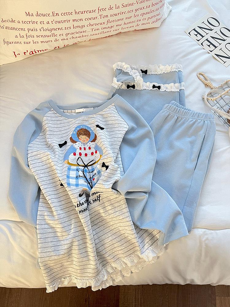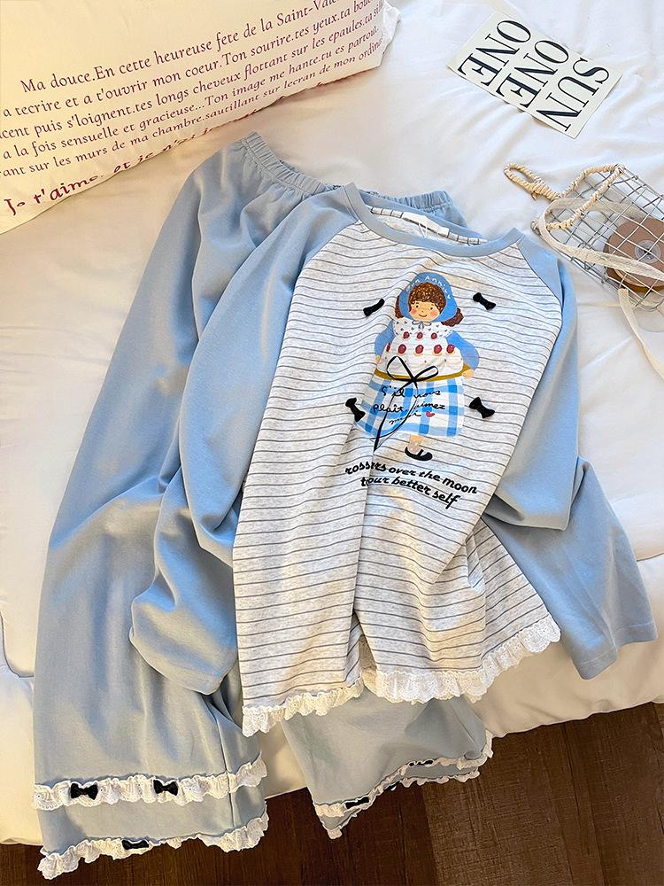Compre Pijama Feminina Estilo Doce Nicho Coreano Estampa Bolo Listrado Outono Novo Tamanho Grande Conjunto Roupa de Casa Pode Ser Usado Fora no atacado no Joom.pro