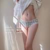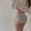 Cueca Xadrez de Algodão Puro Feminina Cintura Média Respirável Estilo Japonês Retrô Menina Borda de Renda Levanta Quadril Algodão Virilha Calcinhas Femininas