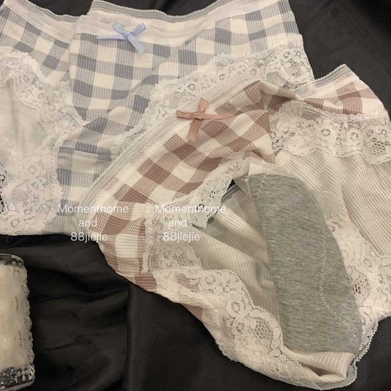 Compre Cueca Xadrez de Algodão Puro Feminina Cintura Média Respirável Estilo Japonês Retrô Menina Borda de Renda Levanta Quadril Algodão Virilha Calcinhas Femininas no atacado no Joom.pro