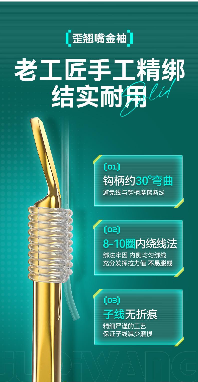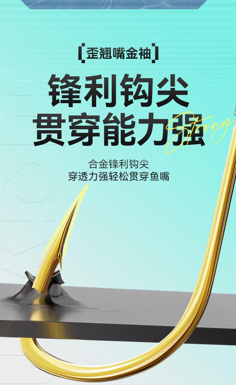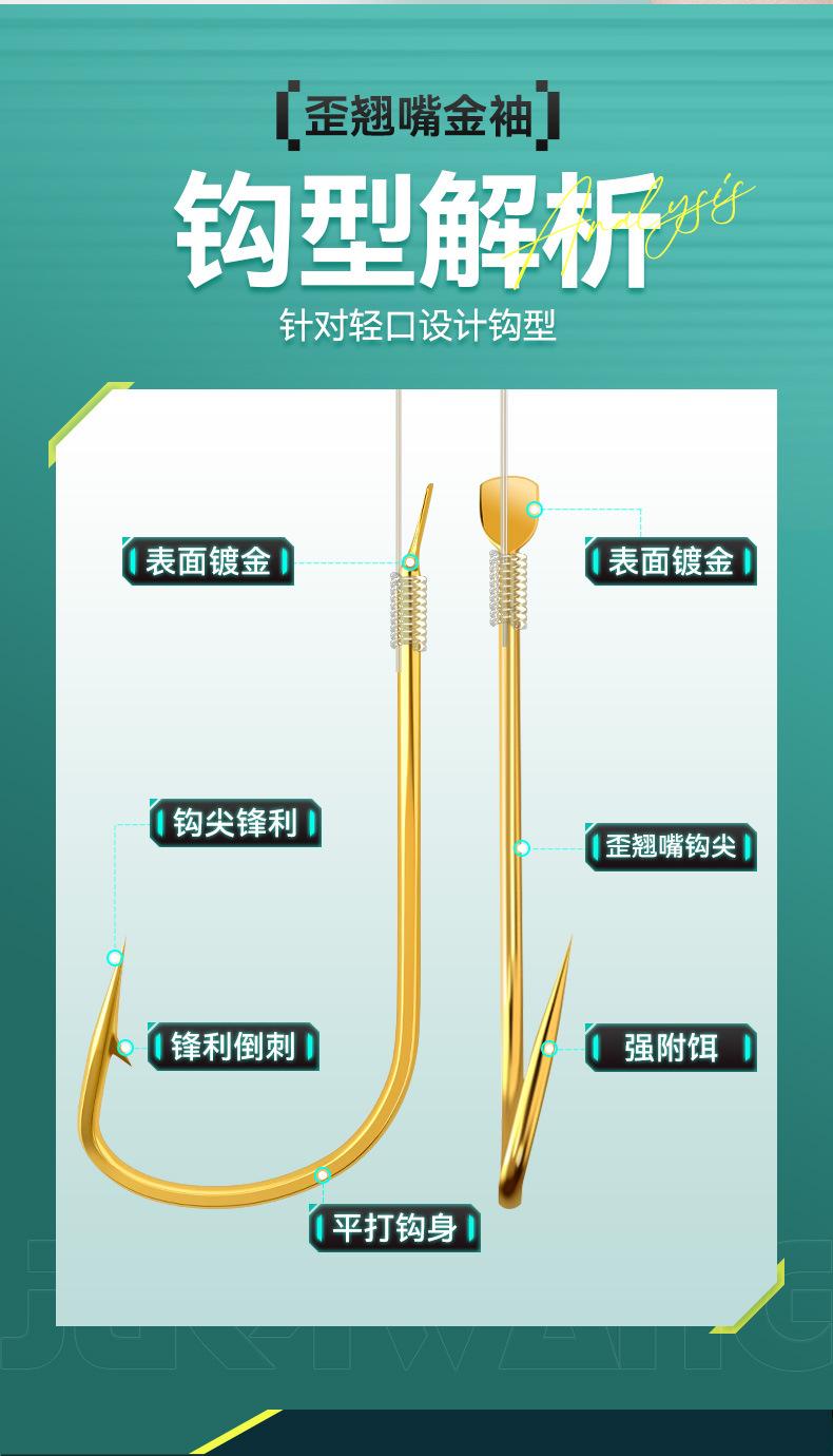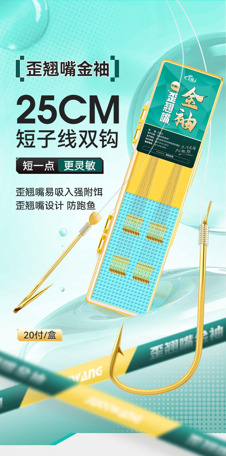 Crooked mouth gold sleeve with thorns 25CM [hook 1 line 0.4+hook 2 line 0.6] 20 pairs, Warped mouth gold sleev...