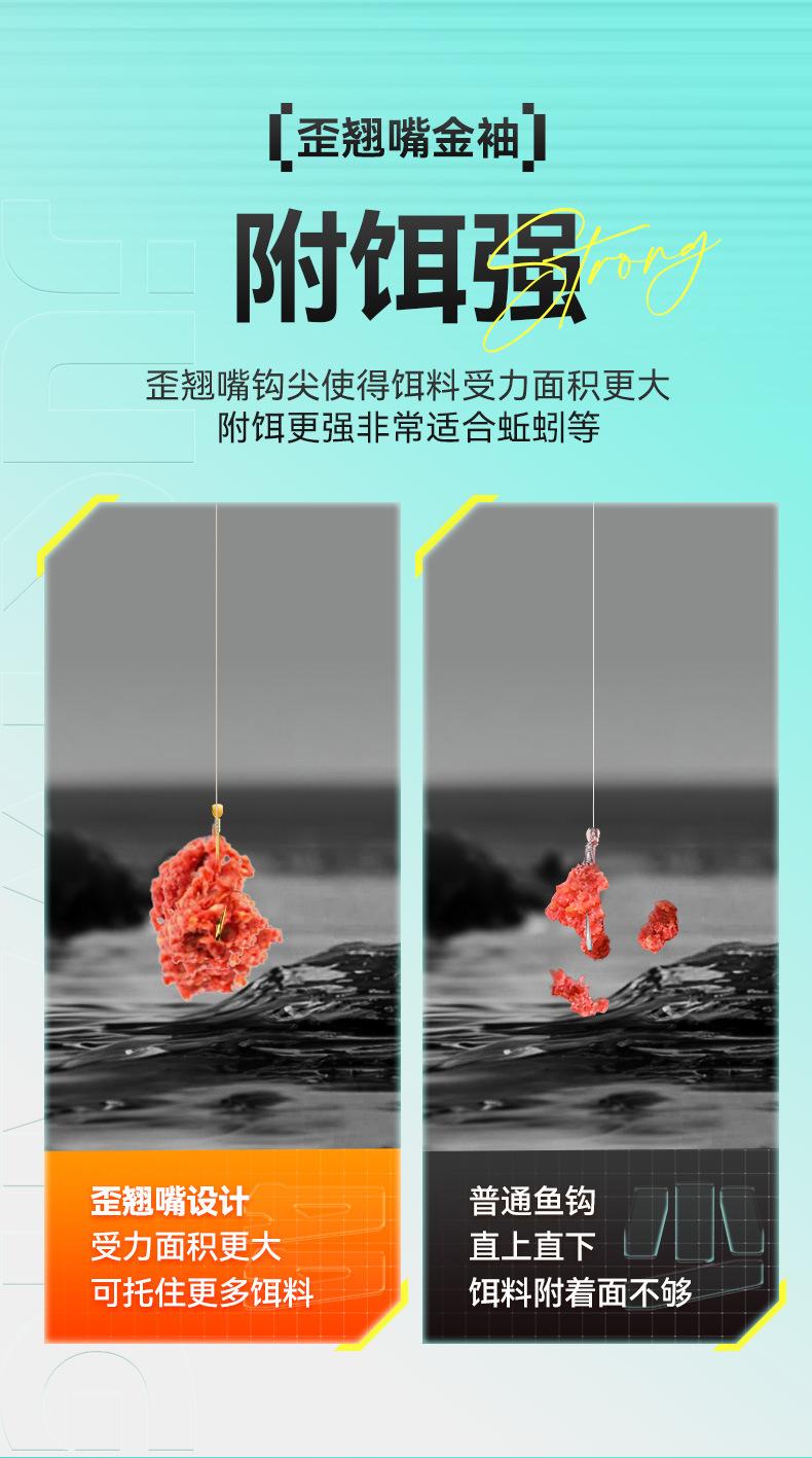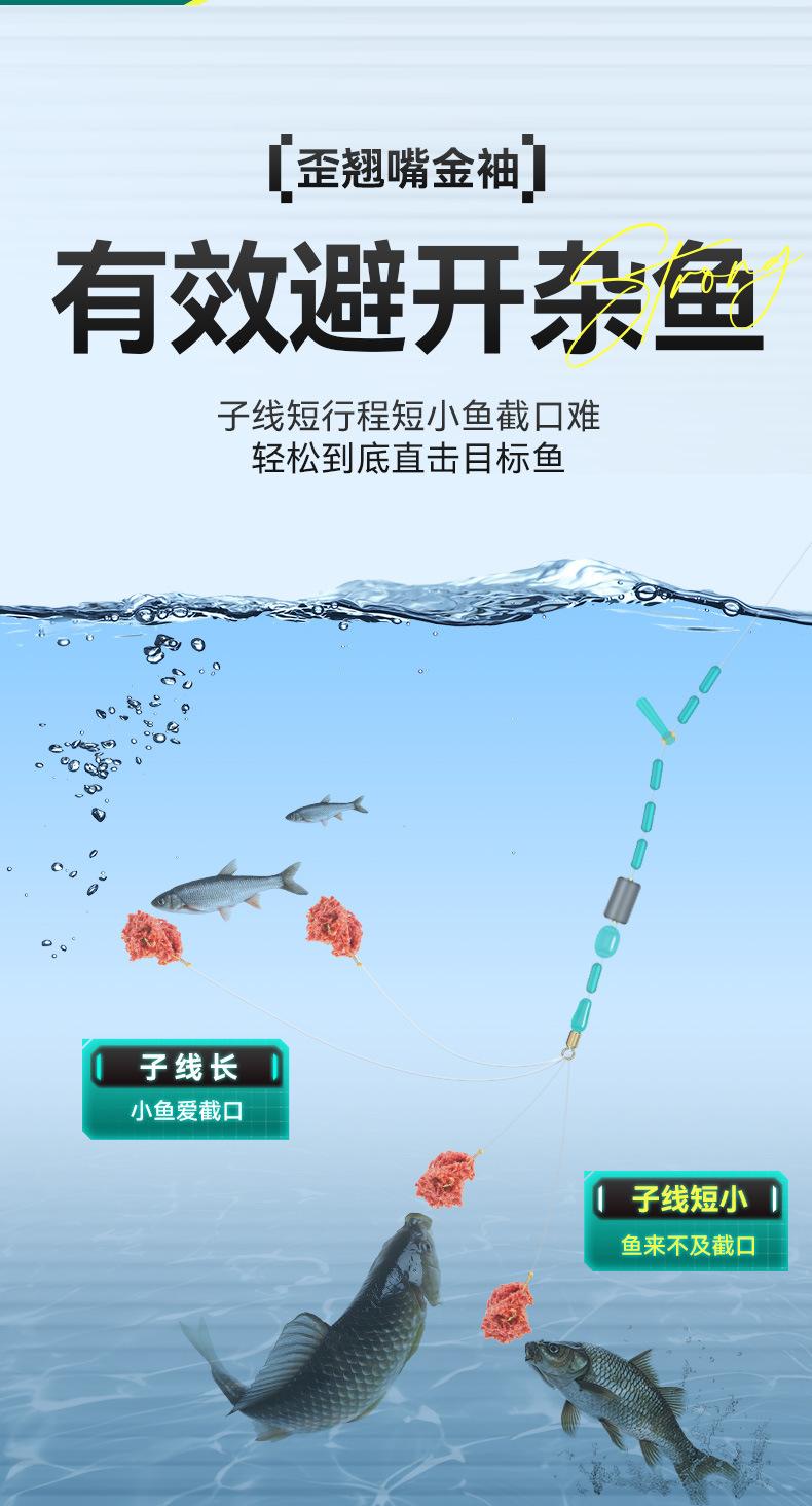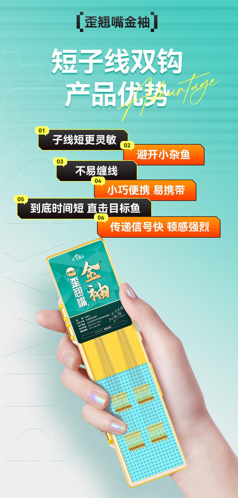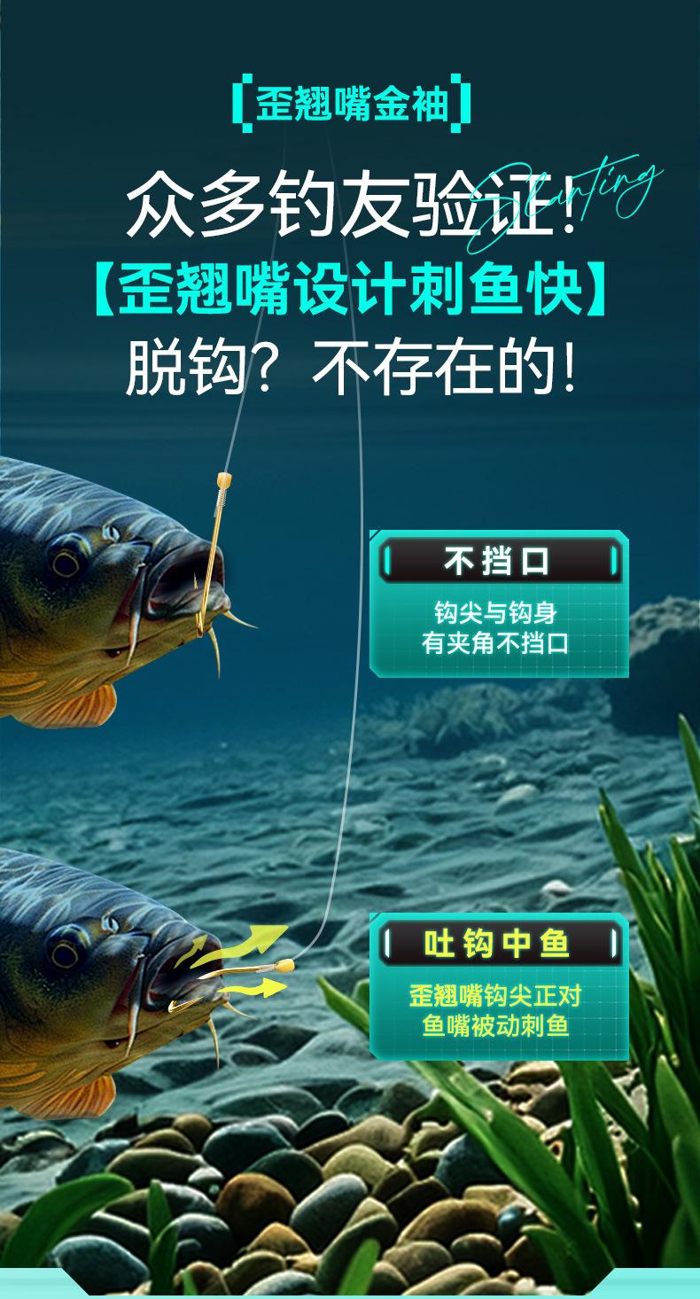 Crooked mouth gold sleeve with thorns 25CM [hook 1 line 0.4+hook 2 line 0.6] 20 pairs, Warped mouth gold sleev...