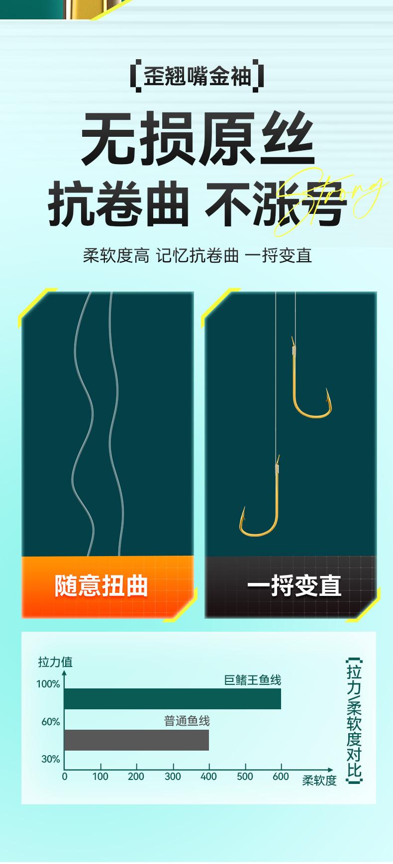 Boca Tortuosa Manga Dourada Líder Curto Conjunto Acabado Gancho Duplo Conjunto de Anzóis Anti-Emaranhamento Pesca Selvagem Especial Gancho Carpa Crucian Venda por Atacado