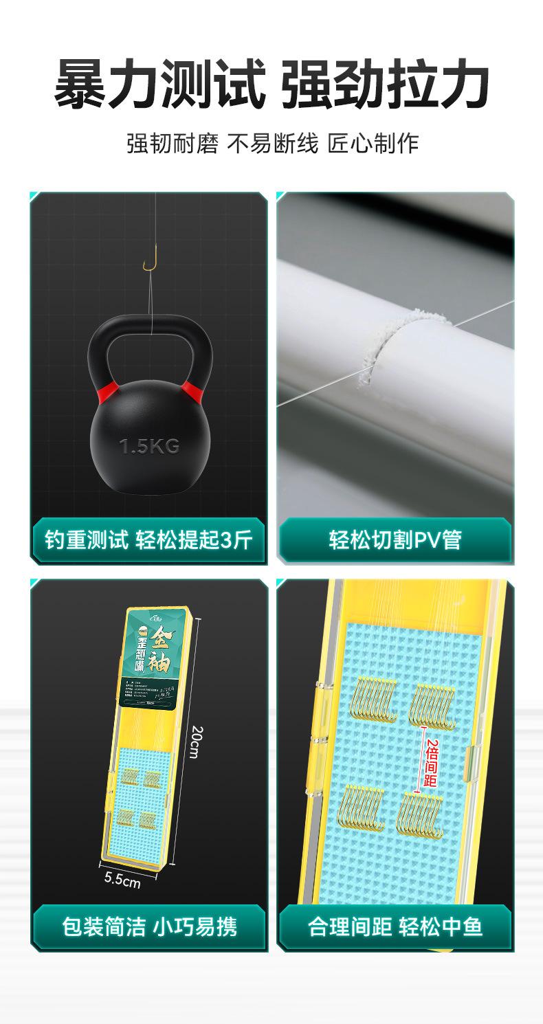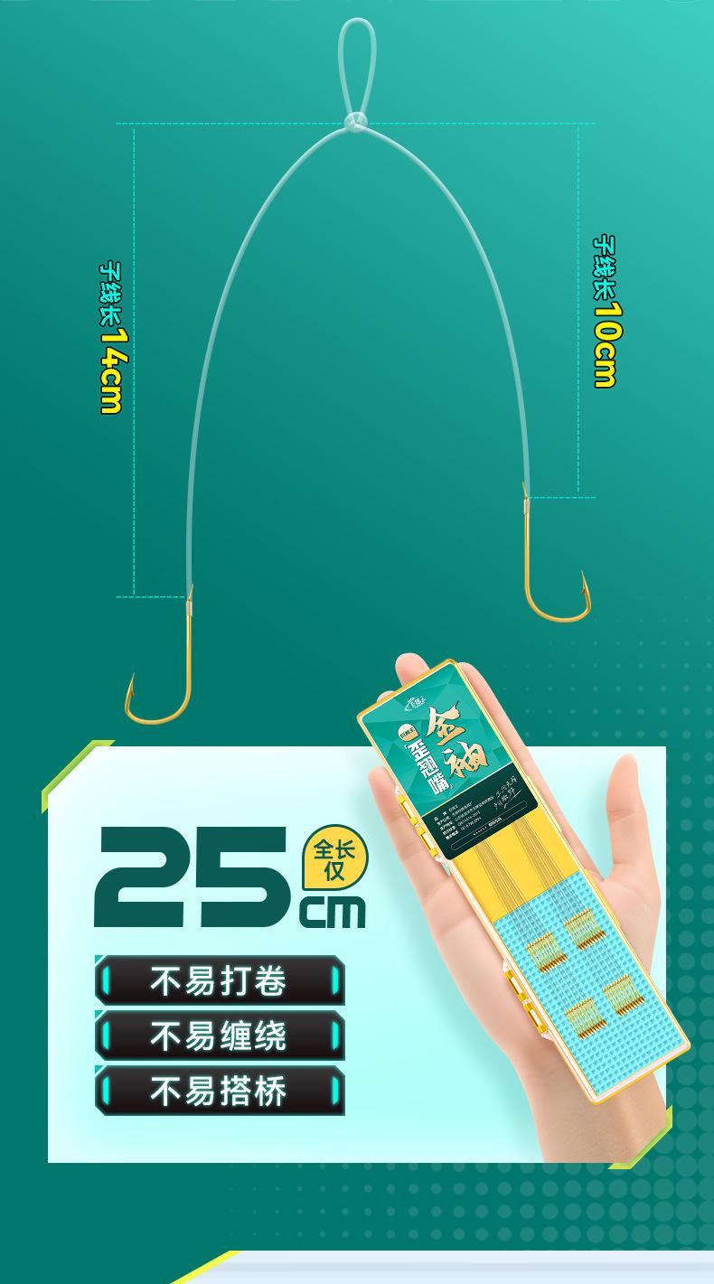 Bent-mouth golden sleeve with barbs 25CM [hook 5 line 1.0 + hook 6 line 1.2] 20 pairs