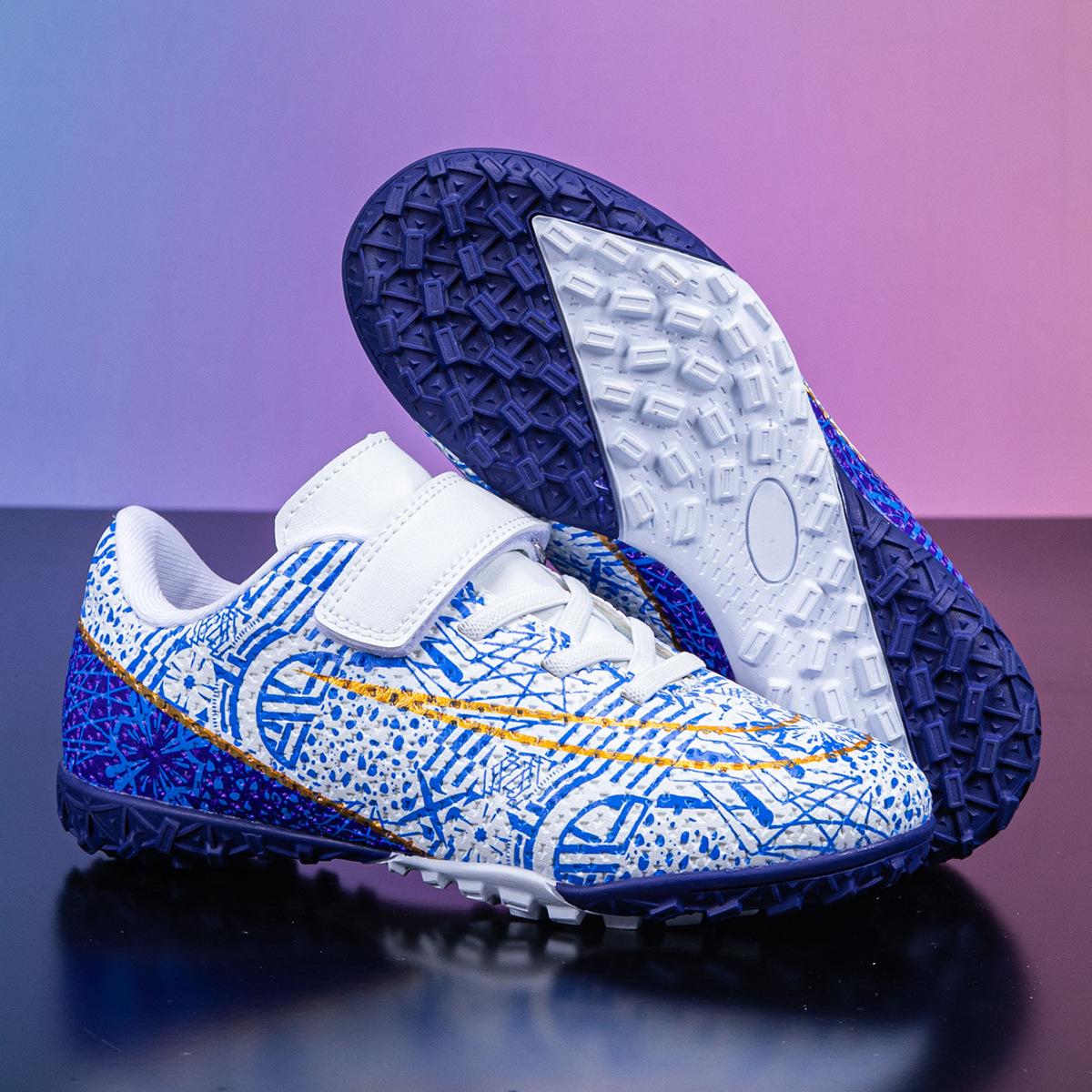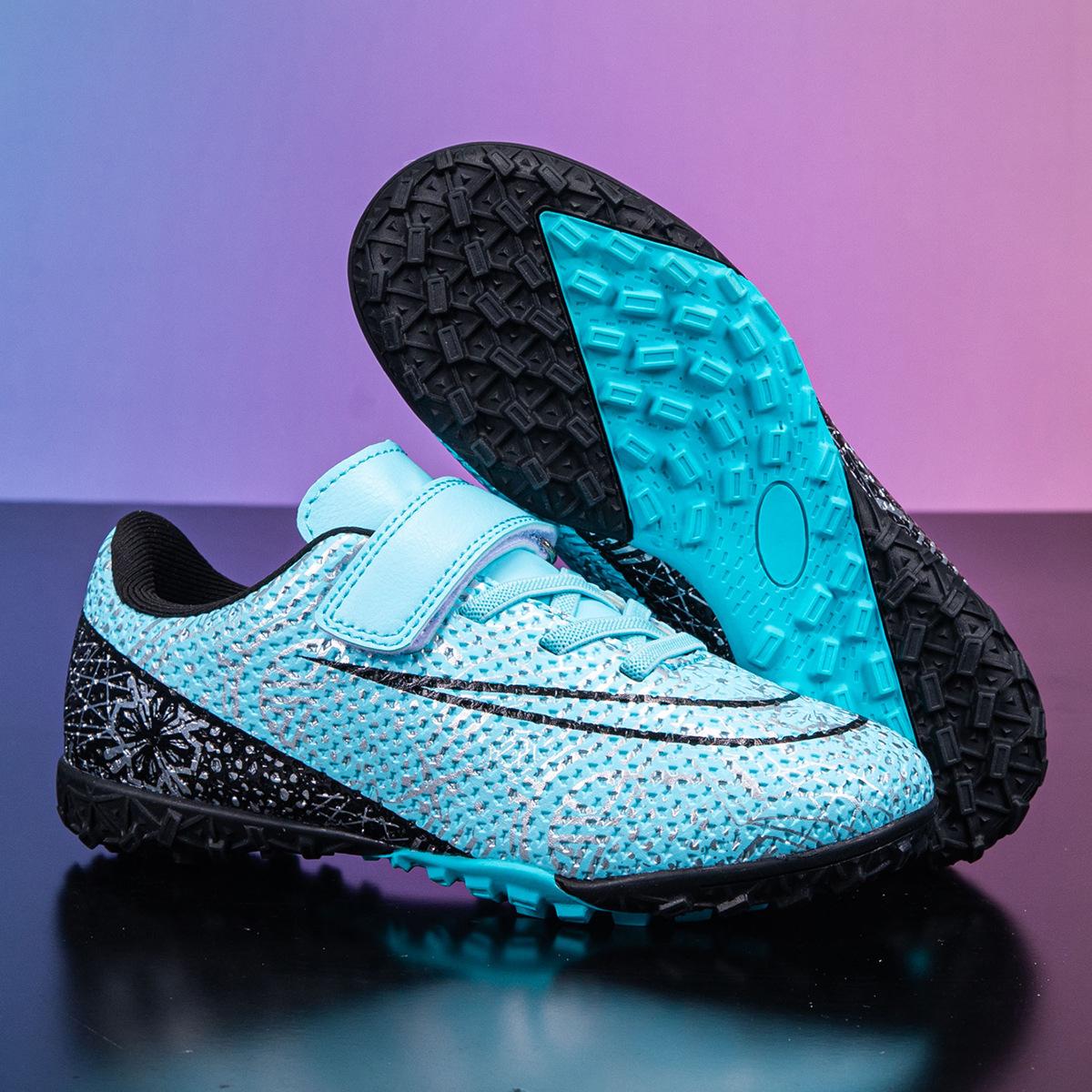Sapatos de Futebol Infantil Cano Baixo Velcro Novo Respirável Estudante Sapatos de Treino Profissional Transfronteiriço Sapatos de Futebol de Trava Longa