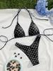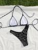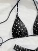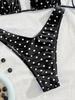 Novo Conjunto de Biquíni Sexy de Festa Sem Costas com Decote Halter de Amarrar nas Costas, Alças Finas, Estampa de Bolinhas Brancas em Fundo Azul