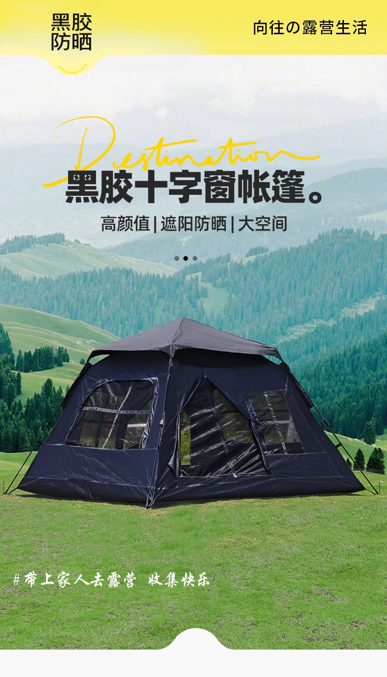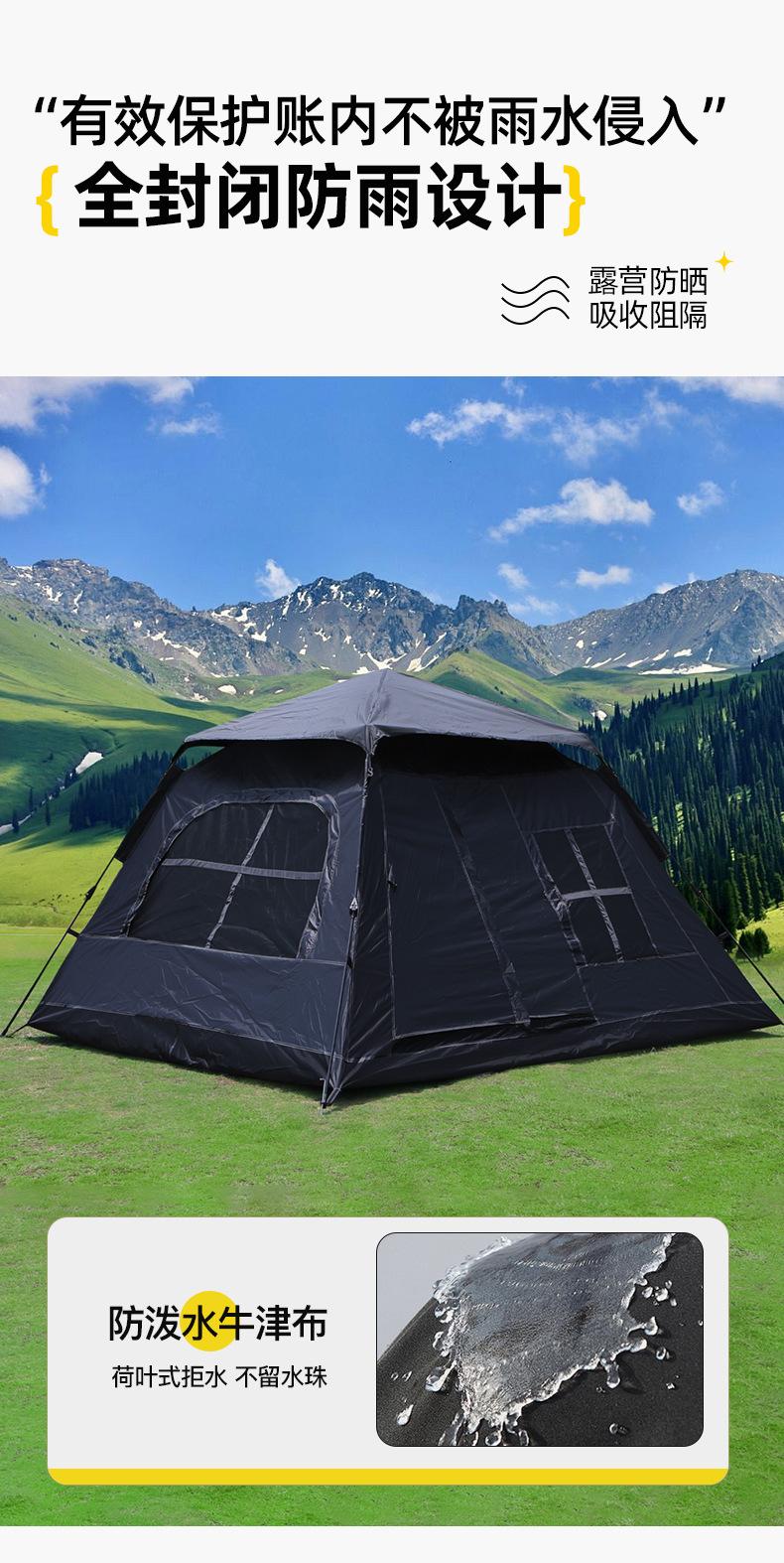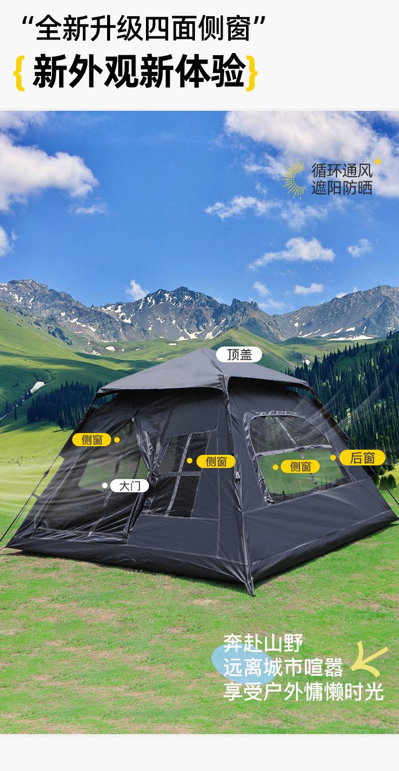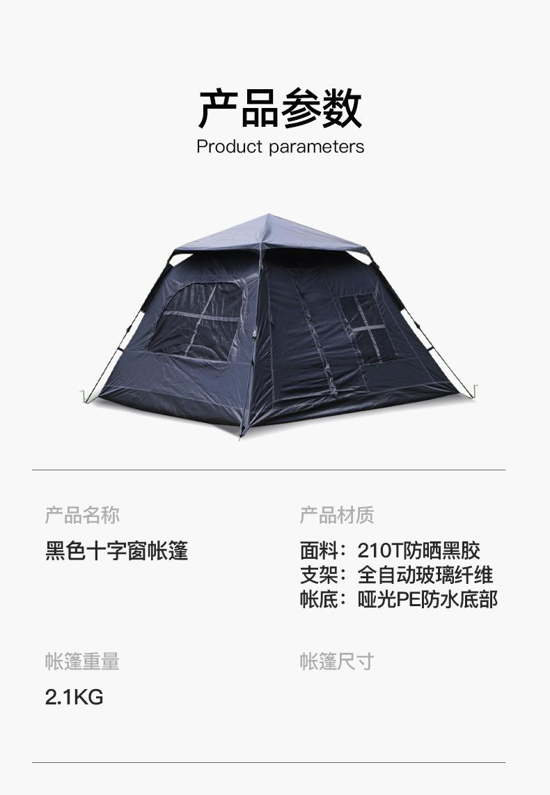 Barraca Personalizada Preta Cruz Janela Camping ao Ar Livre Totalmente Automática Abertura Rápida Barraca 3-4 Pessoas Blackout Total Camada Dupla