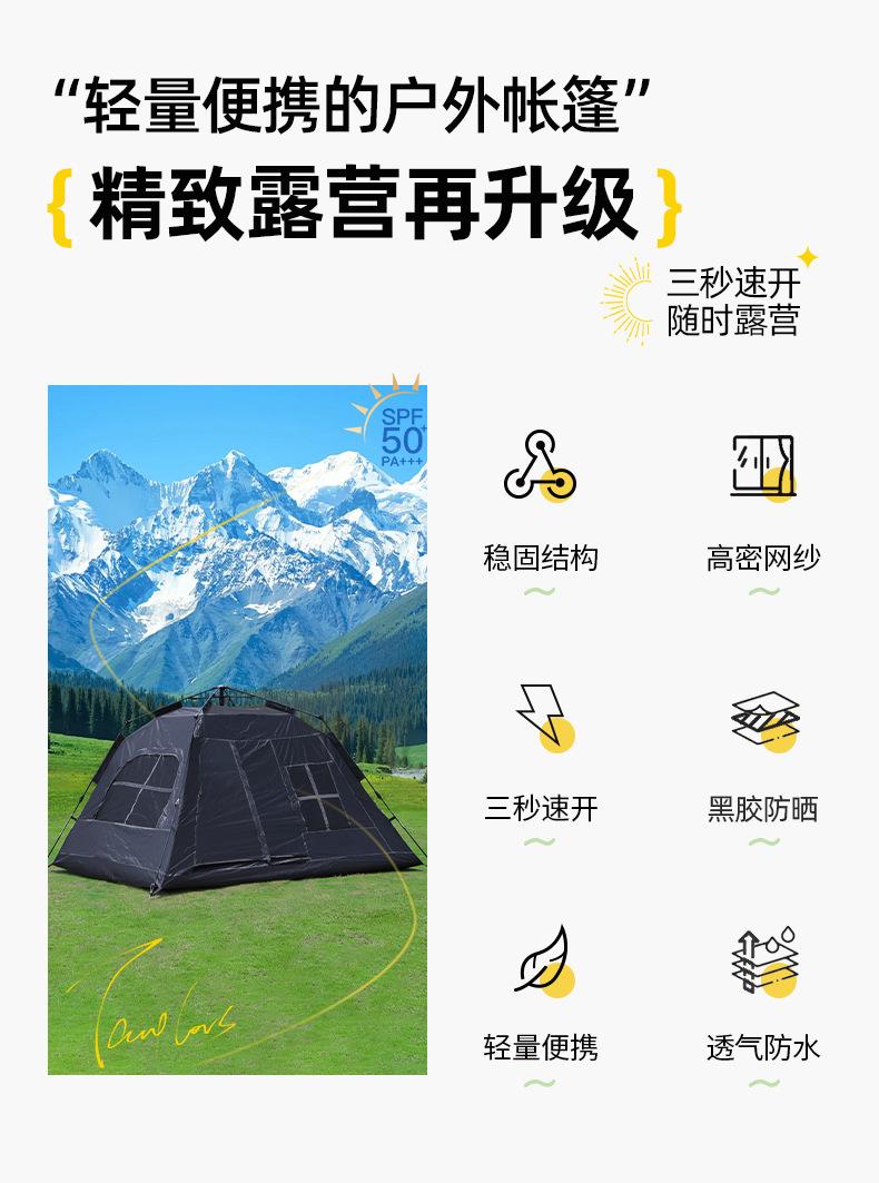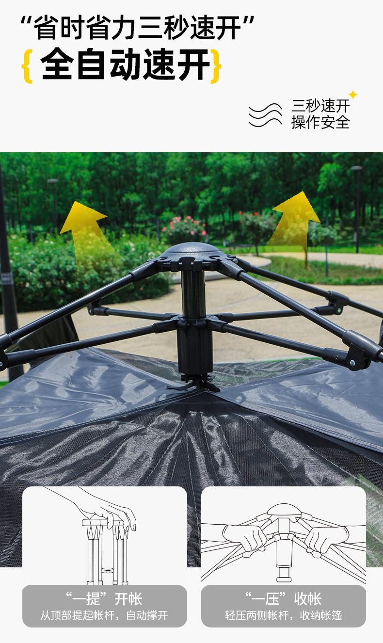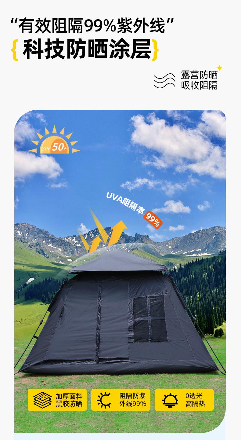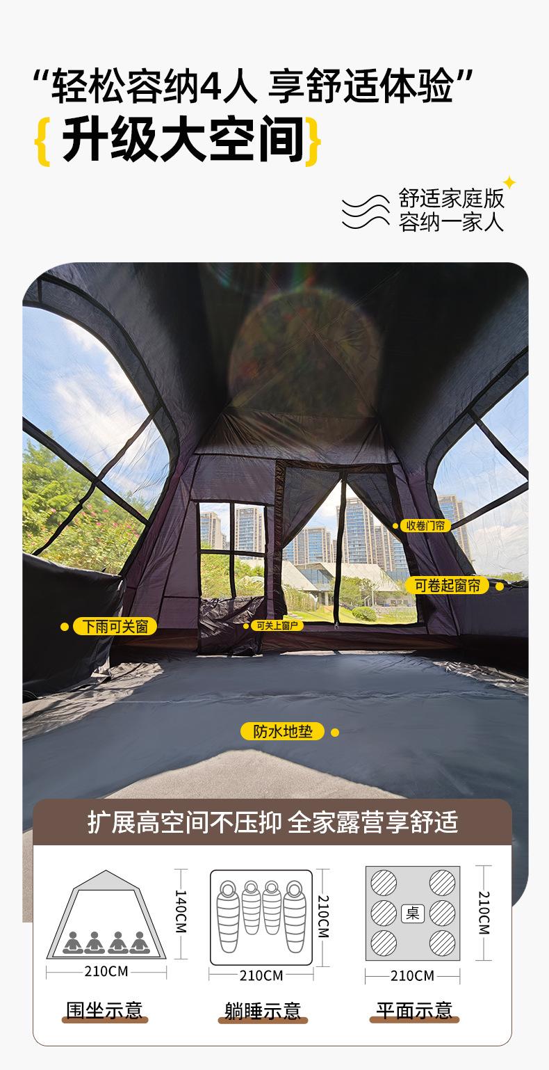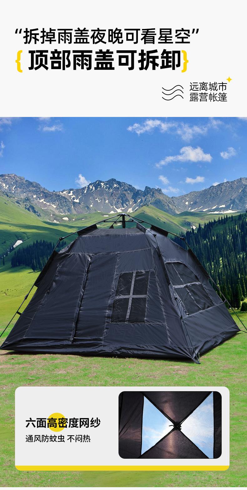 Barraca Personalizada Preta Cruz Janela Camping ao Ar Livre Totalmente Automática Abertura Rápida Barraca 3-4 Pessoas Blackout Total Camada Dupla