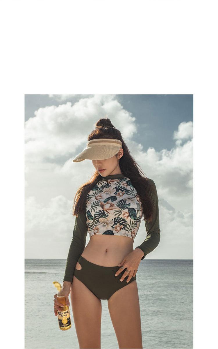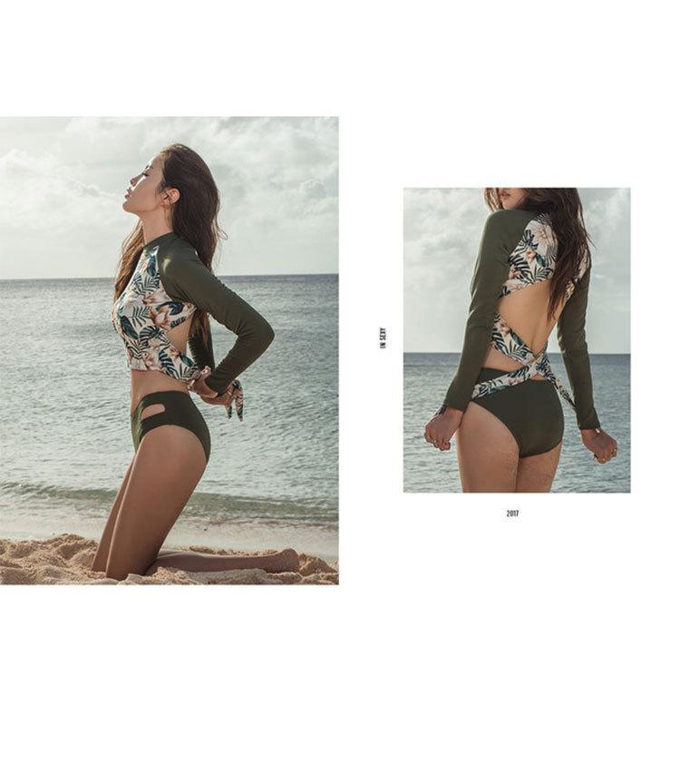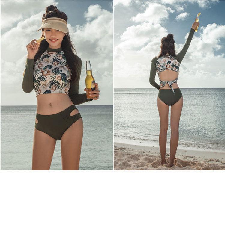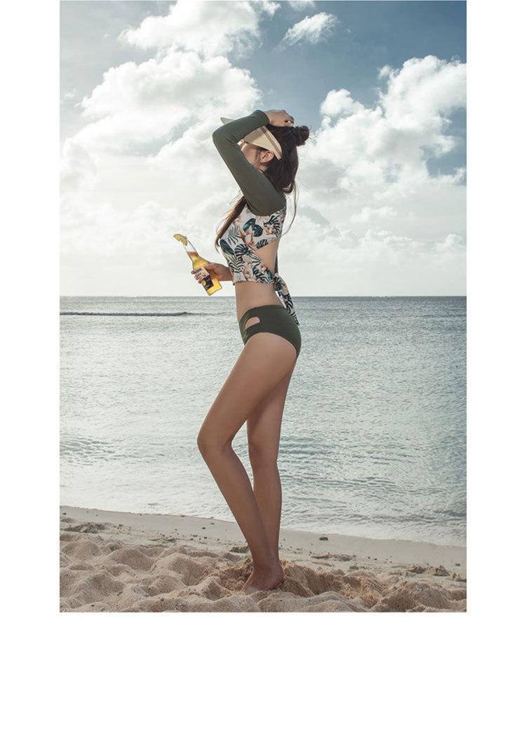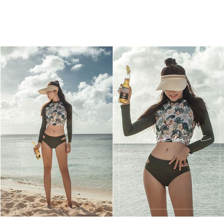 Maiô Coreano Novo Sexy Recorte Cintura Mulheres Conservador Controle de Barriga Emagrecimento Busto Pequeno Push-up Duas Peças Manga Longa Esportivo