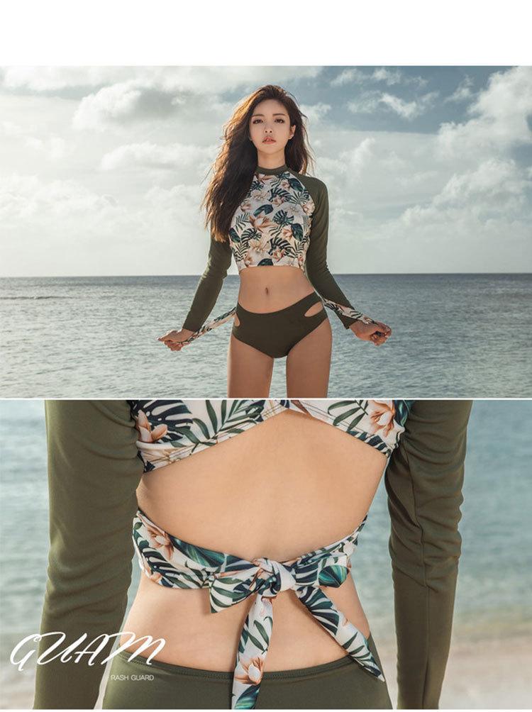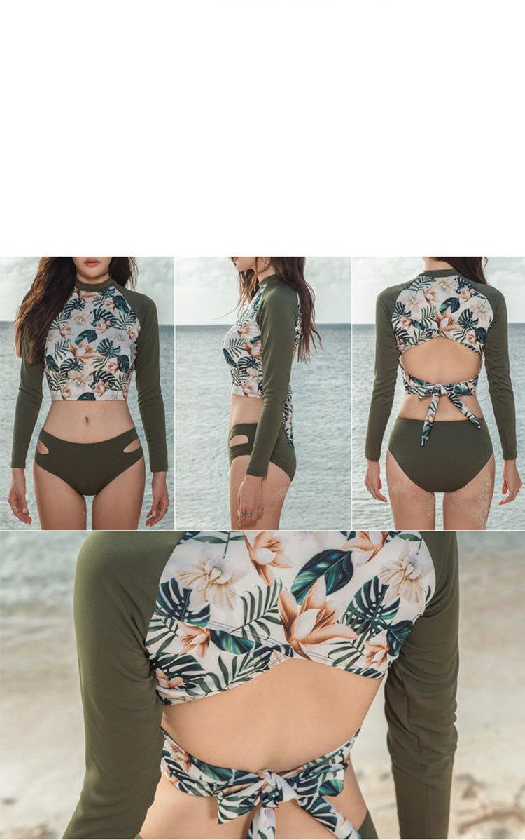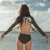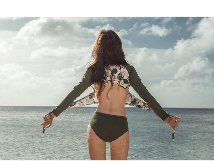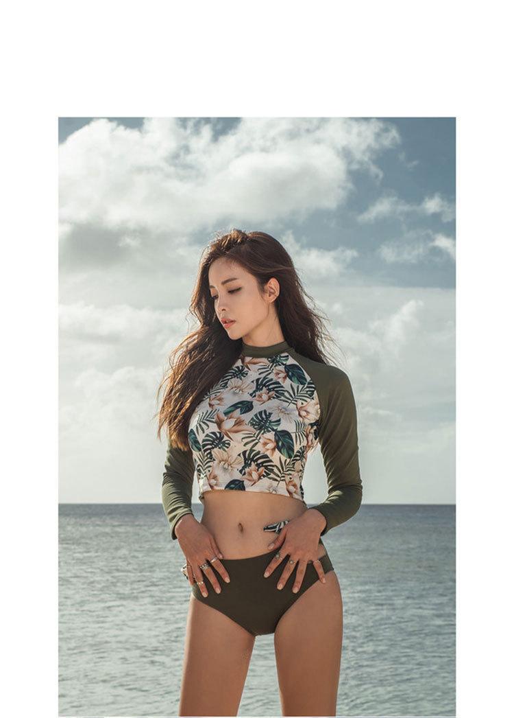 Maiô Coreano Novo Sexy Recorte Cintura Mulheres Conservador Controle de Barriga Emagrecimento Busto Pequeno Push-up Duas Peças Manga Longa Esportivo
