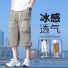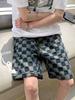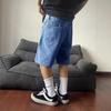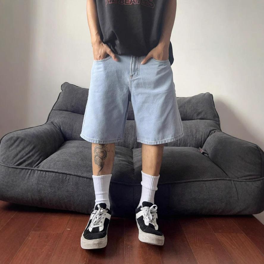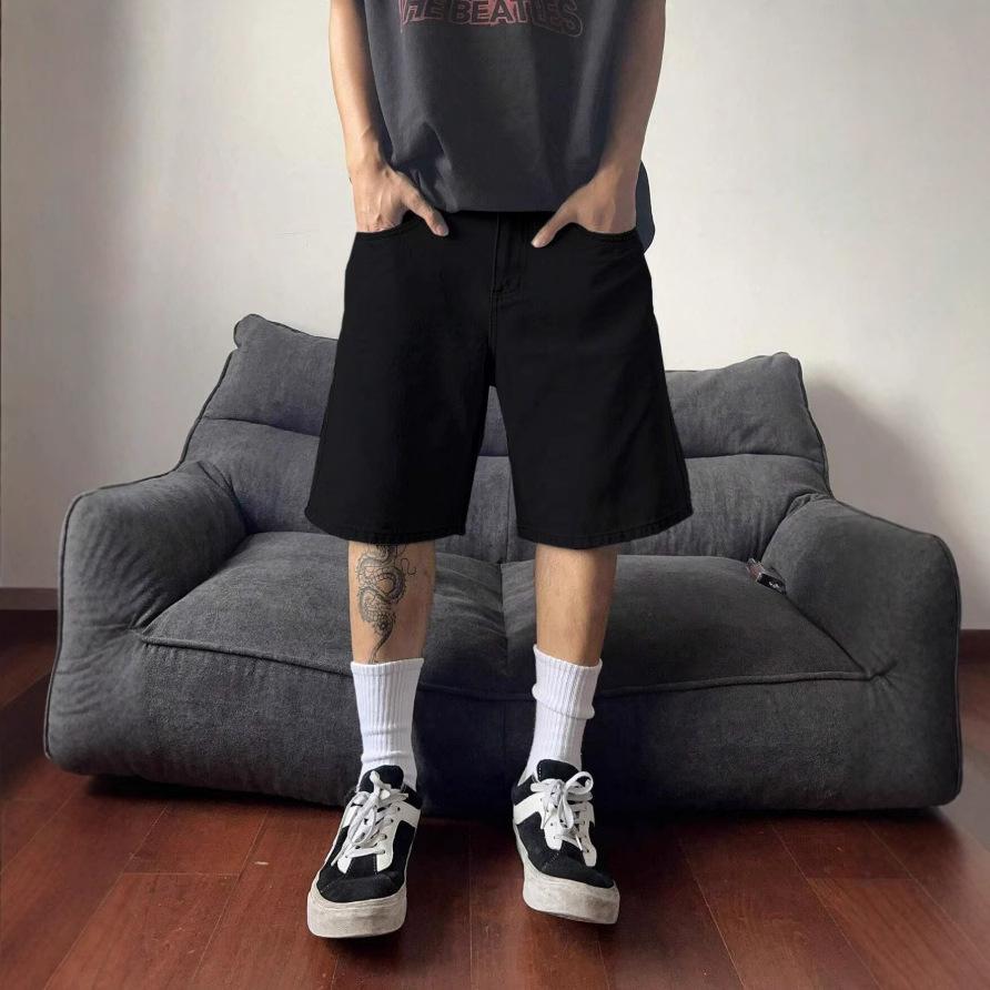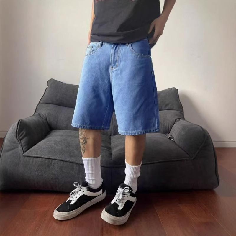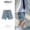 Shorts jeans masculinos estilo Hong Kong marca moderna folgados retrô versátil calças de perna reta modernos bonitos calças cinco pontos verão estilo fino