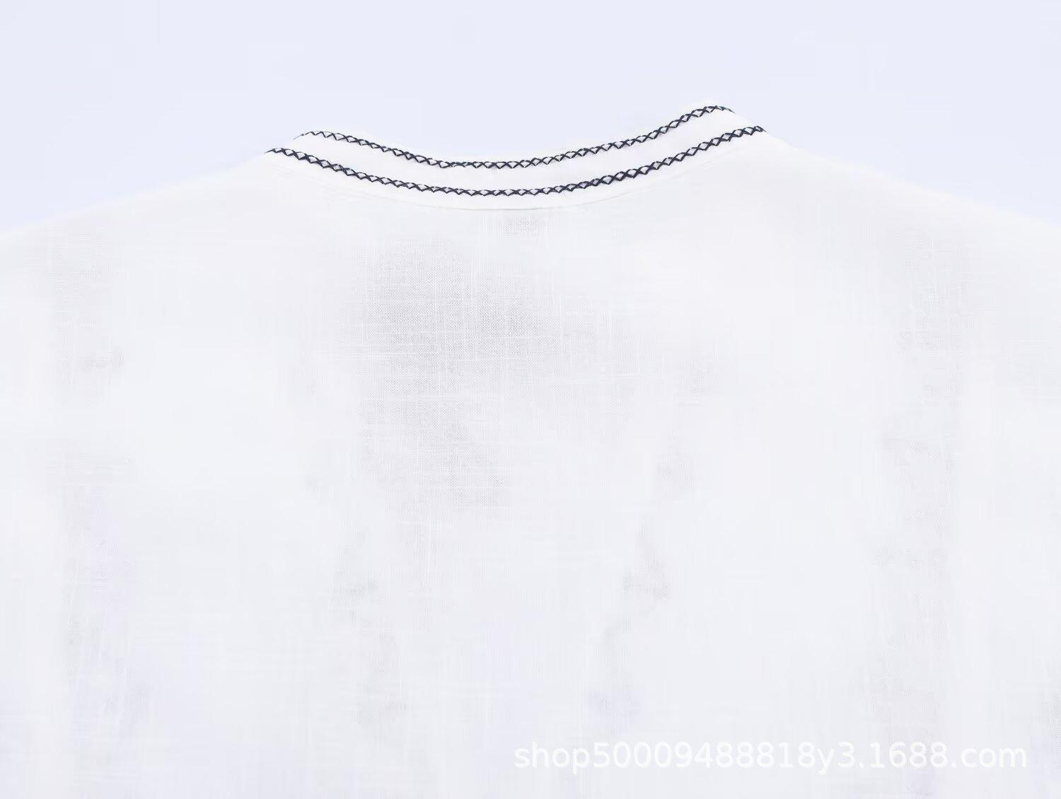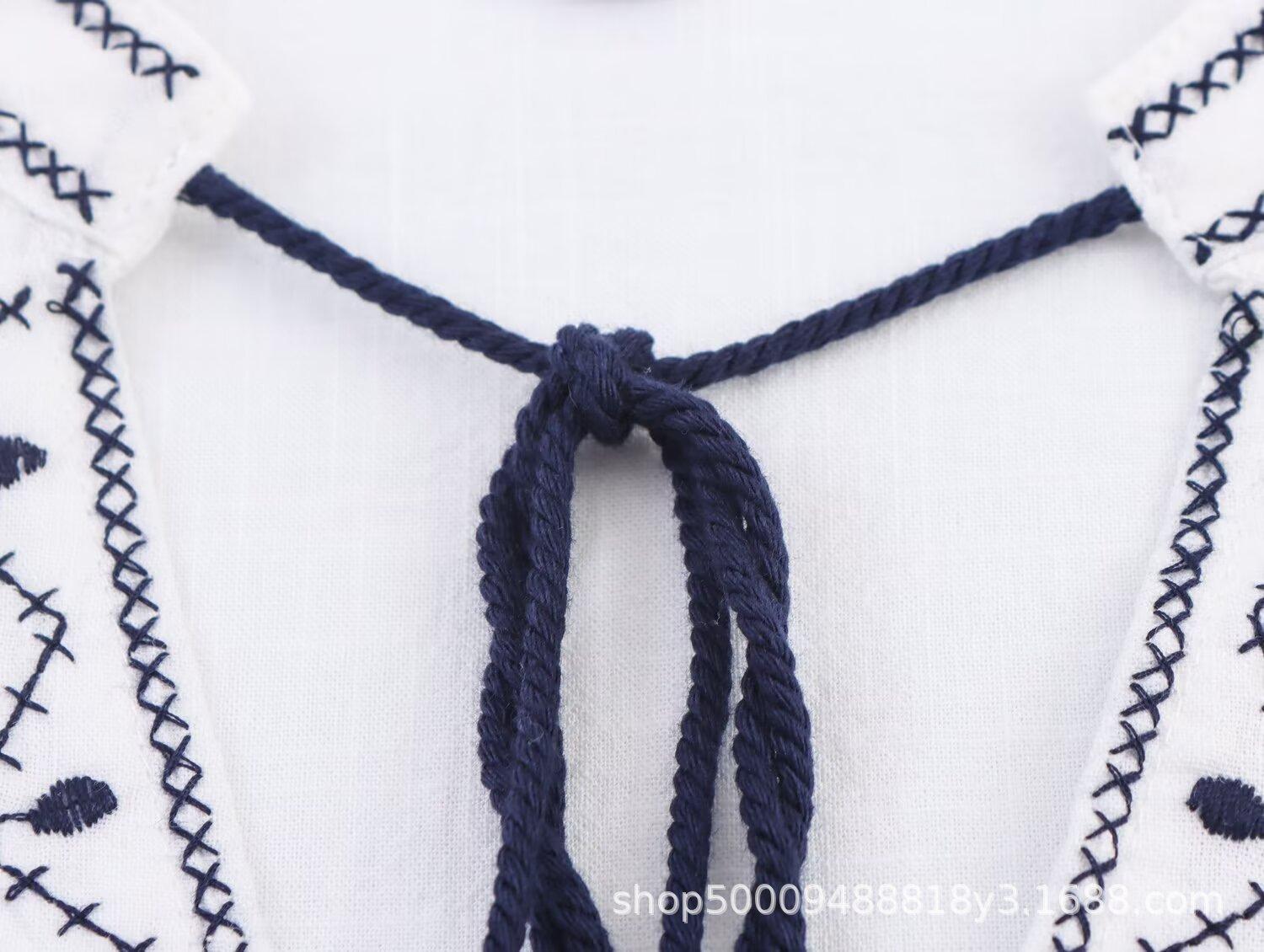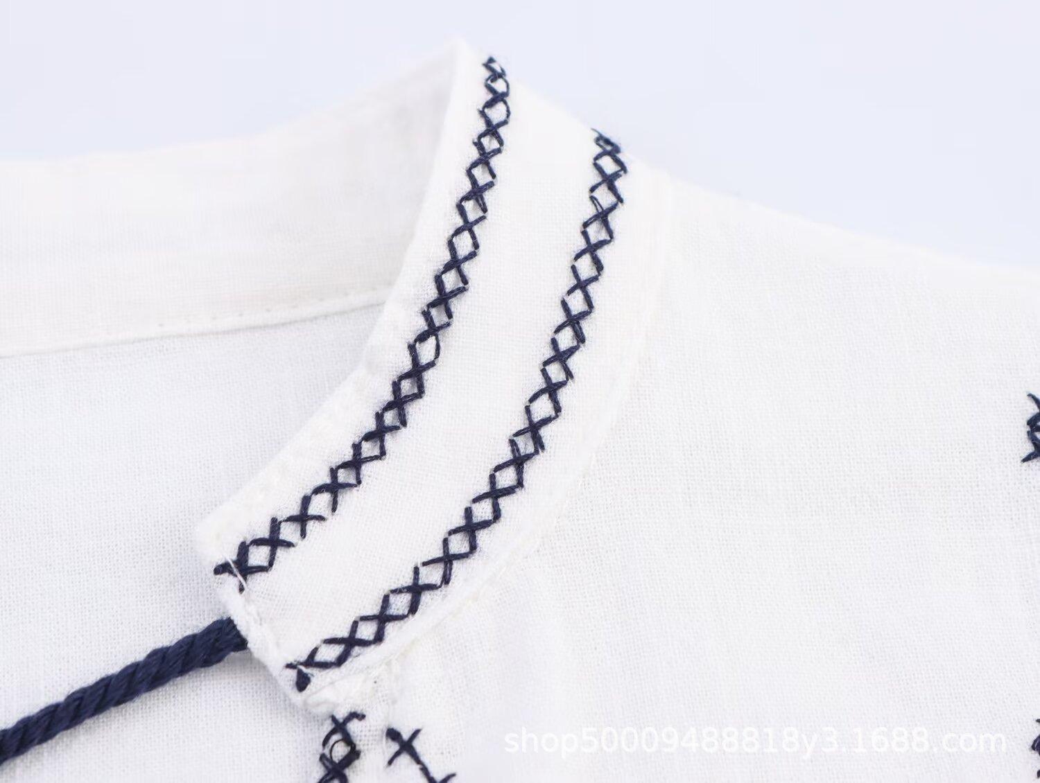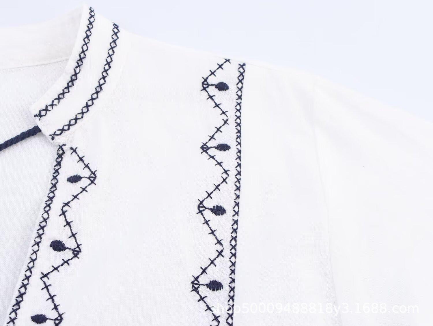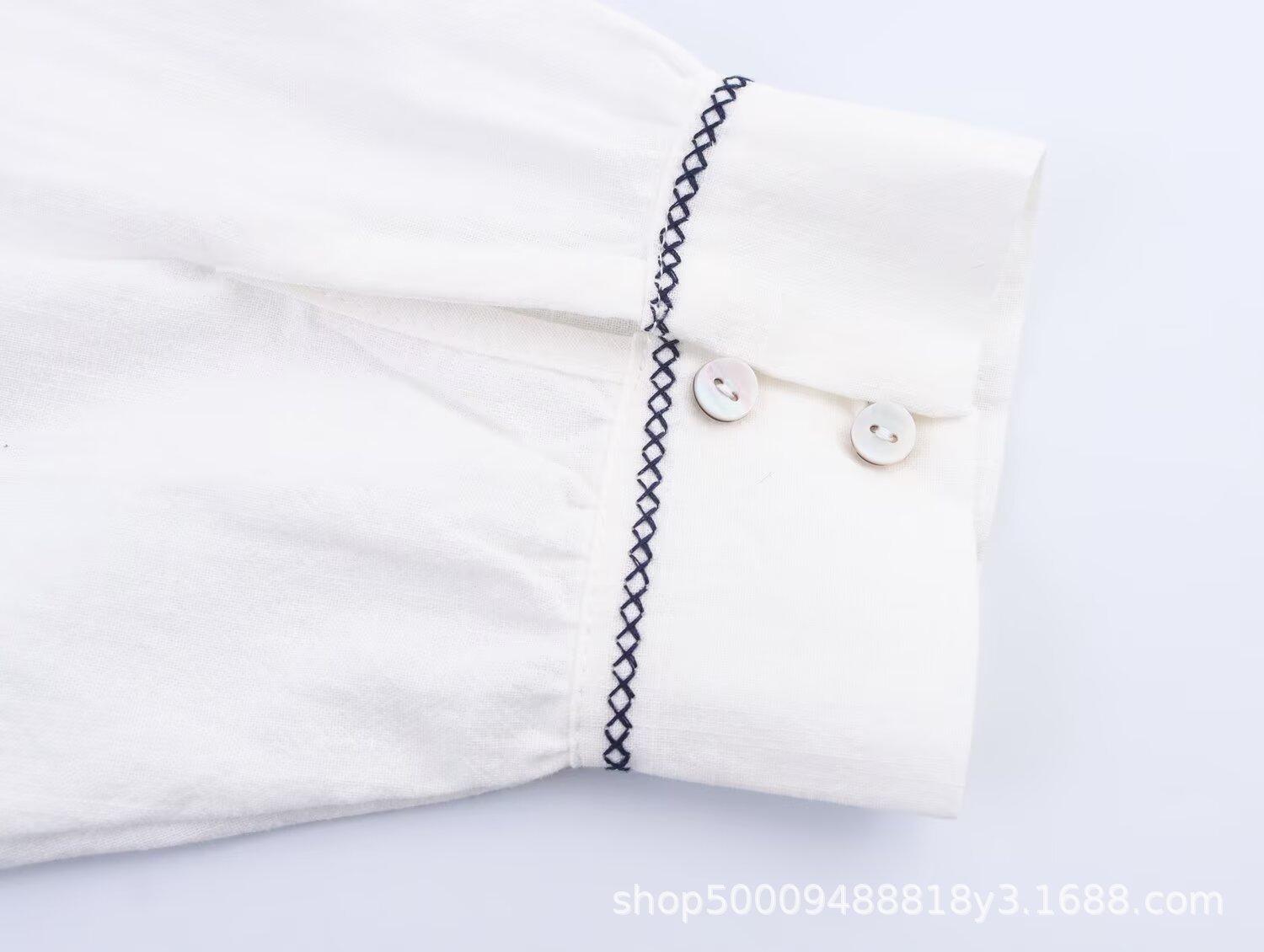 Comércio Exterior Transfronteiriço Roupas Femininas 2025 Outono Novo Estilo Europeu e Americano Moda Retrô Bordado Camisa Manga Longa 8372244