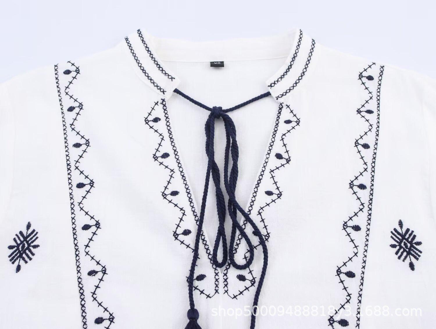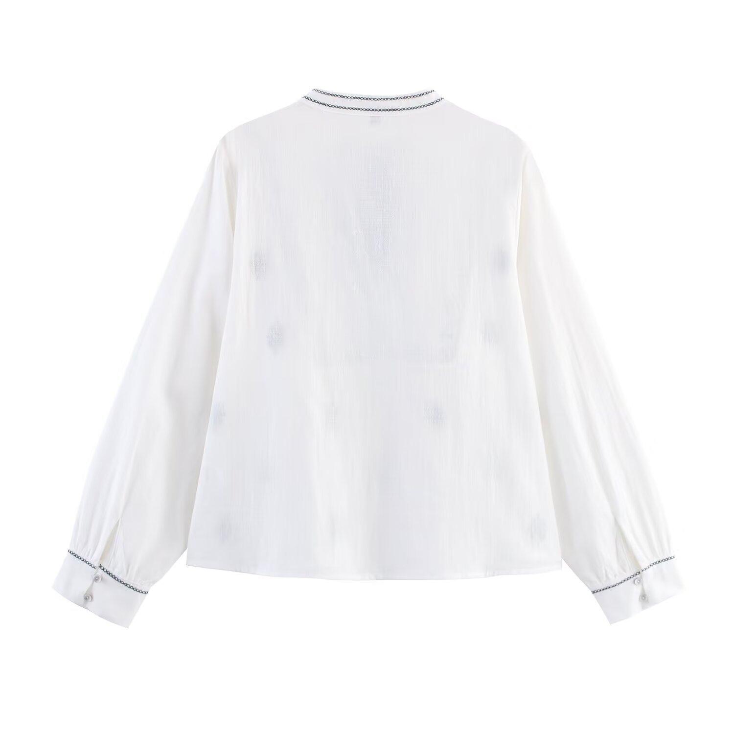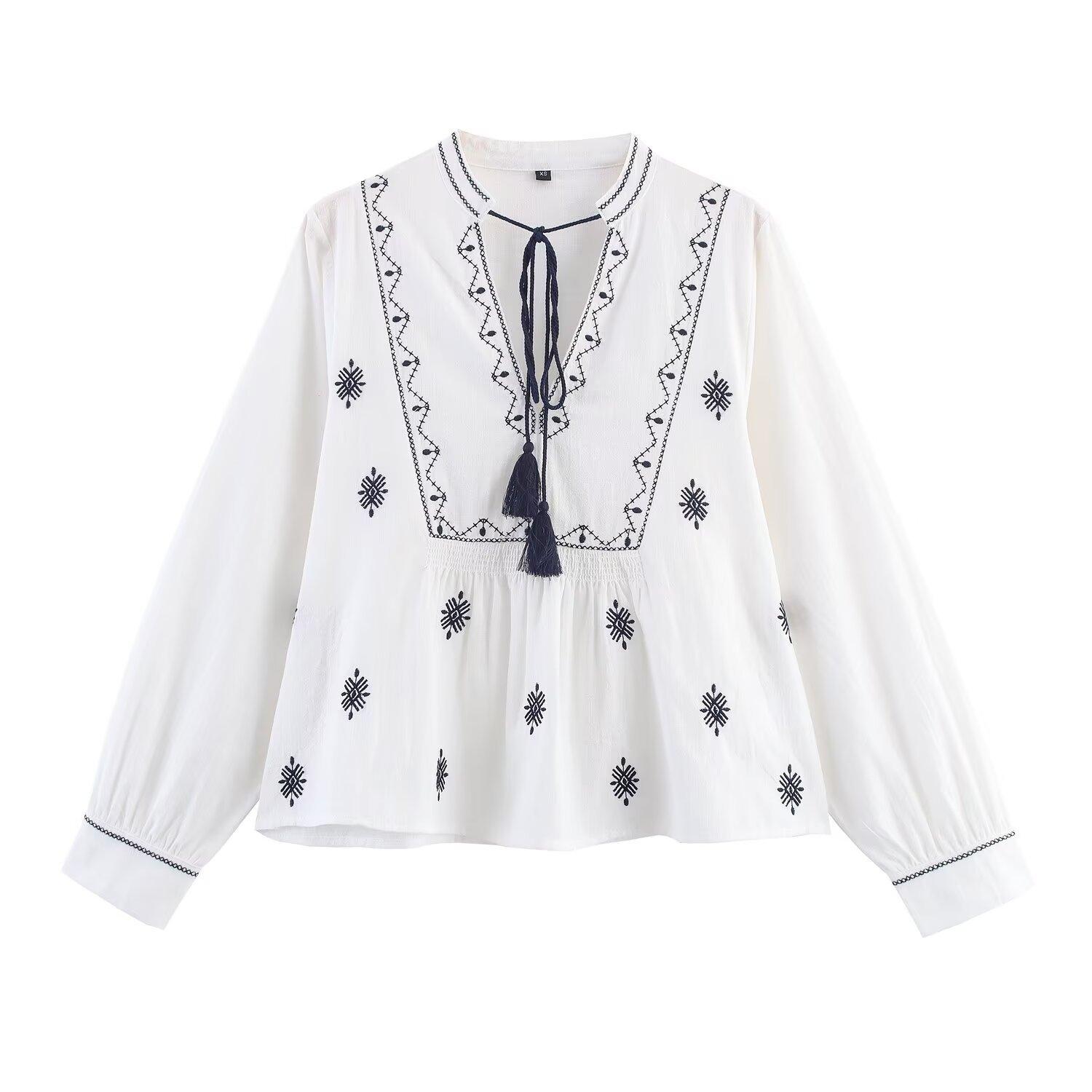 Compre Comércio Exterior Transfronteiriço Roupas Femininas 2025 Outono Novo Estilo Europeu e Americano Moda Retrô Bordado Camisa Manga Longa 8372244 no atacado no Joom.pro
