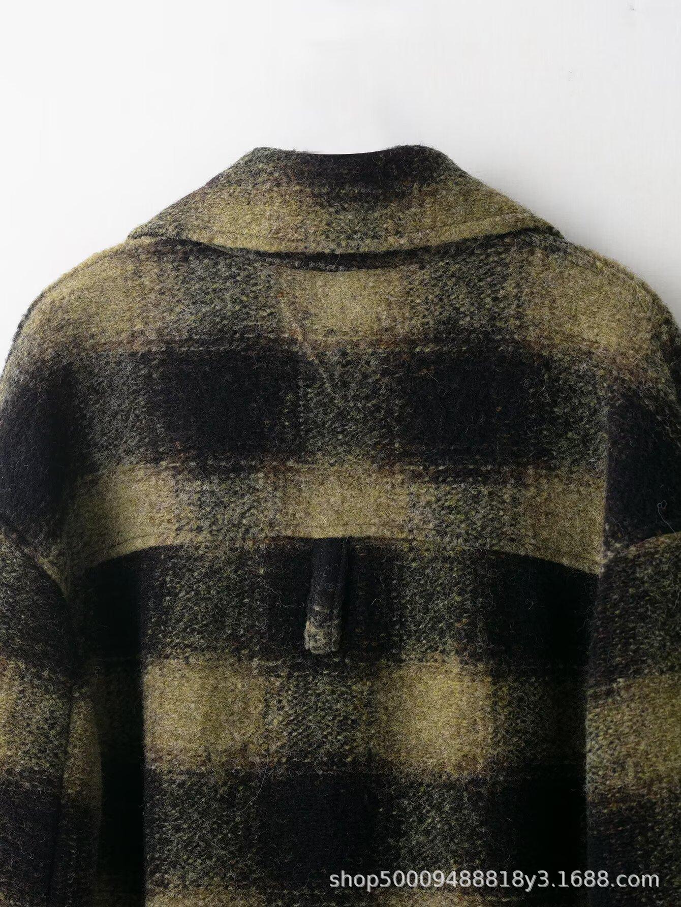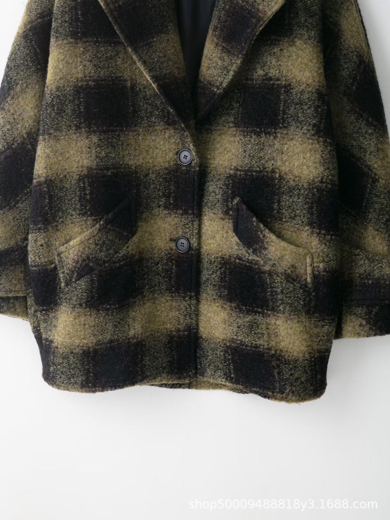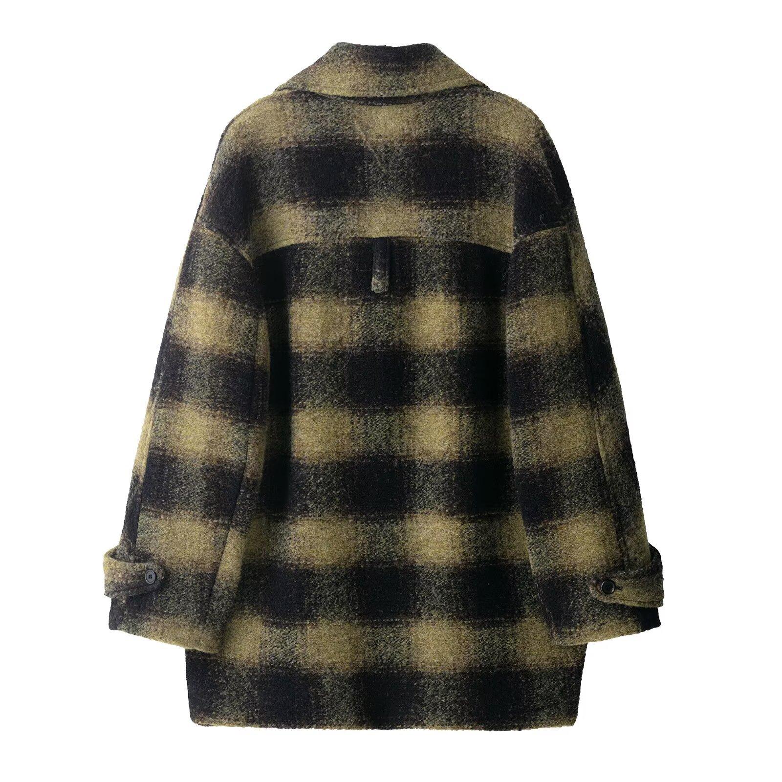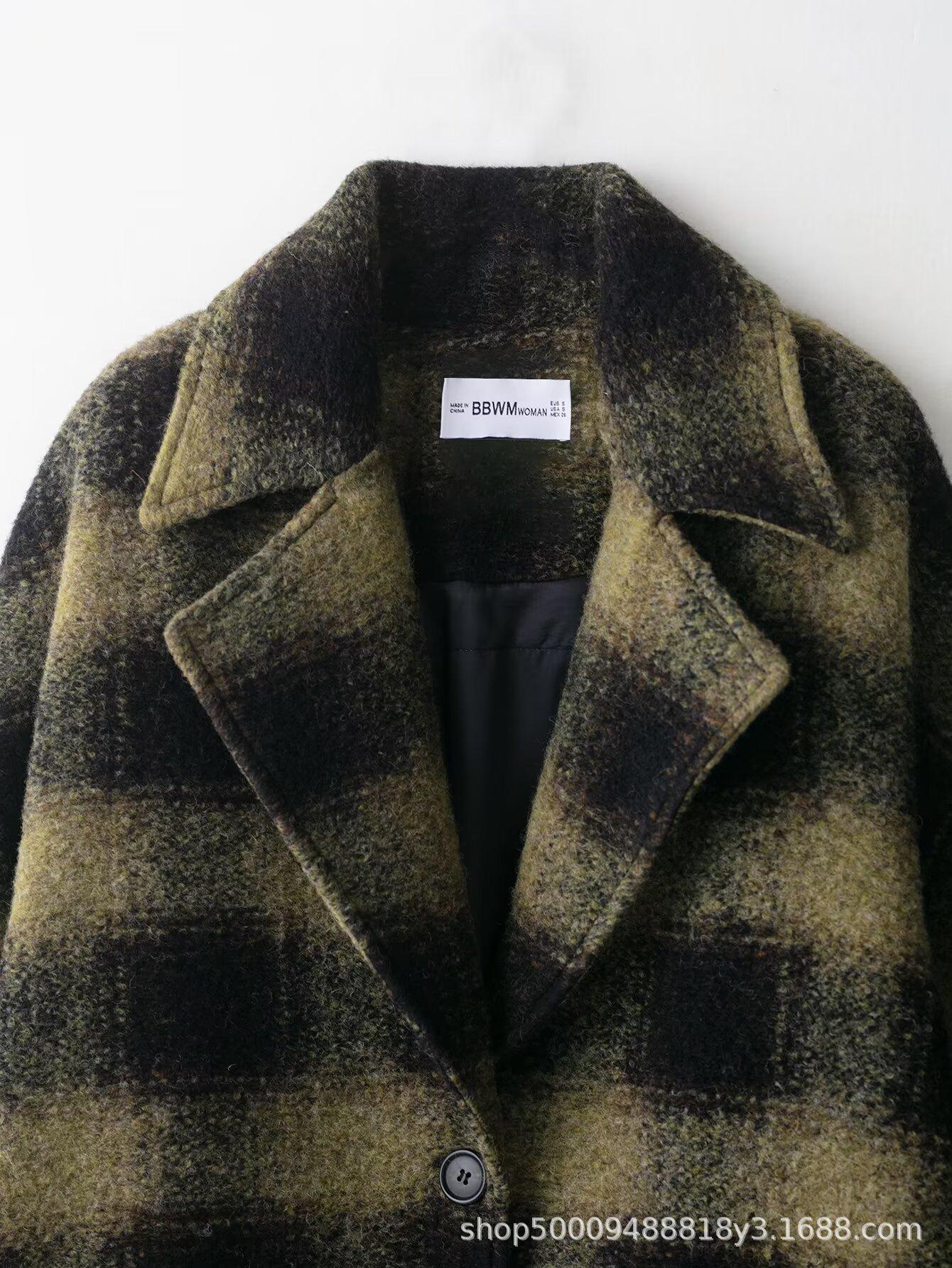 Comércio Exterior Transfronteiriço Roupas Femininas Outono/Inverno 2025 Novo Estilo Europeu e Americano Temperamento Casual Casaco de Lã Xadrez Outerwear 882678