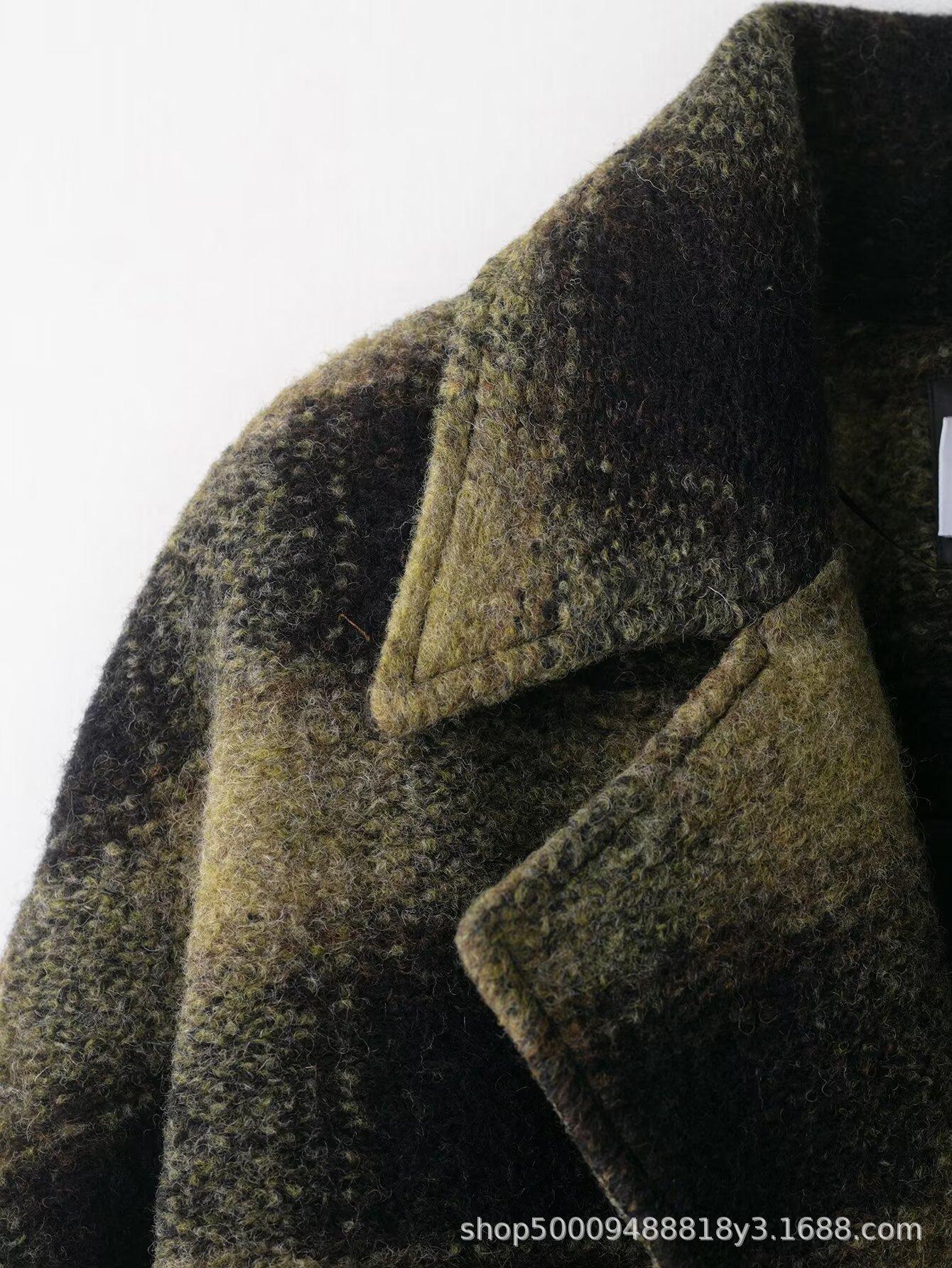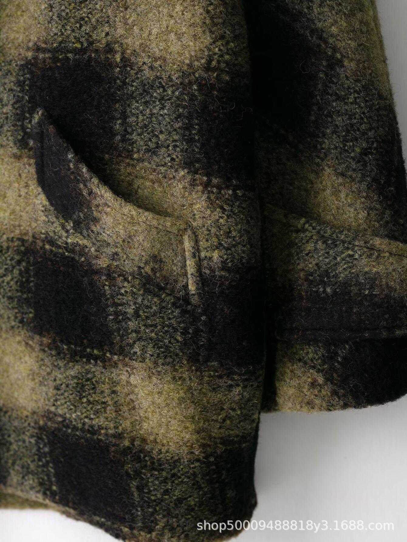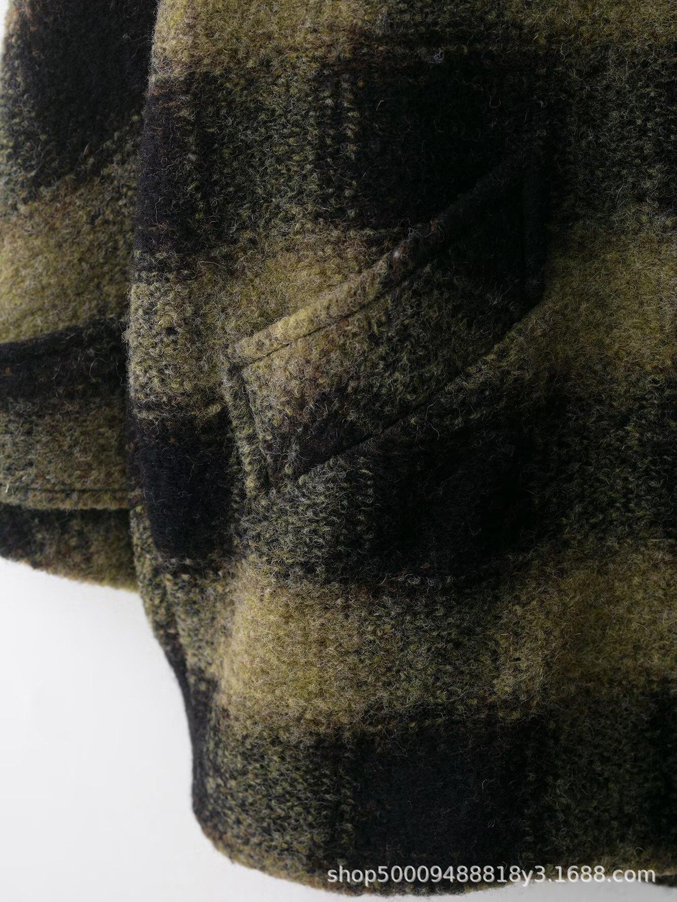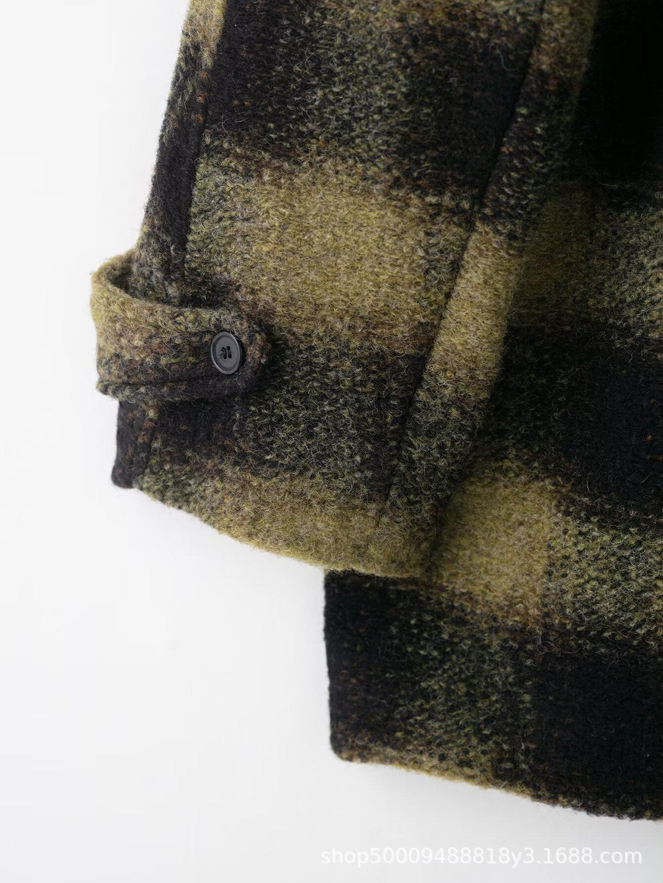 Comércio Exterior Transfronteiriço Roupas Femininas Outono/Inverno 2025 Novo Estilo Europeu e Americano Temperamento Casual Casaco de Lã Xadrez Outerwear 882678