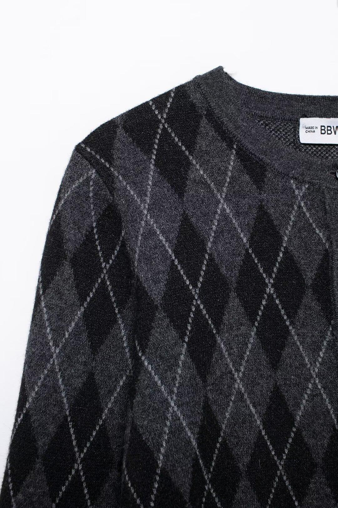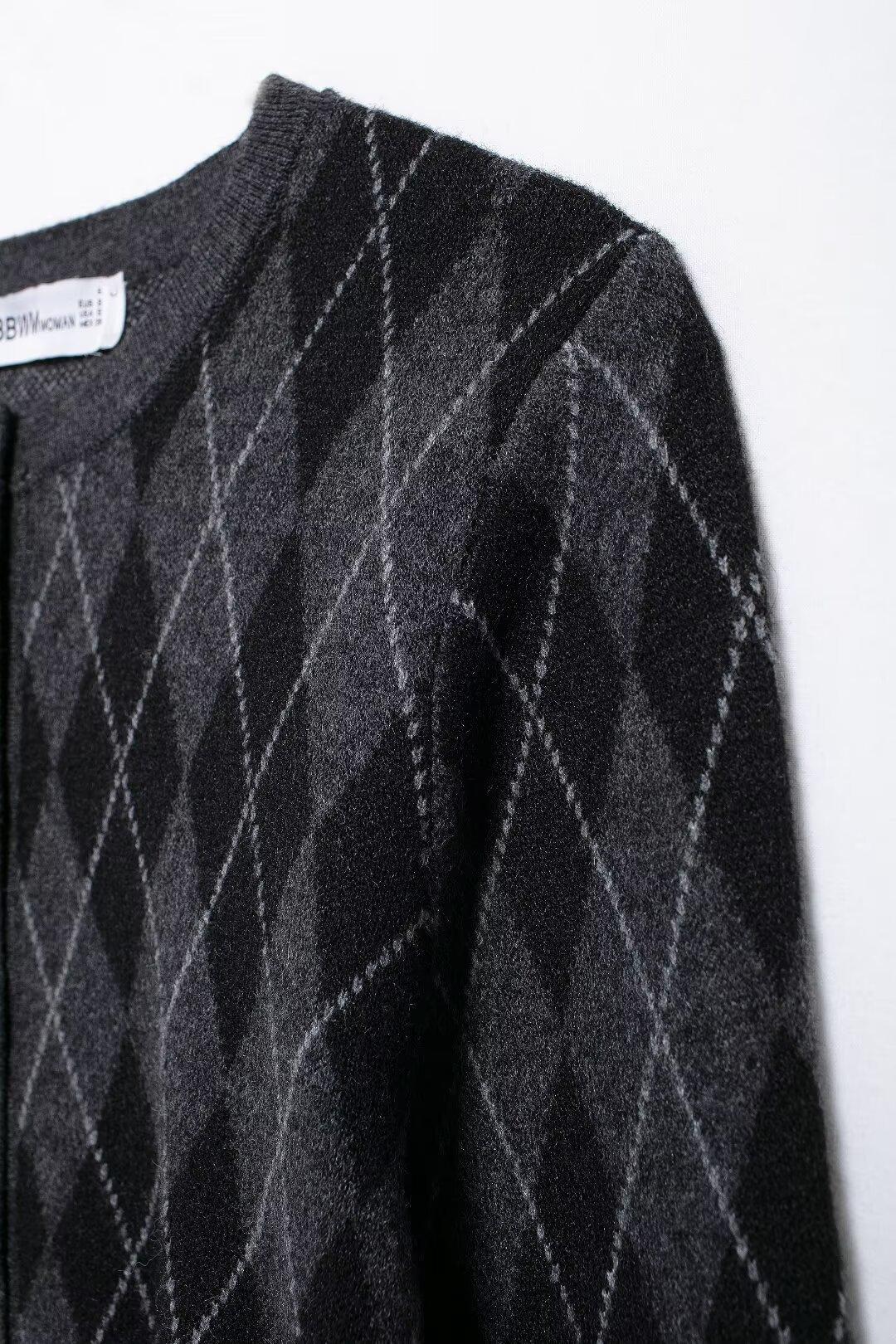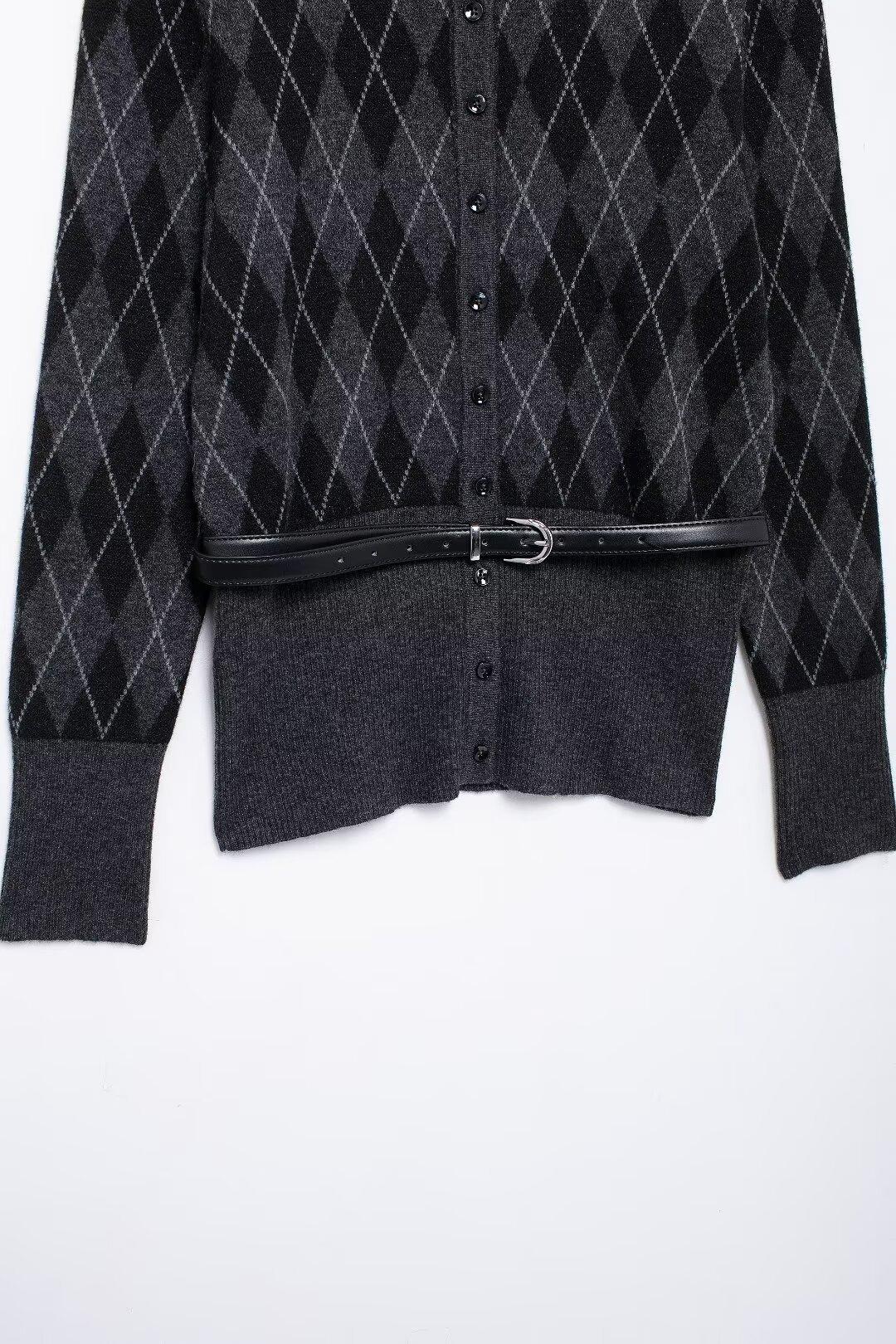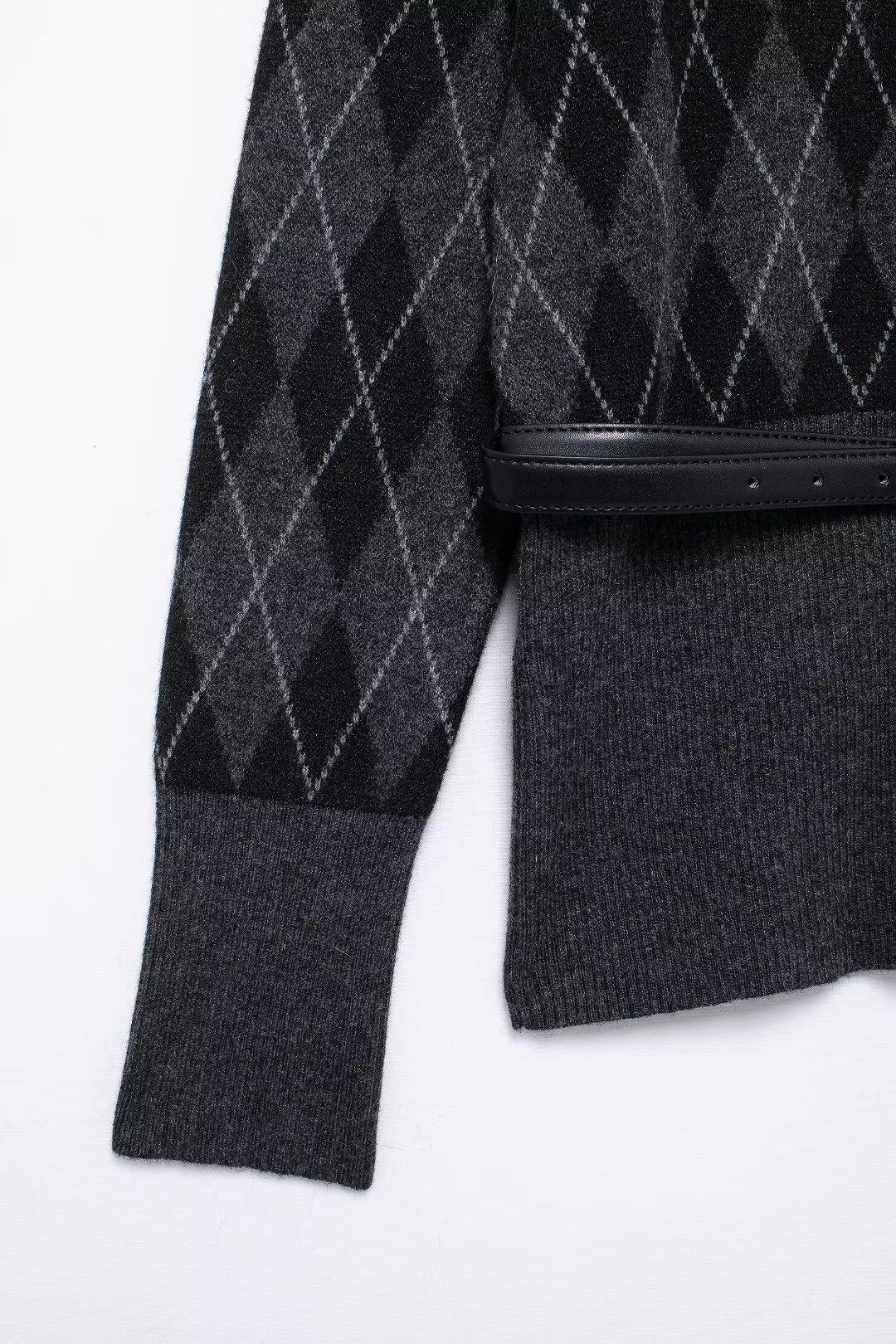Estilo europeu e americano transfronteiriço AliExpress explosão jaqueta de malha losango feminina atacado de comércio exterior ZR em estoque com cinto
