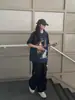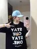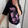 Camiseta de Manga Curta Top Roupas Estampa de Figura Ins Preto e Branco Preguiçosa Moderna Algodão Manga Curta Feminina Grafite Estudante