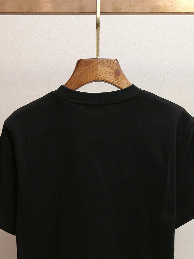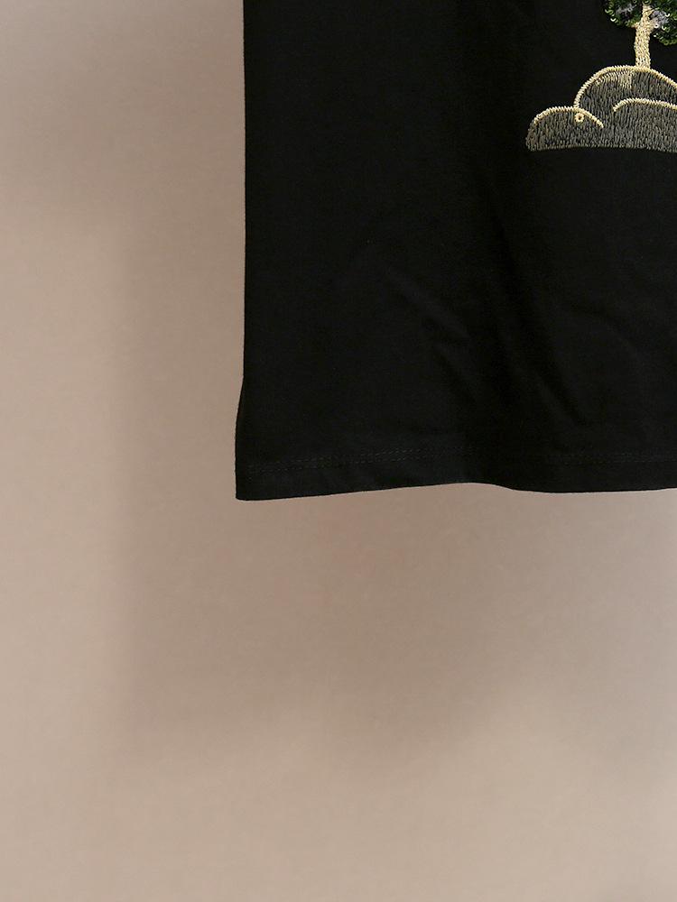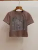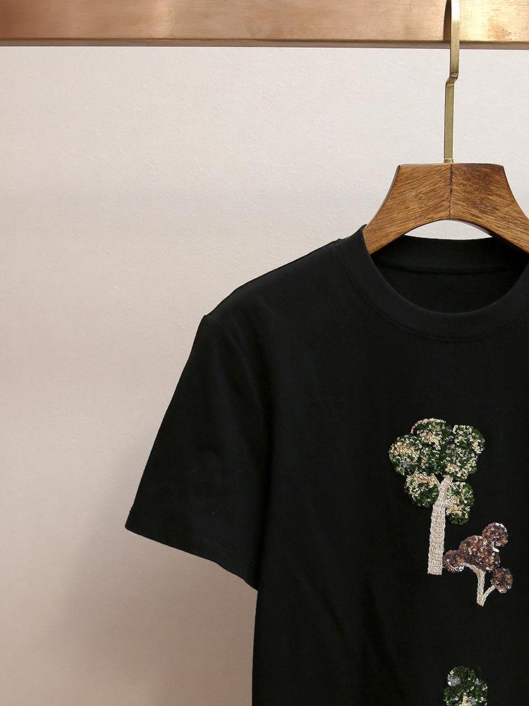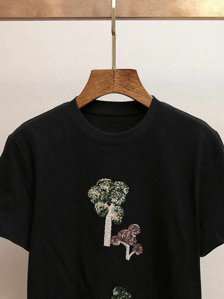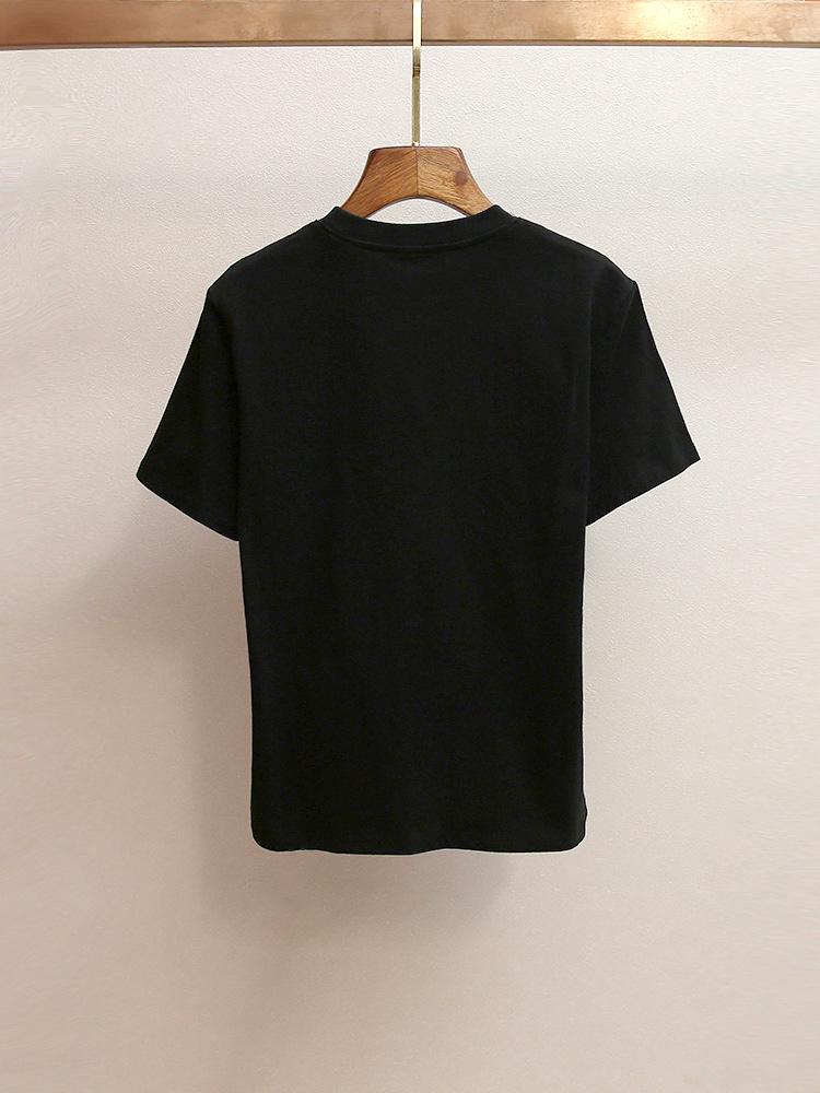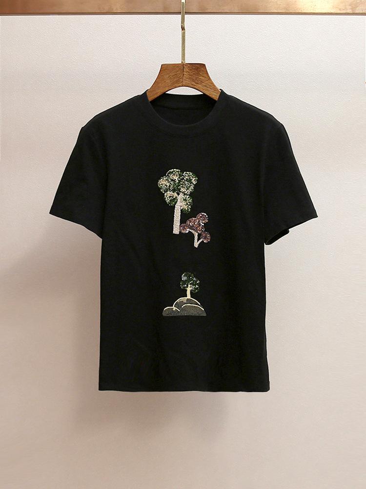 Shenzhen Nanyou Camiseta Feminina Outono Nova Estilo Casual Francês Gola Redonda Ombro Reto Manga Curta Estampa Bordada Mulher