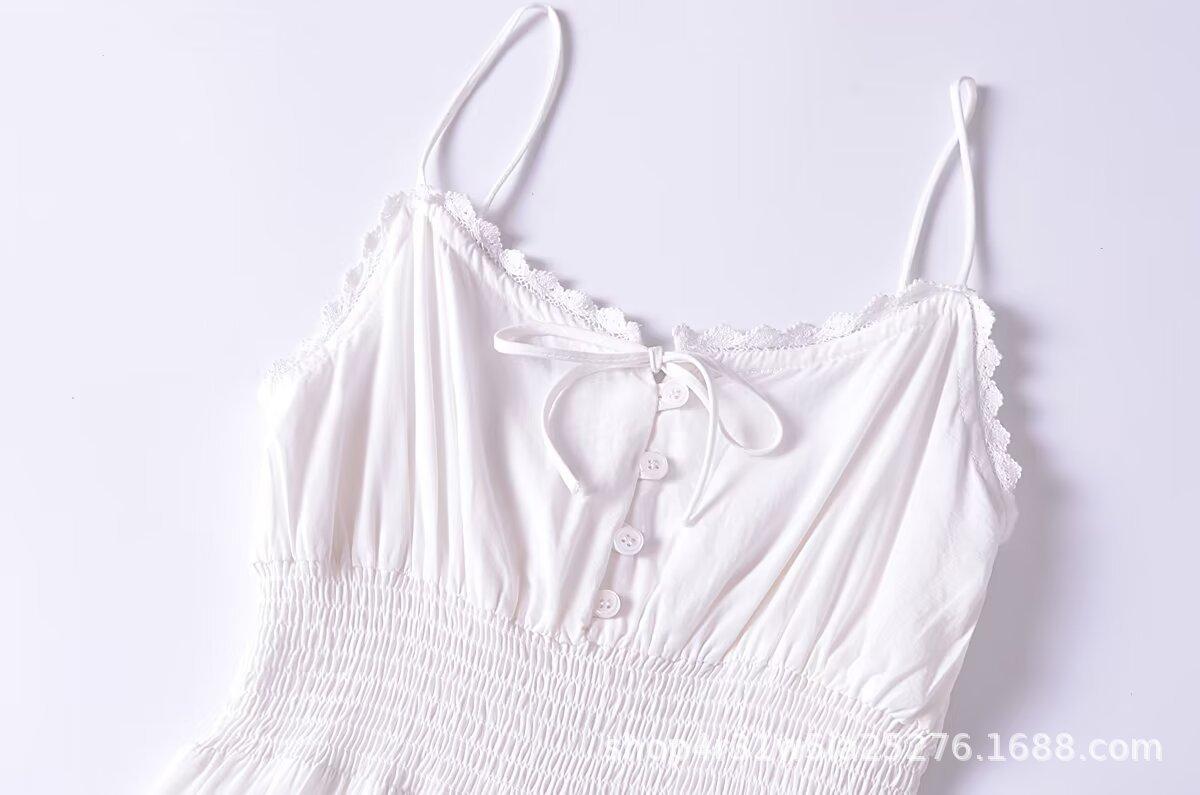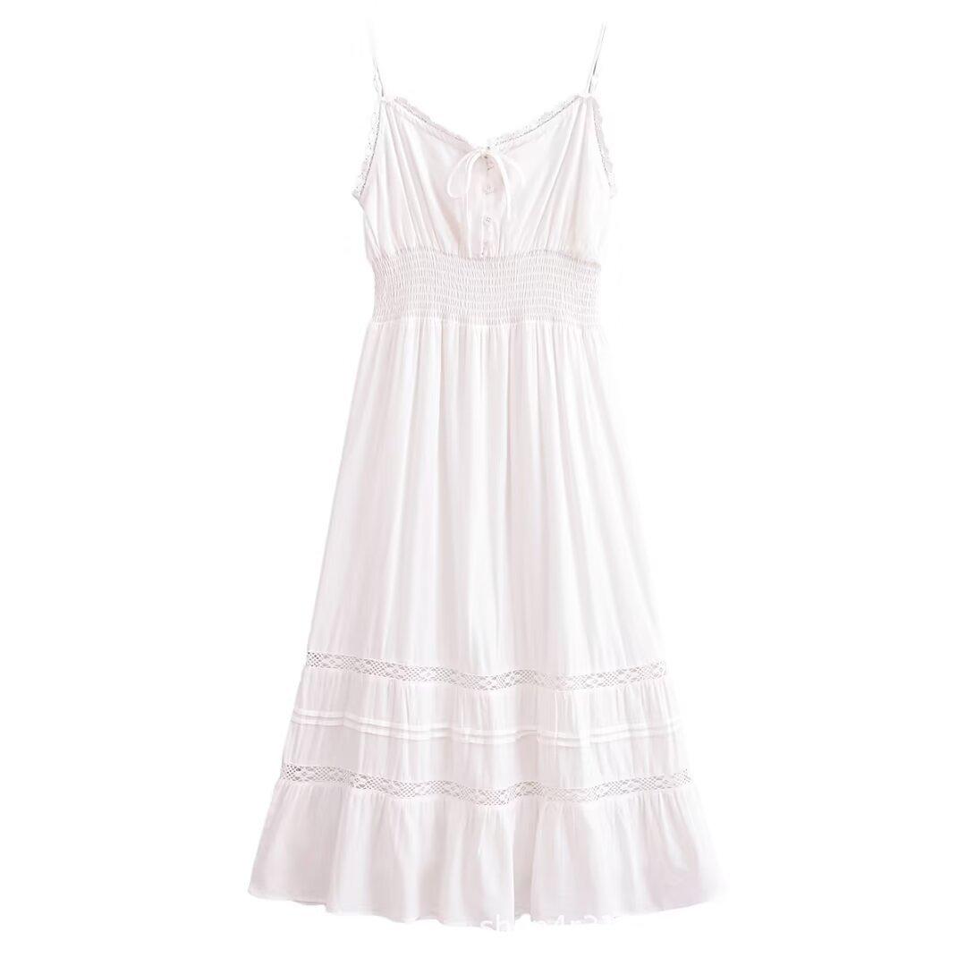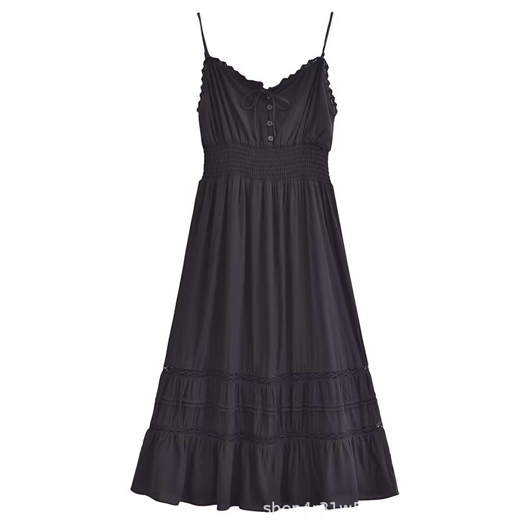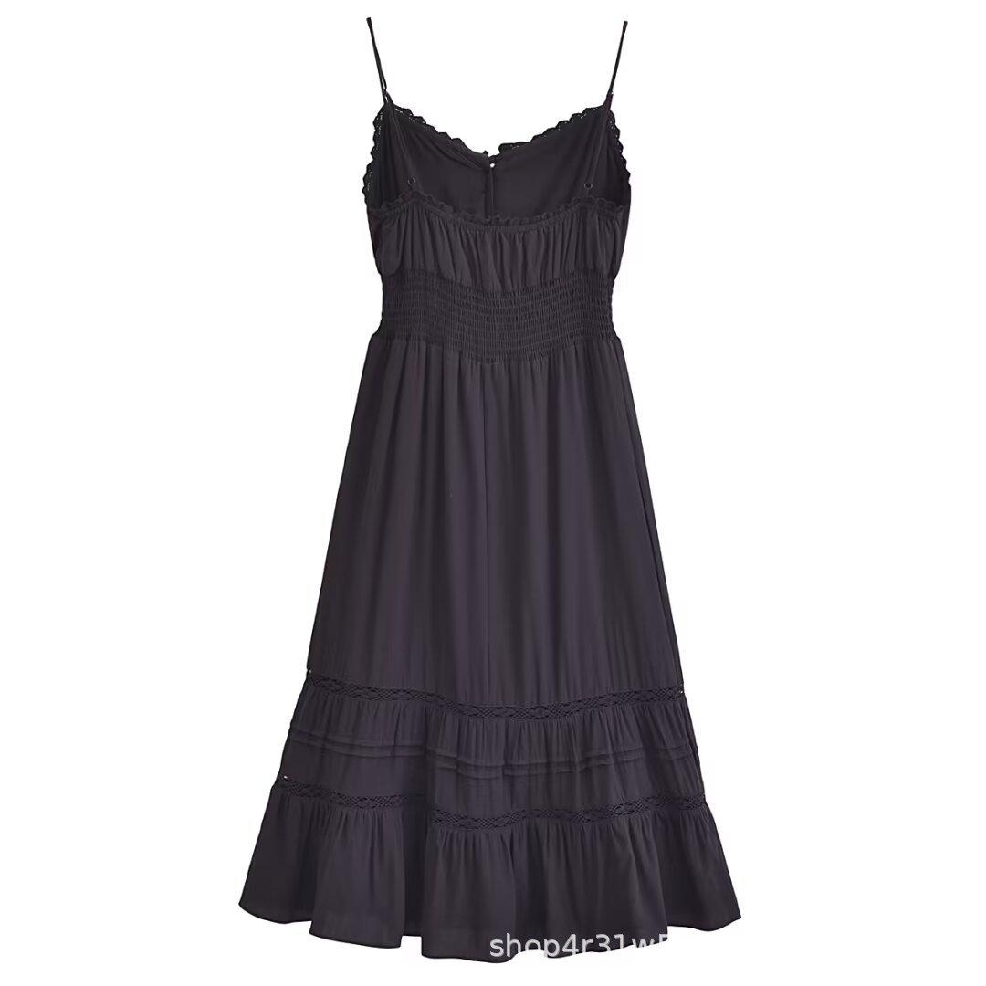 Nicho francês 2024 primavera e verão novo estilo vestido de alça fina com decoração de renda de orelha de madeira