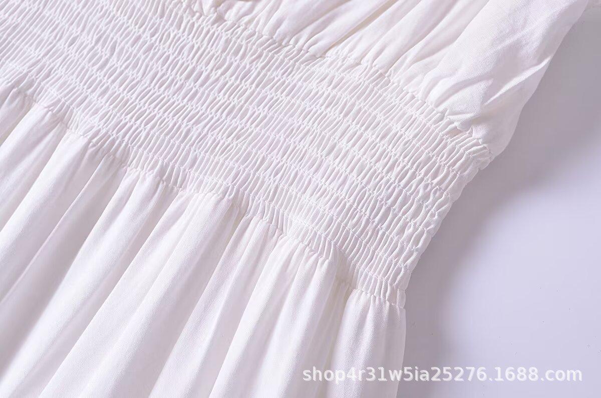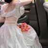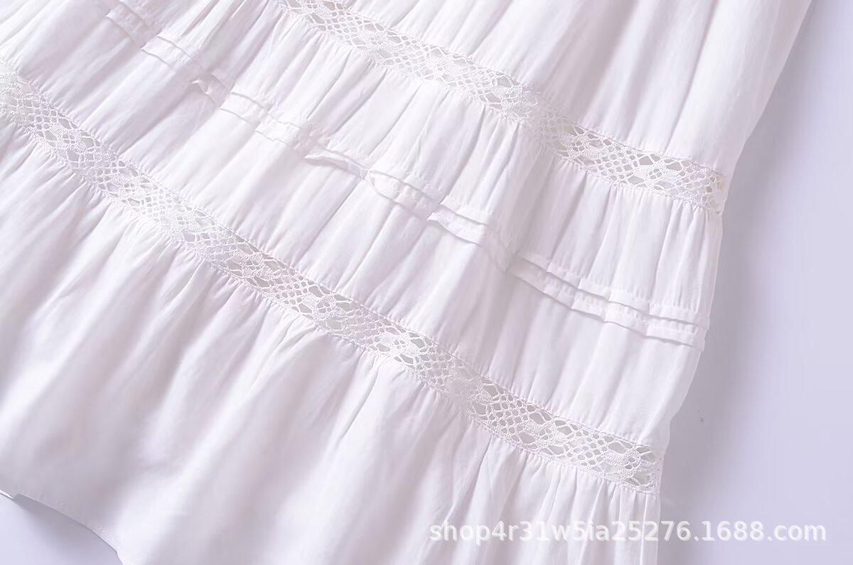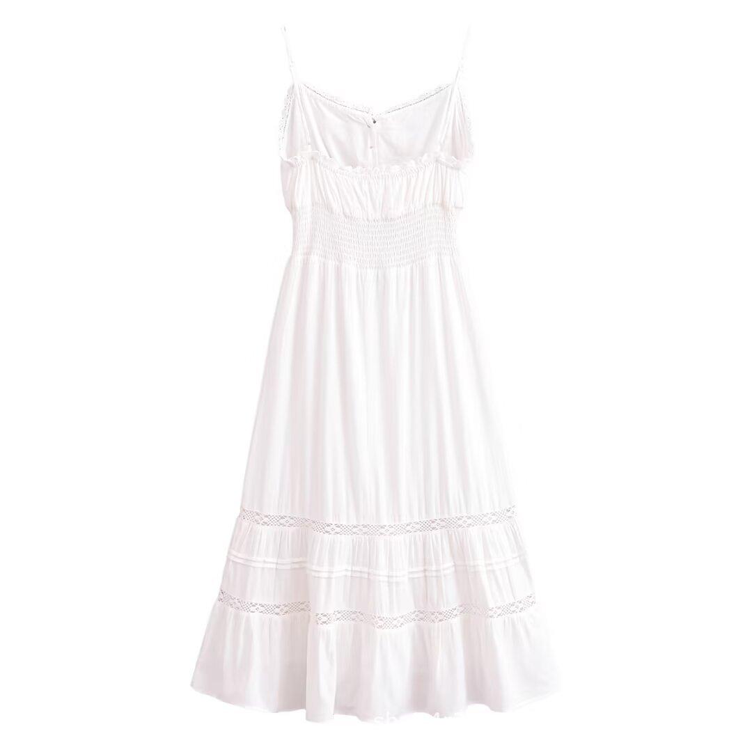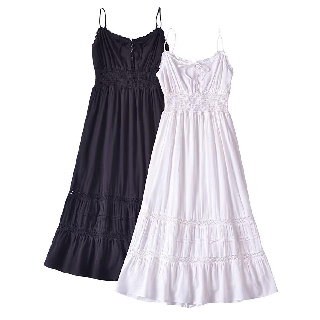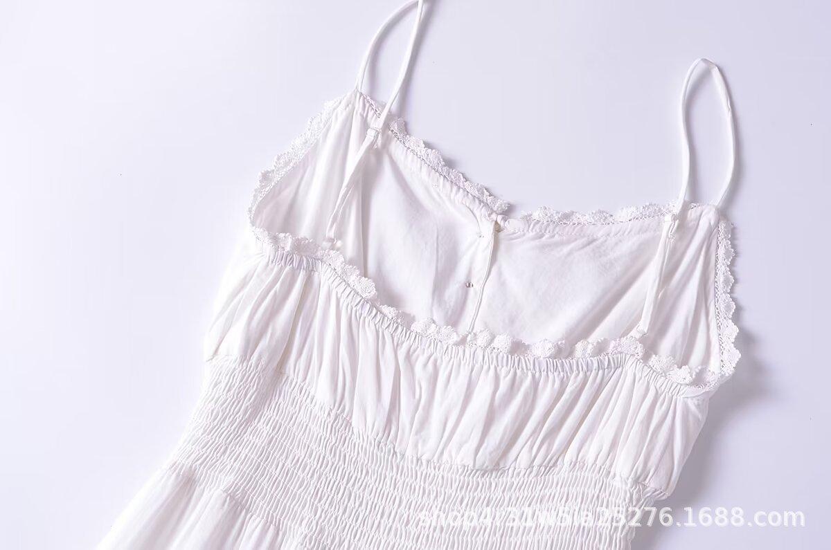 Nicho francês 2024 primavera e verão novo estilo vestido de alça fina com decoração de renda de orelha de madeira