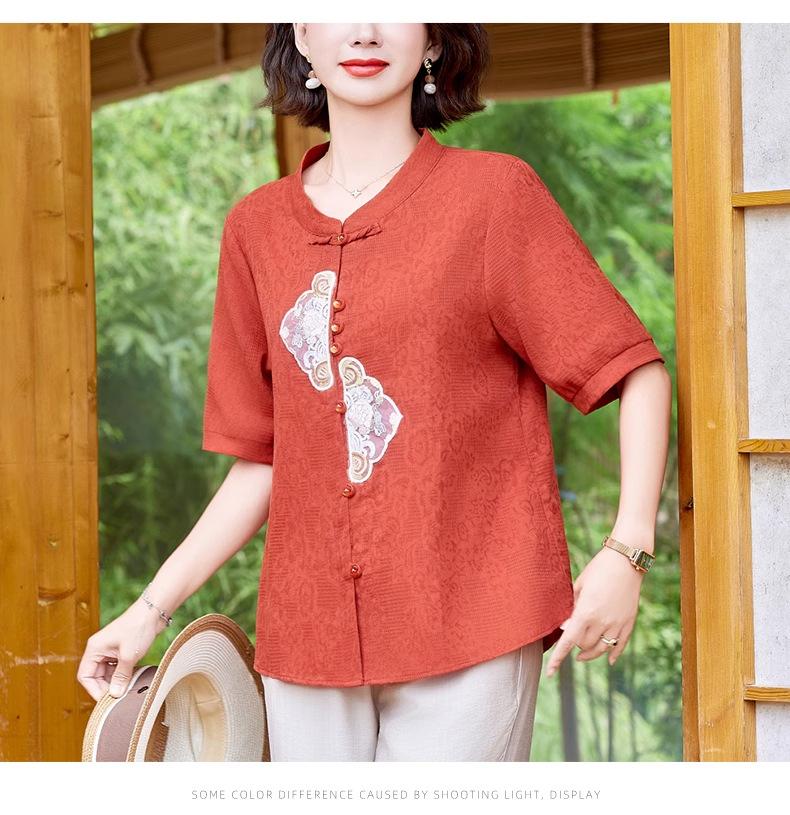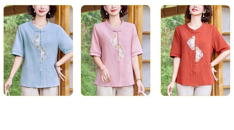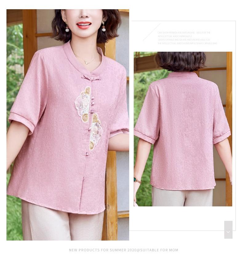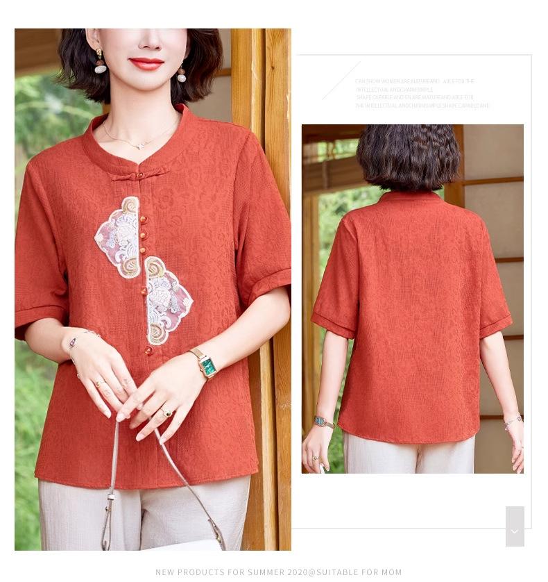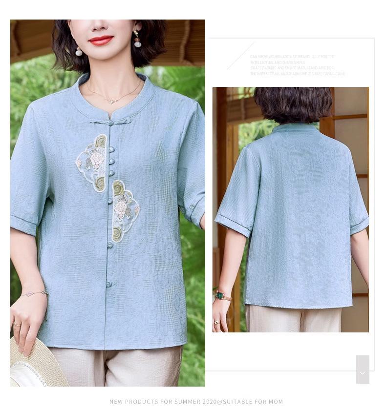 Compre Novo Estilo Verão Conjunto de Camisa de Manga Curta Estilo Chinês para Mulheres de Meia Idade e Idosas, Blusa T-Shirt Elegante e Estilosa, Fina no atacado no Joom.pro