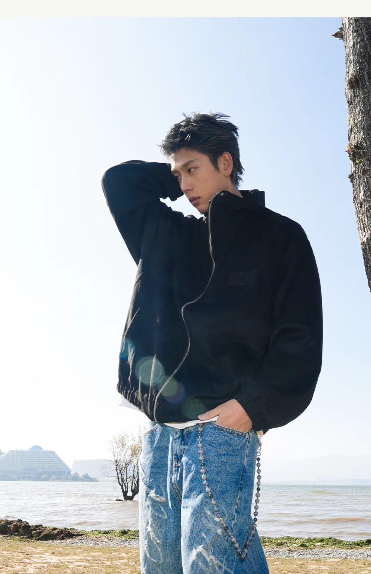 Comércio Exterior 2025 Nova Moda Casaco Preto Masculino e Feminino Primavera e Outono Corta-vento Casual Jaqueta Cardigã Tendência