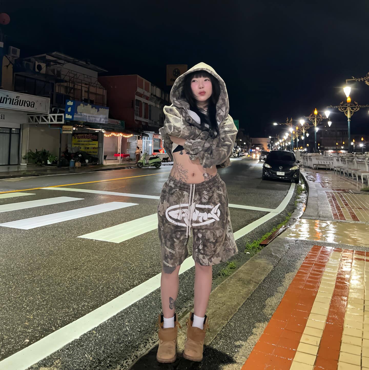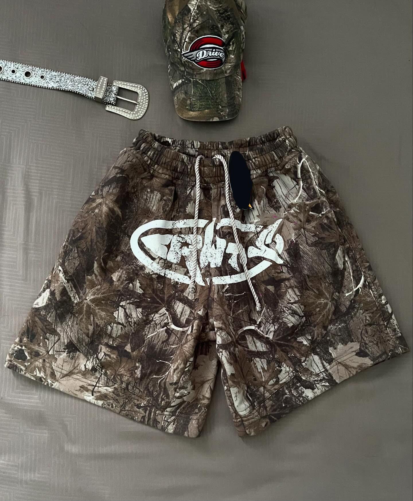 Verão 2025 Europeu e Americano Transfronteiriço Camuflagem Estampa Digital Shorts Casuais Moda Masculina e Feminina Retrô Shorts Cinco Pontos