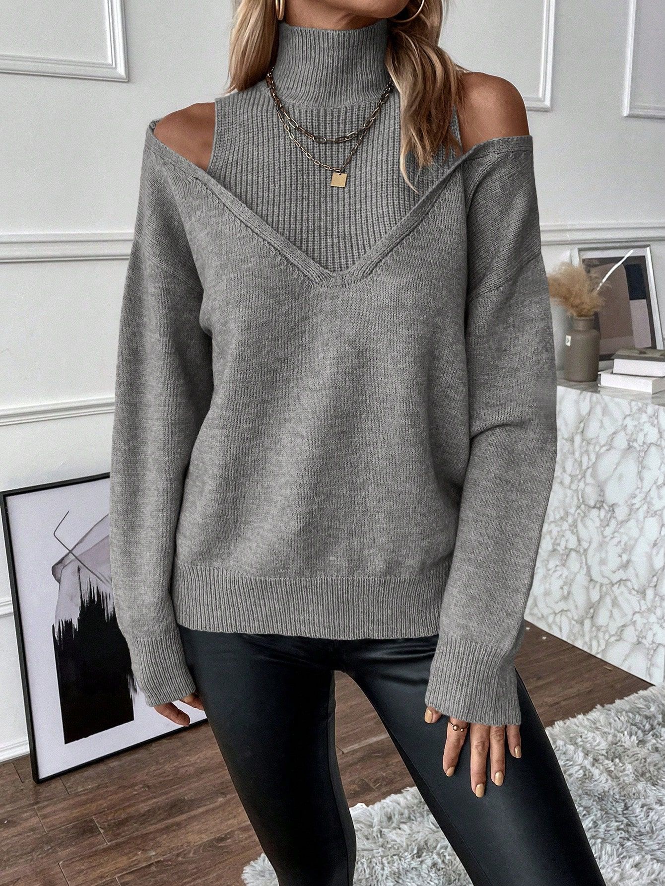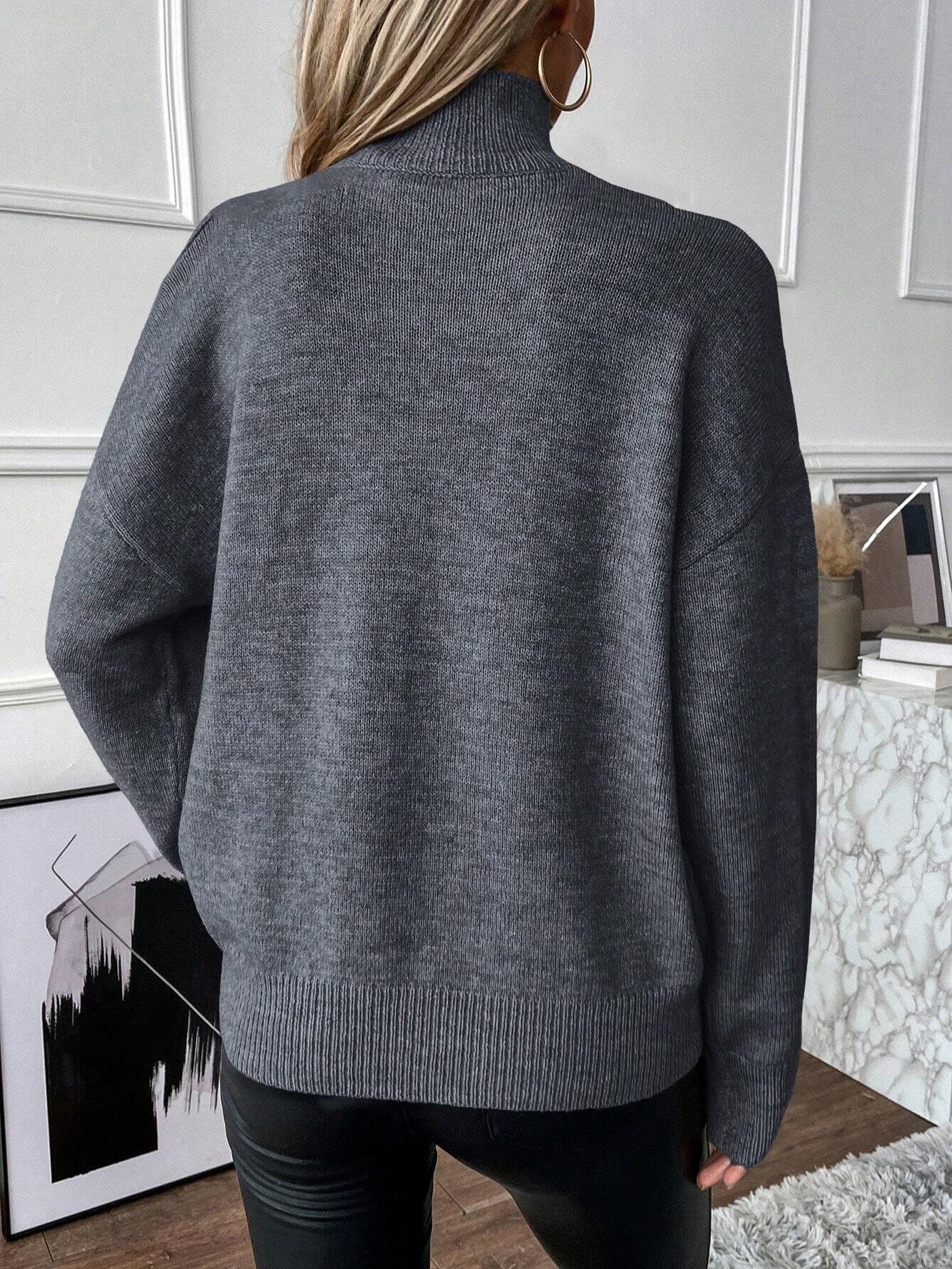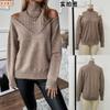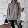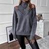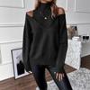 2025 Amazon Transfronteiriço Europeu e Americano Novo Outono e Inverno Cor Sólida Solto Moda Tricotado Ombro a Ombro Manga Longa Gola Alta Suéter