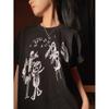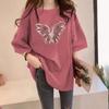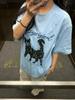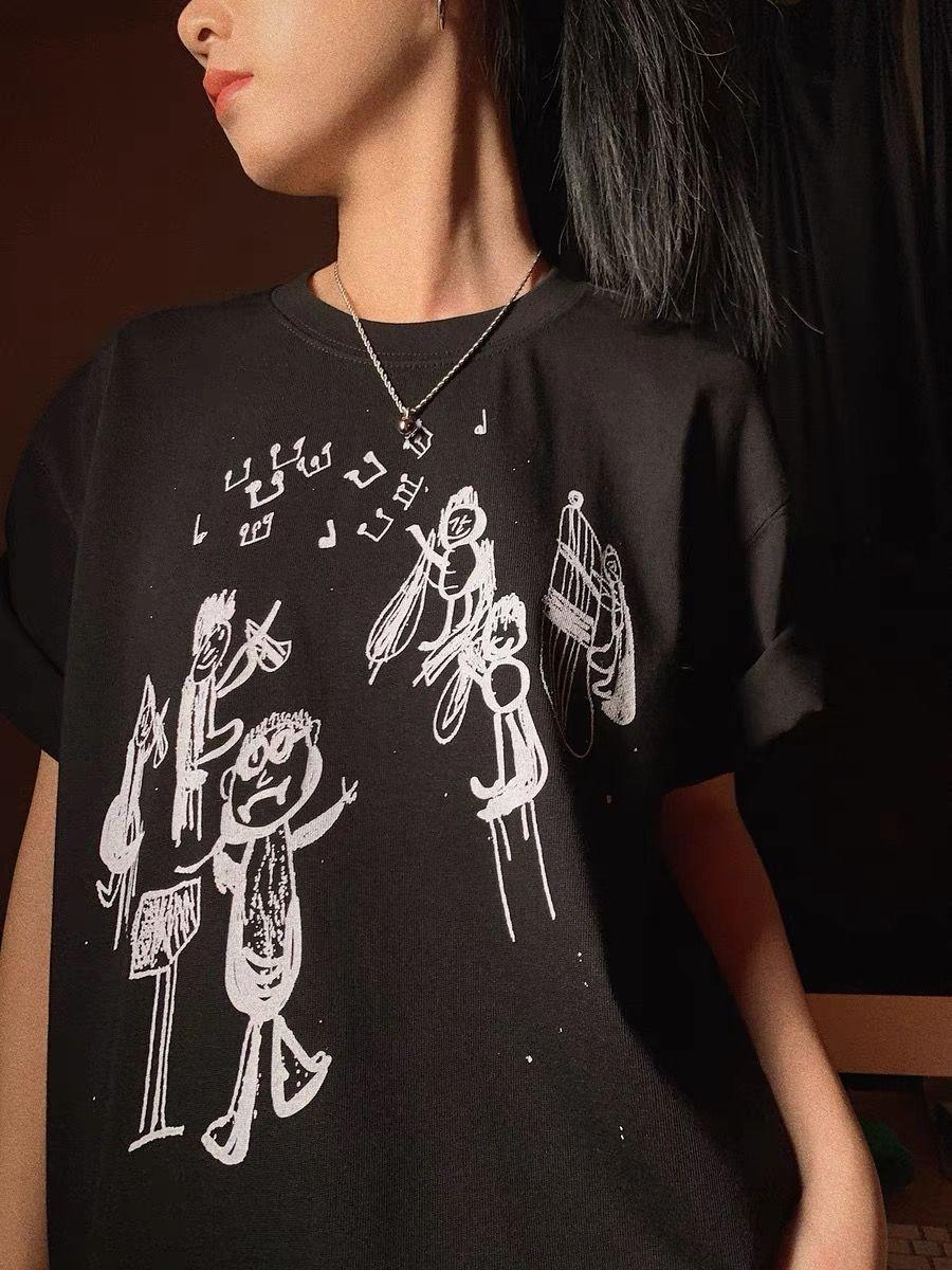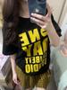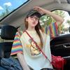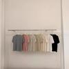 Camiseta de Algodão de Manga Curta Estilo Hong Kong para Ensino Fundamental Roupas Top Estampado Roupas Suéter de Gola Feminino Camiseta de Comprimento Médio Texturizada