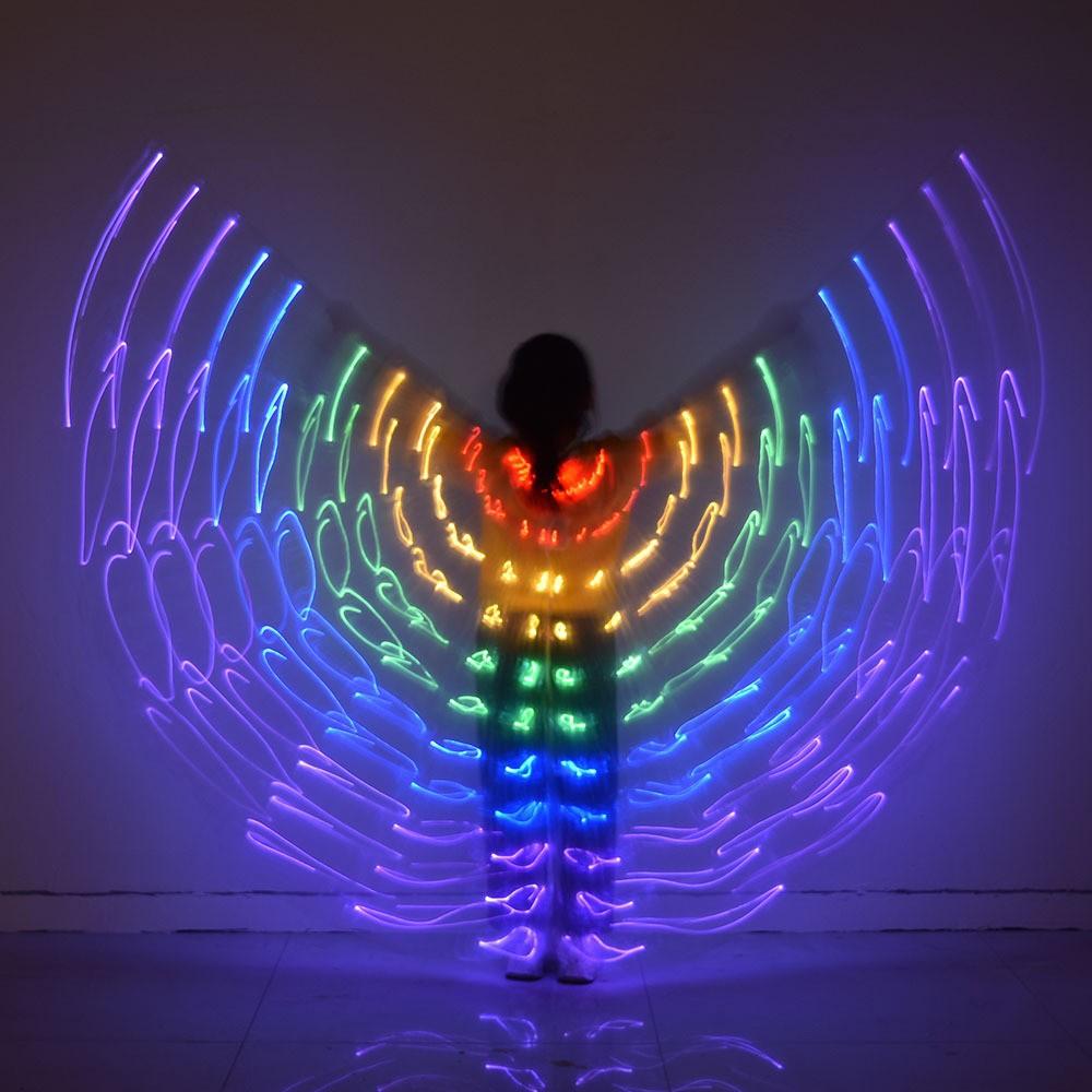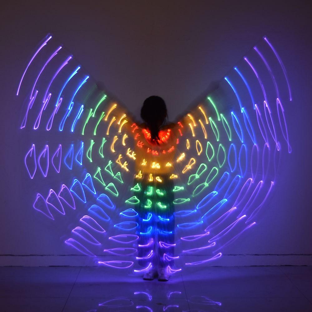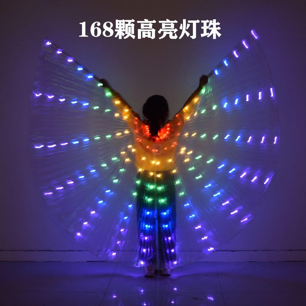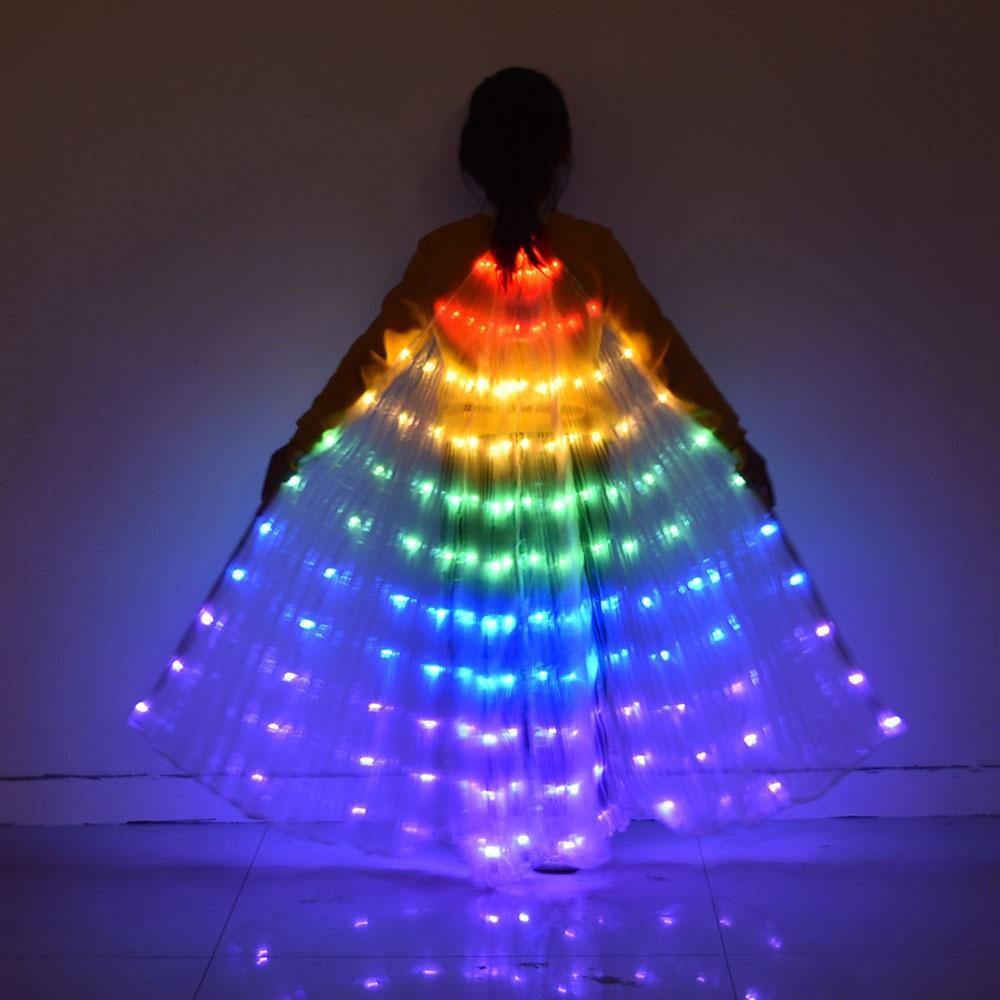 Dança do Ventre Infantil Asas de Borboleta de Arco-Íris Brilhantes Multicoloridas para Apresentação com Luzes Adereços de Decoração de Costas Capa Luzes de LED