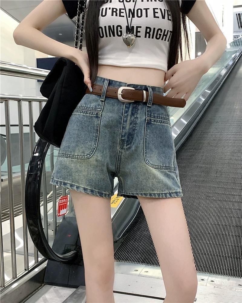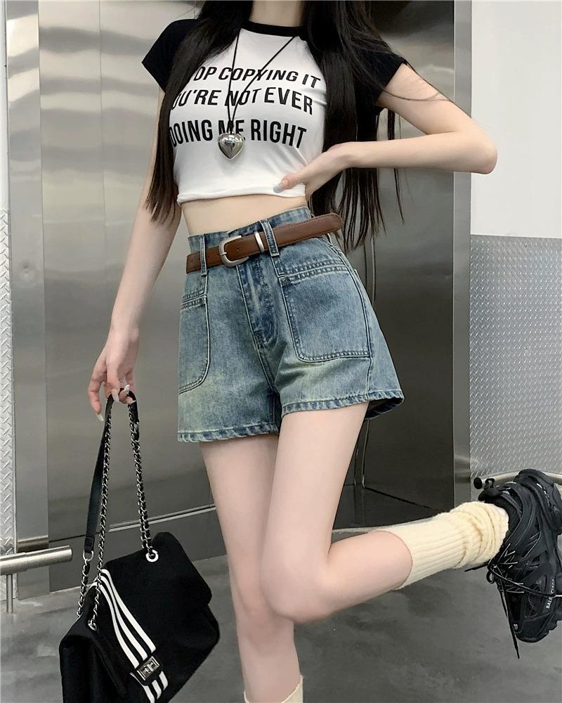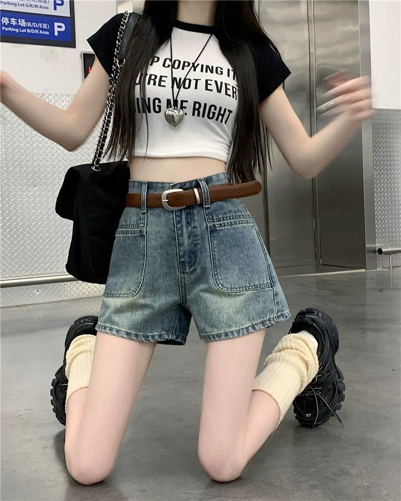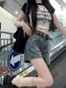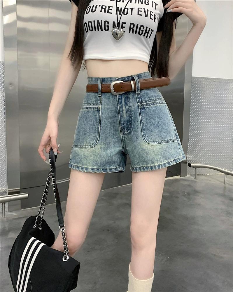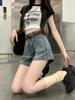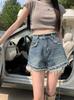 Shorts Jeans Retrô Linha A Perna Larga para Mulheres Verão 2023 Novo Slim Estudante Solto Cintura Alta Hot Pants Tendência
