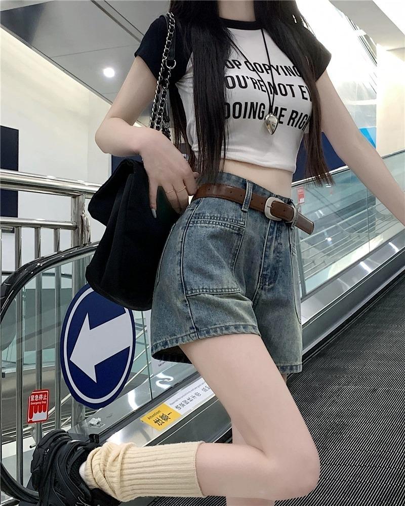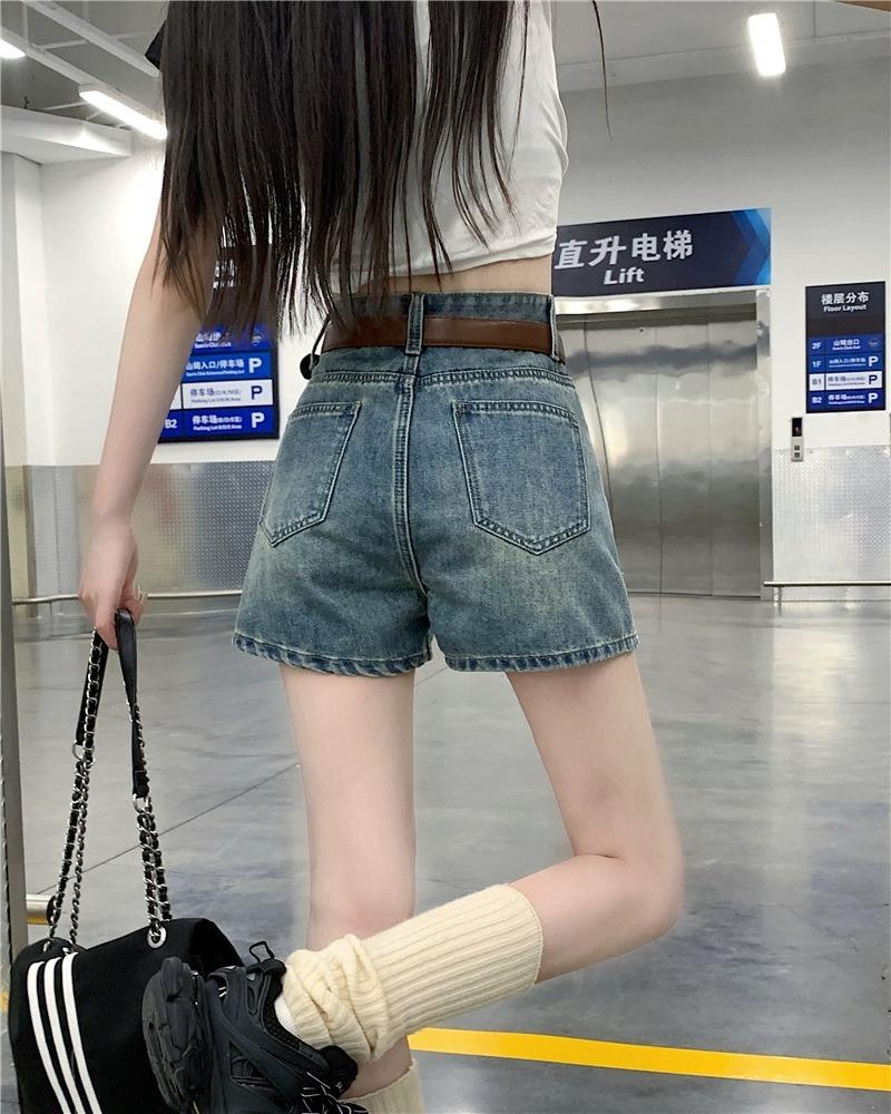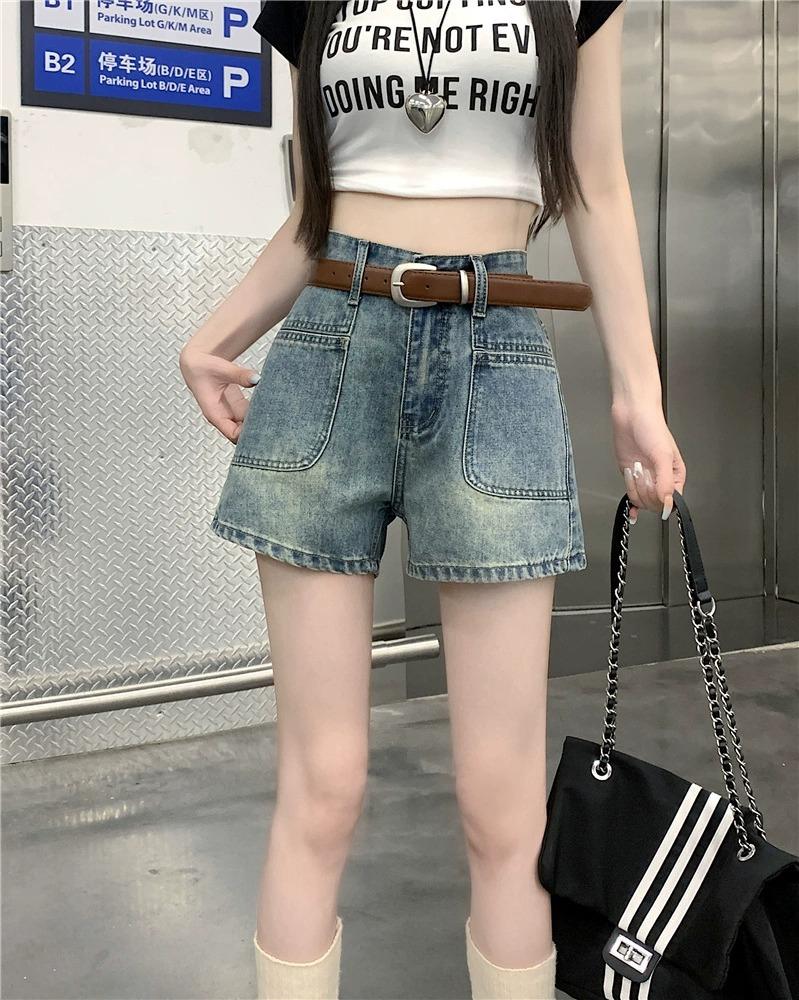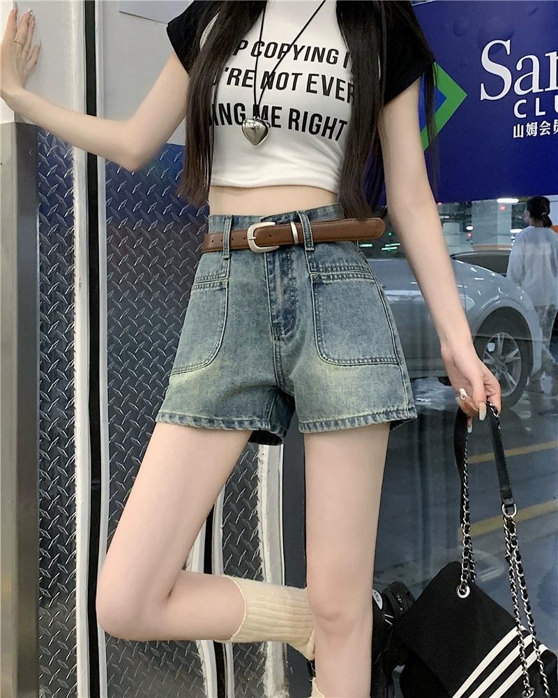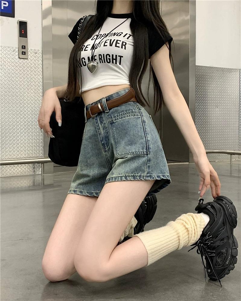 Shorts Jeans Retrô Linha A Perna Larga para Mulheres Verão 2023 Novo Slim Estudante Solto Cintura Alta Hot Pants Tendência