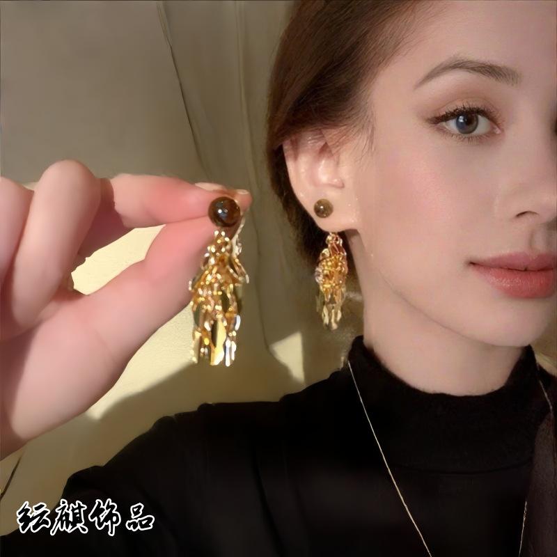 Brincos de Borla de Folha Populares Novos da Primavera 2025 para Mulheres, Moda Nicho Tendência, Brincos Versáteis