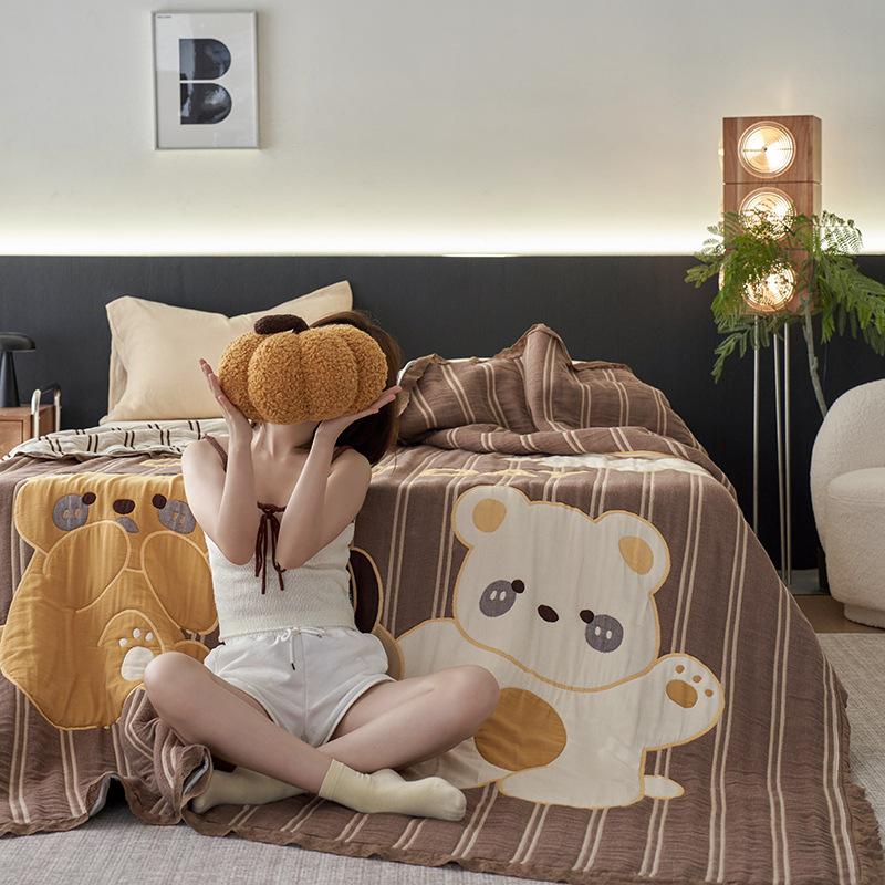 Colcha Puff de Desenho Animado Classe A Gaze de Algodão Colcha de Primavera e Outono Colcha Toalha Algodão Espessado Colcha de Outono e Inverno Núcleo de Colcha Manta Infantil