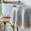Toalha de Mesa Redonda para Jardim Grande Estilo Algodão e Linho Pequeno Fresco Pastoral Redonda Xadrez Lisa Toalha de Mesa Redonda para Casa