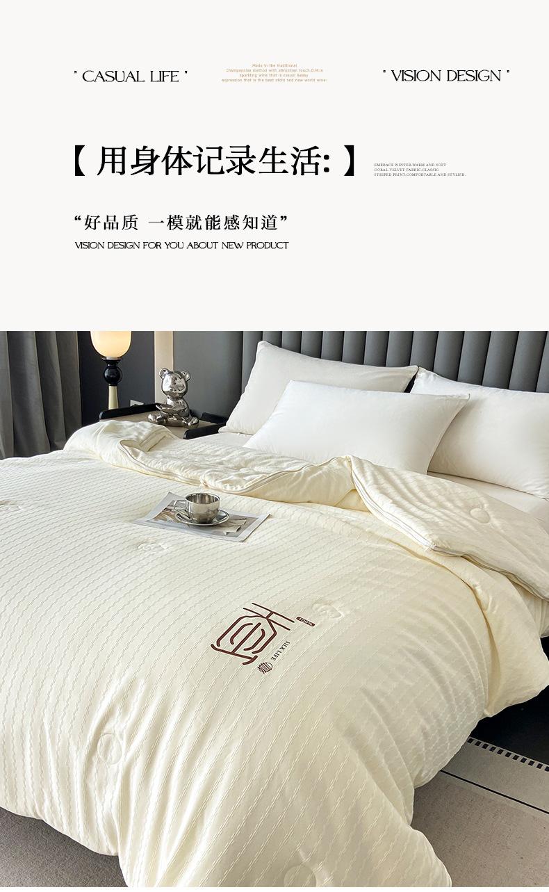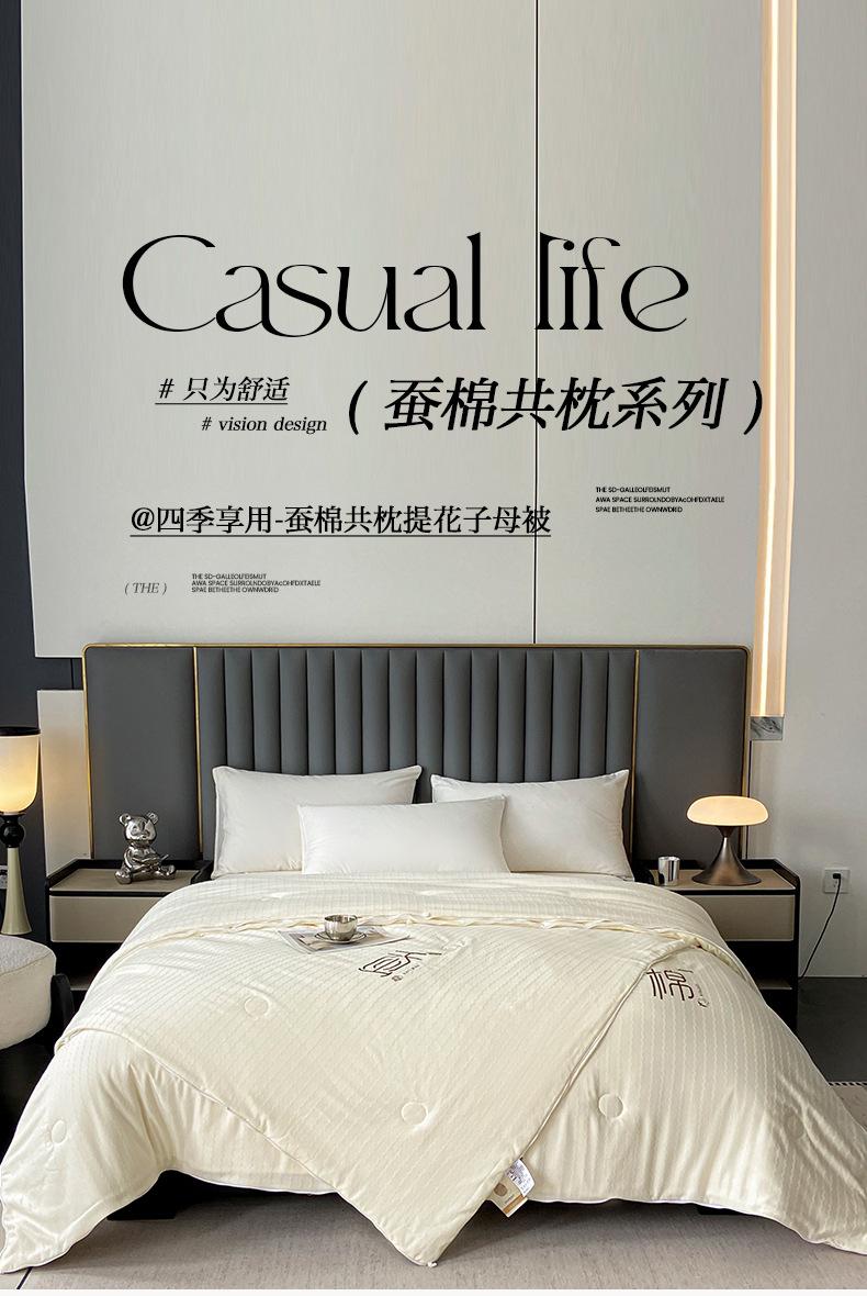 Seda e algodão compartilham um travesseiro Quentura sedosa Tecido jacquard cuidadosamente selecionado e amigo da pele Macio e delicado Amigo da pele e confortável Edredom preenchido com seda natural Conhecido como a rainha das fibras Absorvente de umidade e respirável sem abafamento Edredom de mãe preenchido com uma folha inteira de algodão Xinjiang Retentor de calor e quente sem pressão sobre o corpo