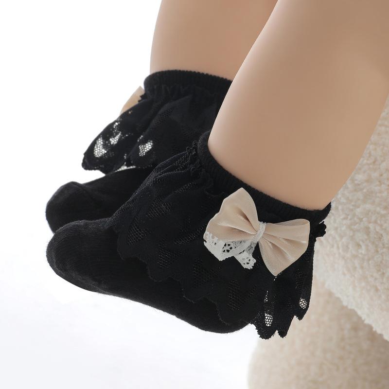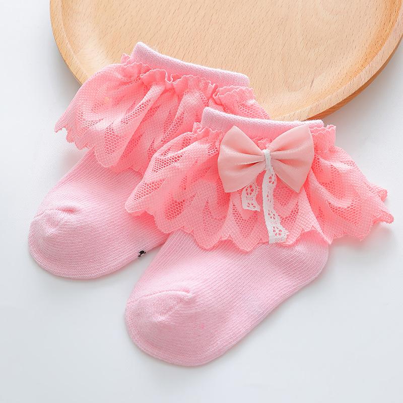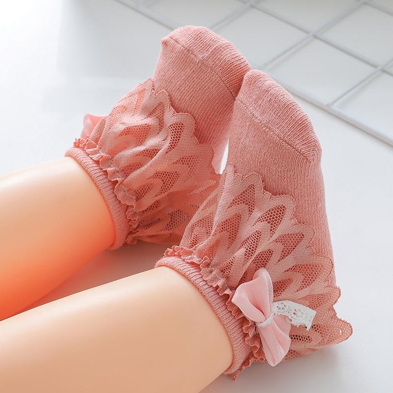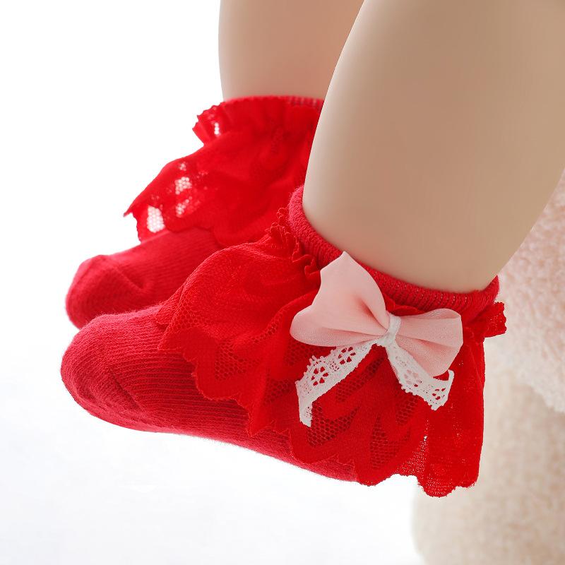 Meias de Menina Primavera Outono Moda Estilo Coreano Meias de Renda Infantil Renda Meias de Bebê Princesa Vermelho Grande Meias de Lua Cheia para Bebê