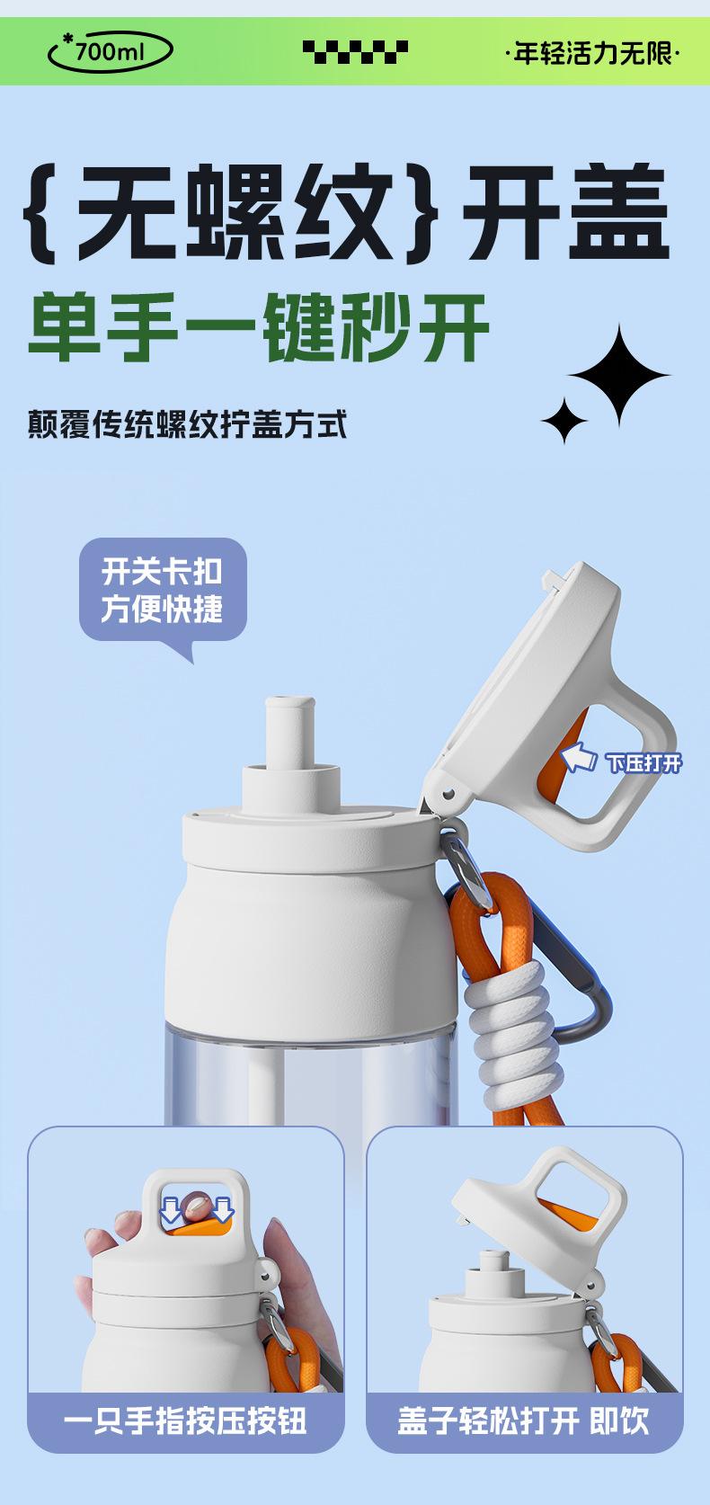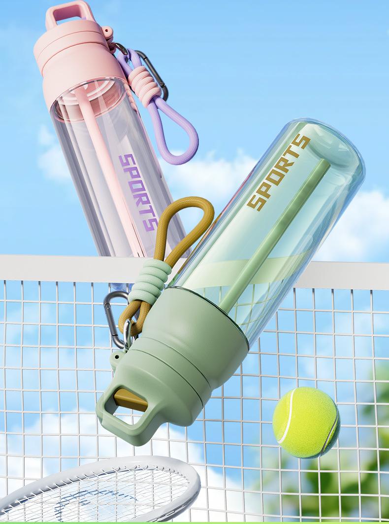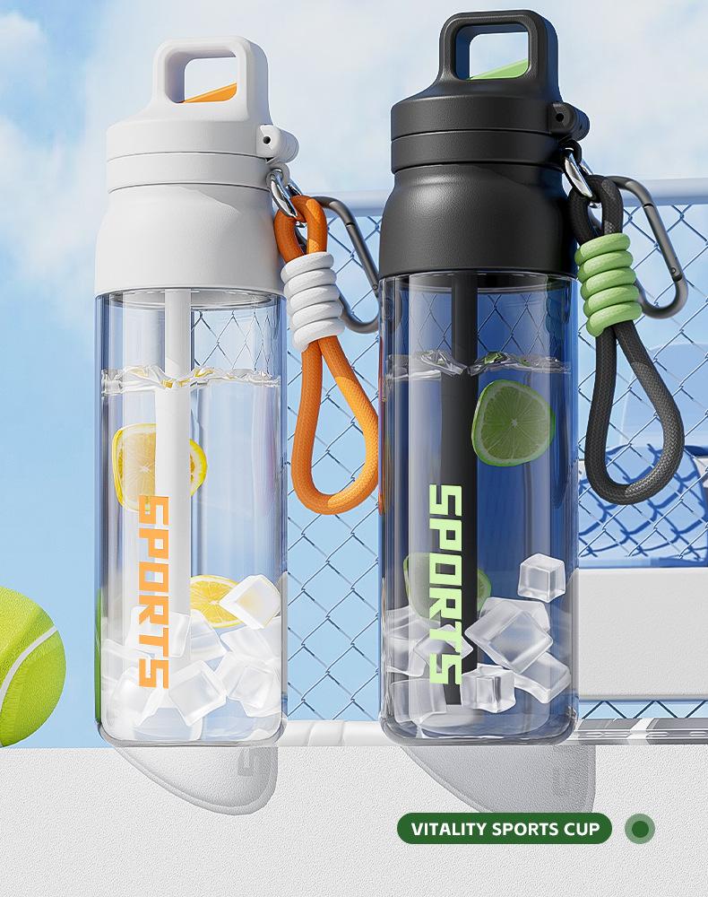 Copo de Água Isolado para Homens e Mulheres, Copo de Café Portátil, Copo Esportivo para Estudantes, Copo de Plástico de Verão Anti-Queda com Cordão, Grande Capacidade
