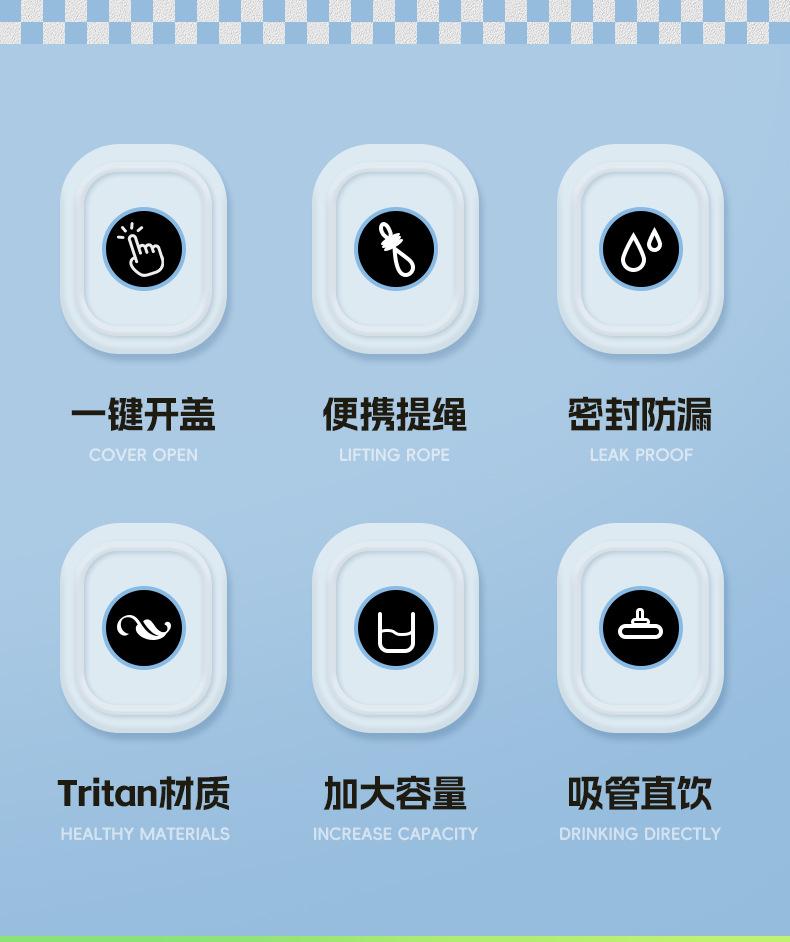 With carrying rope, High capacity, With straw, Straight cup